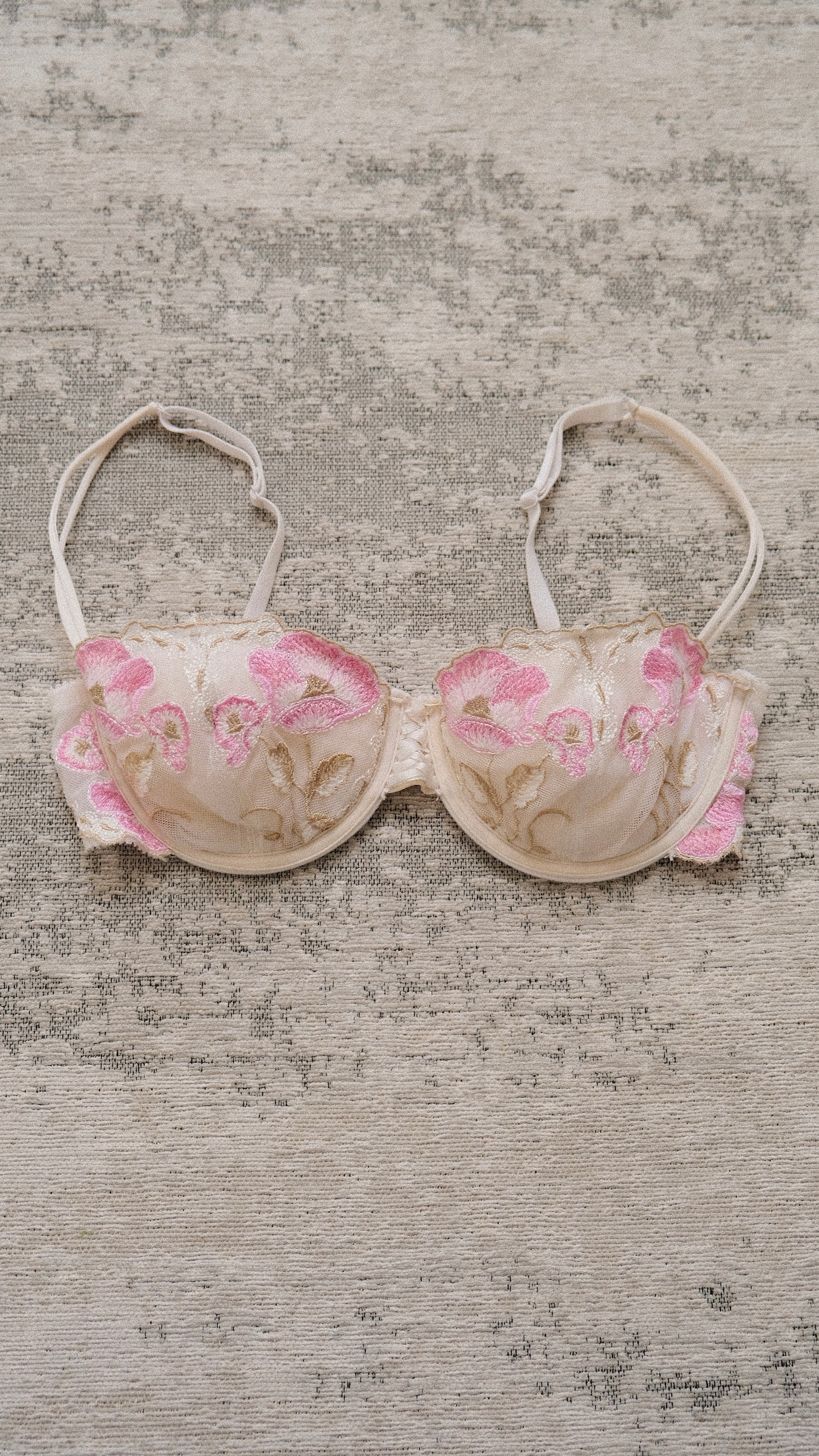 A vintage French bra that evokes soft tides and blooming petals: gentle, graceful and feminine.