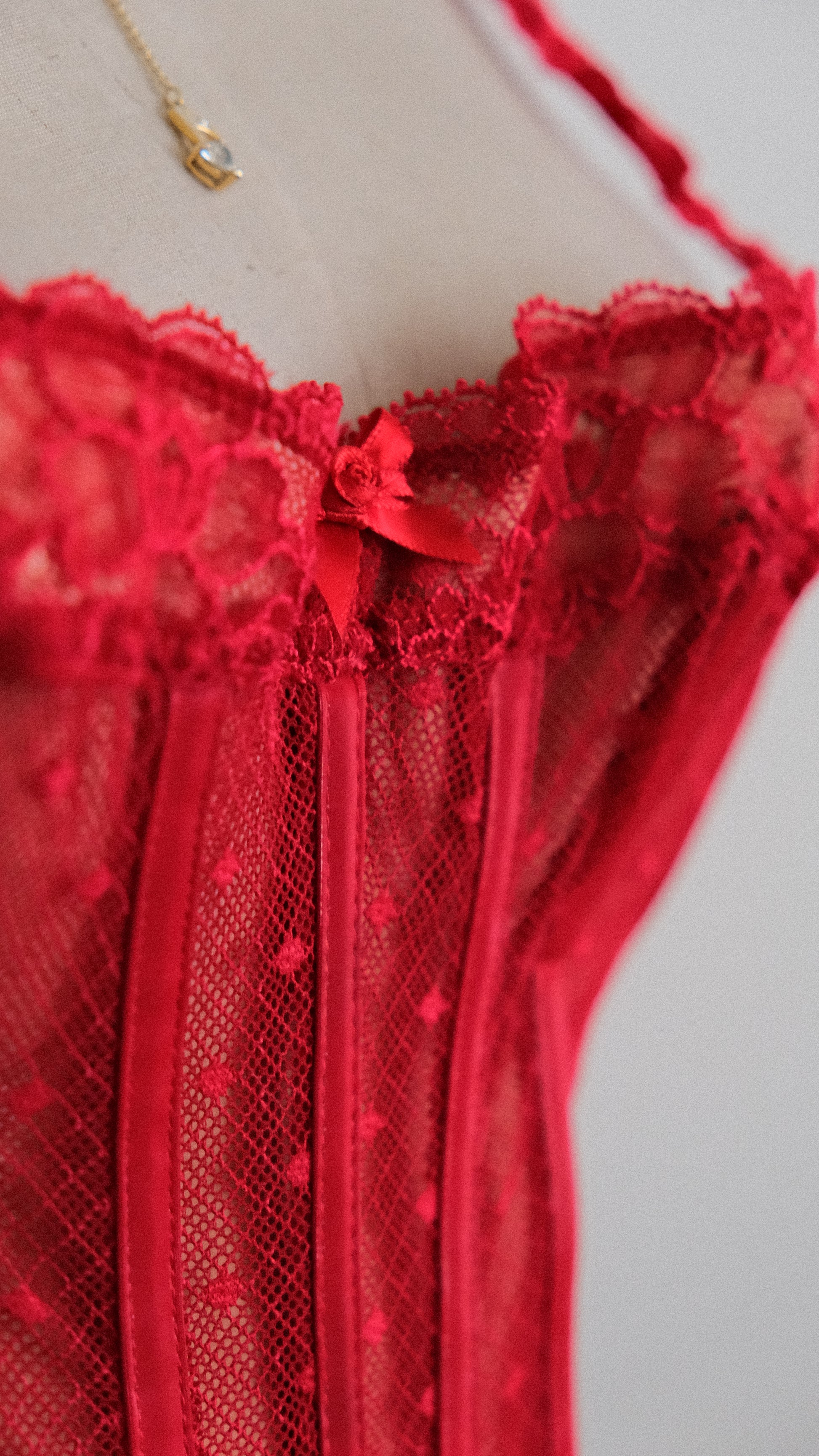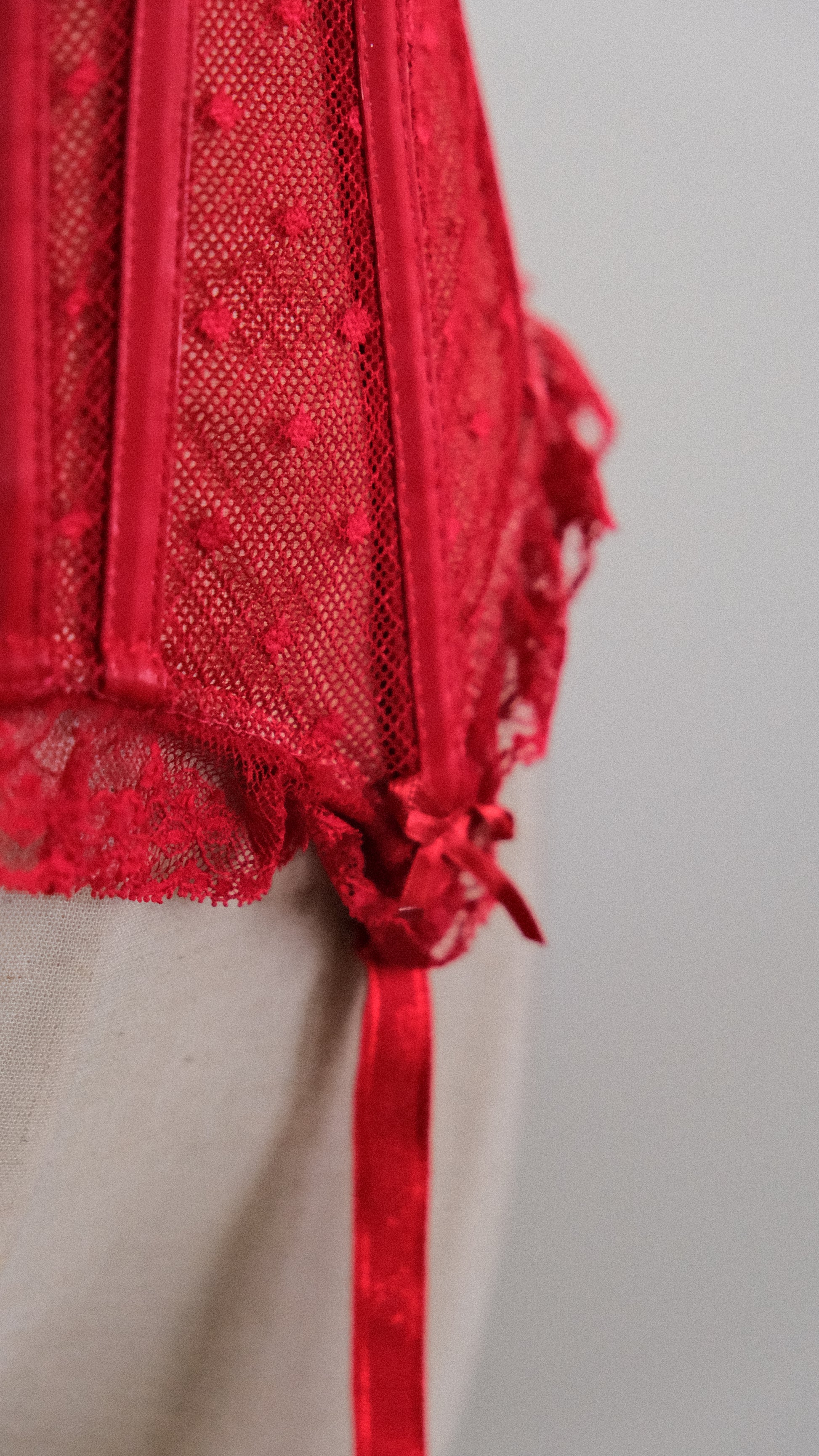 A romantic red corset with the cutest polka dot detailing in the fabric from the brand Chantal Thomass.