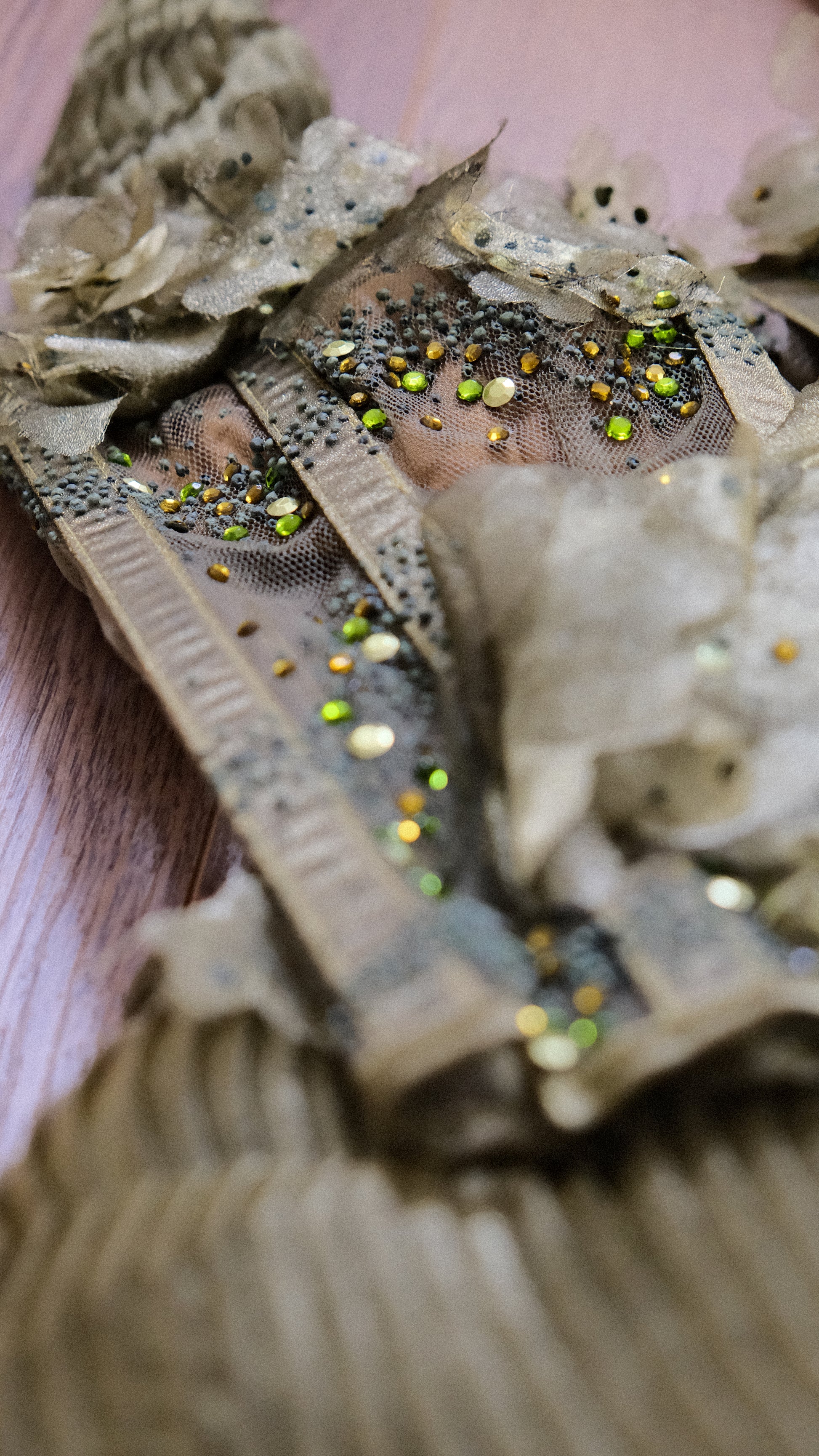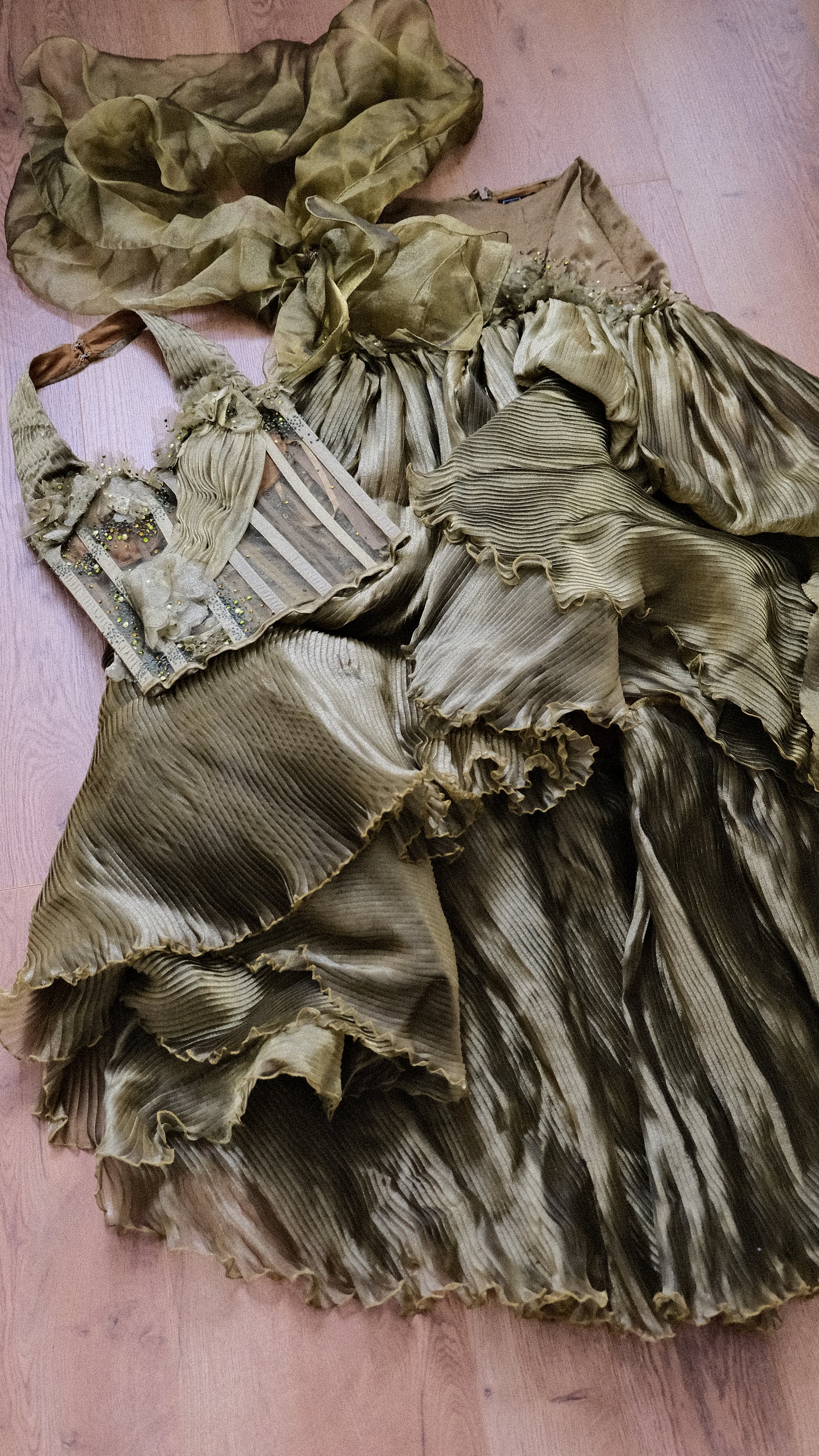 A magical set in a dark green forest color with embellished detailing and the most beautiful flowy ruffled edged on the skirt.