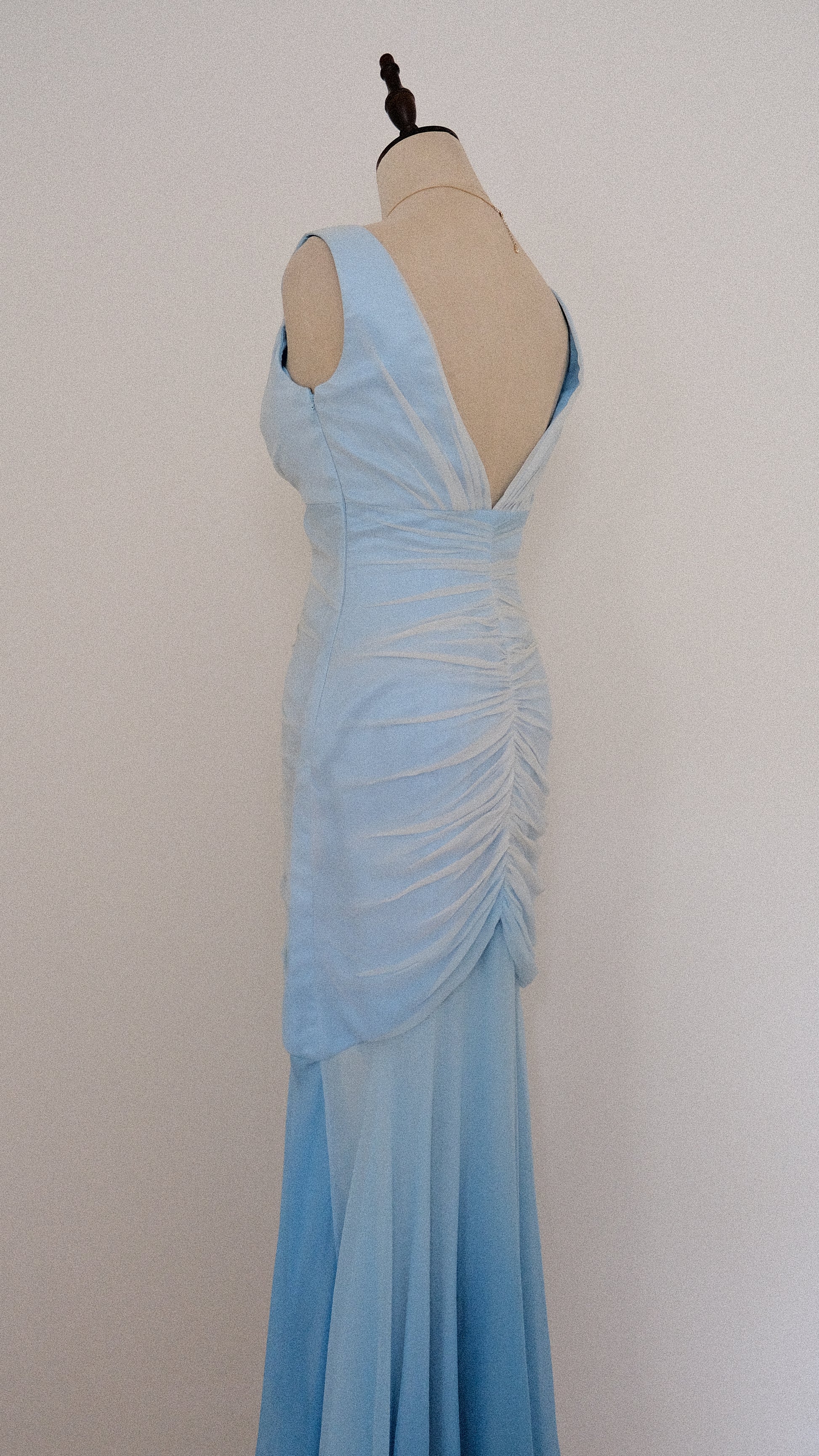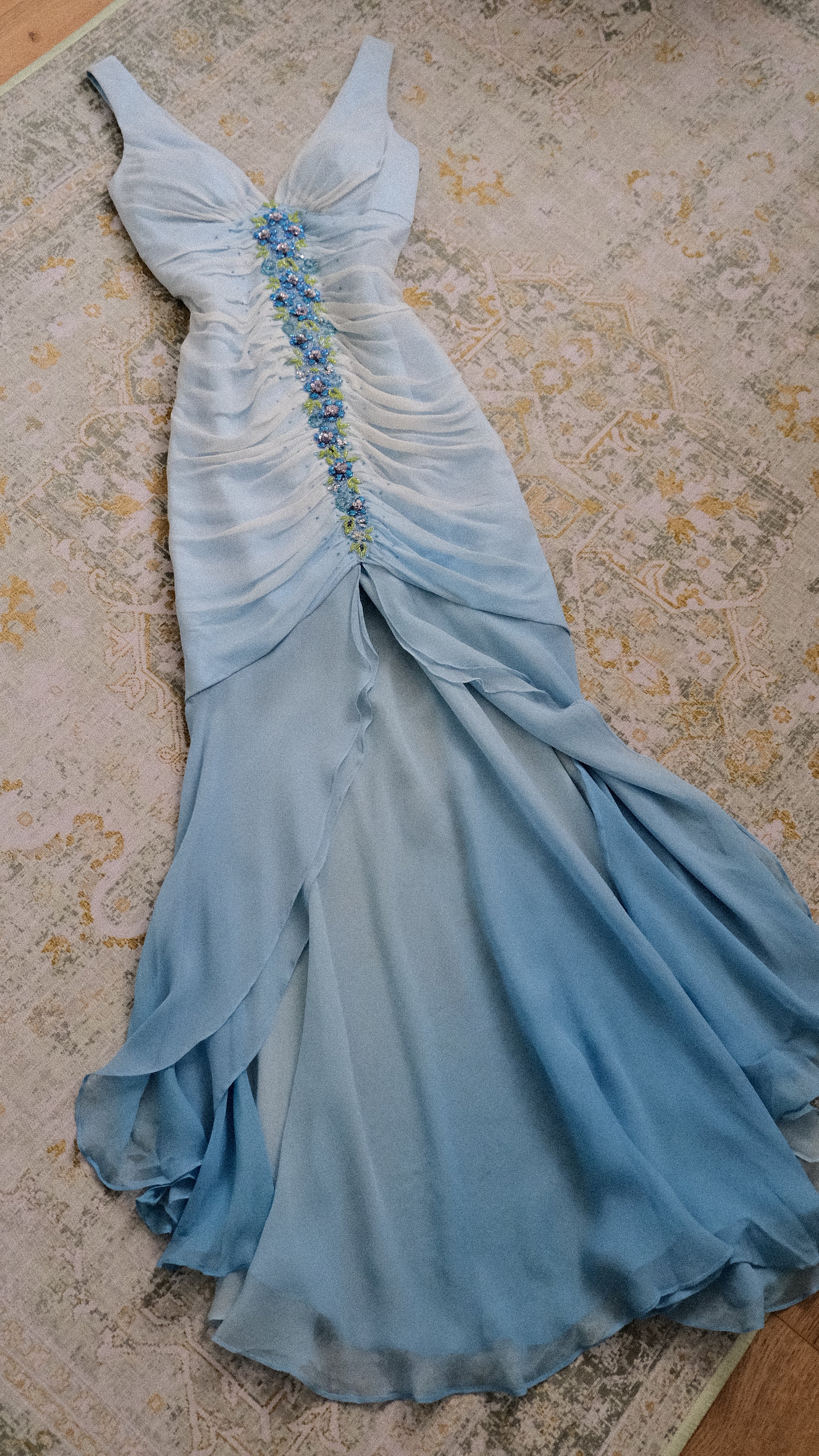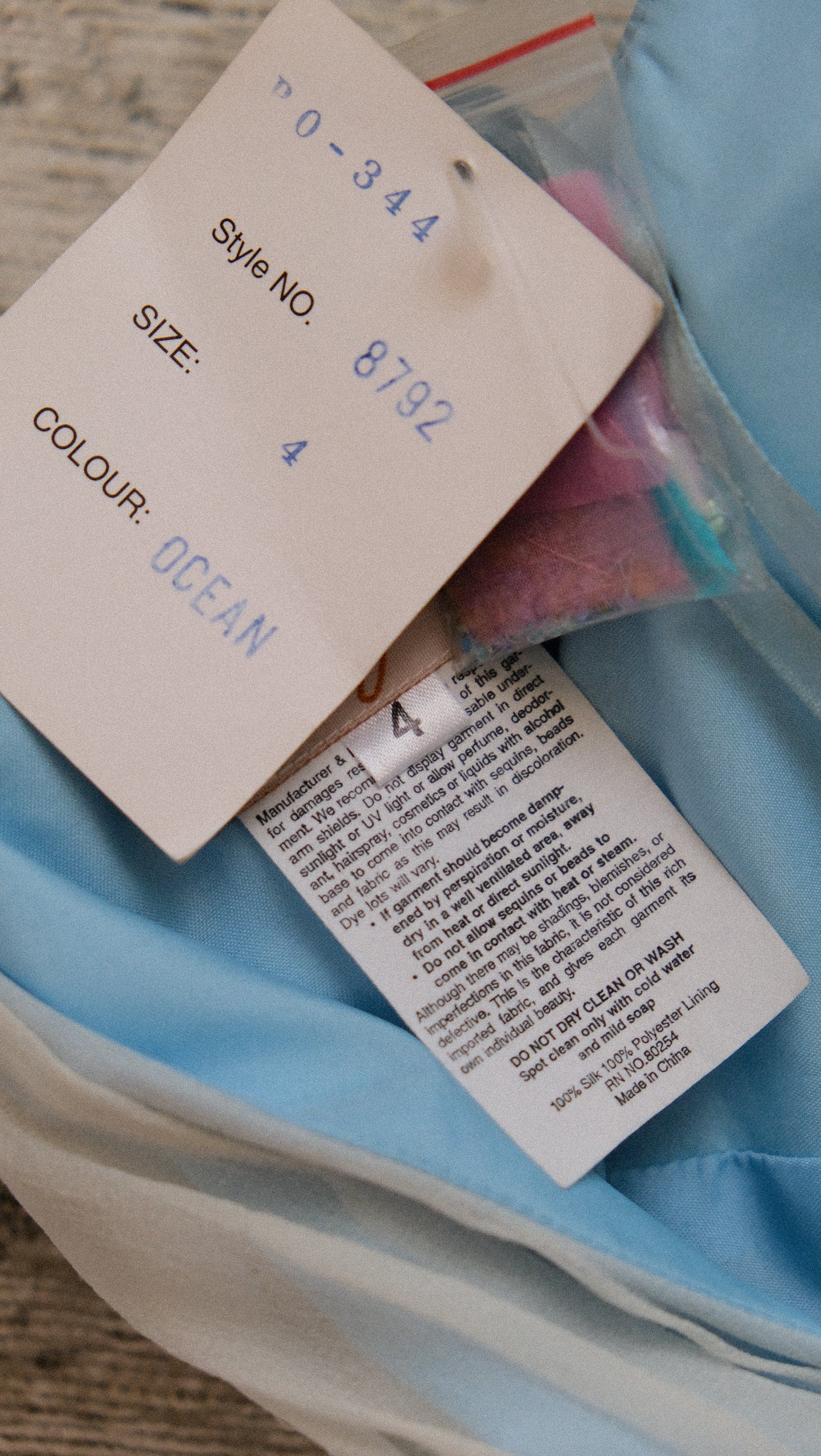 An magical dress that glides through waves and wishes. Short at the front and longer at the back.