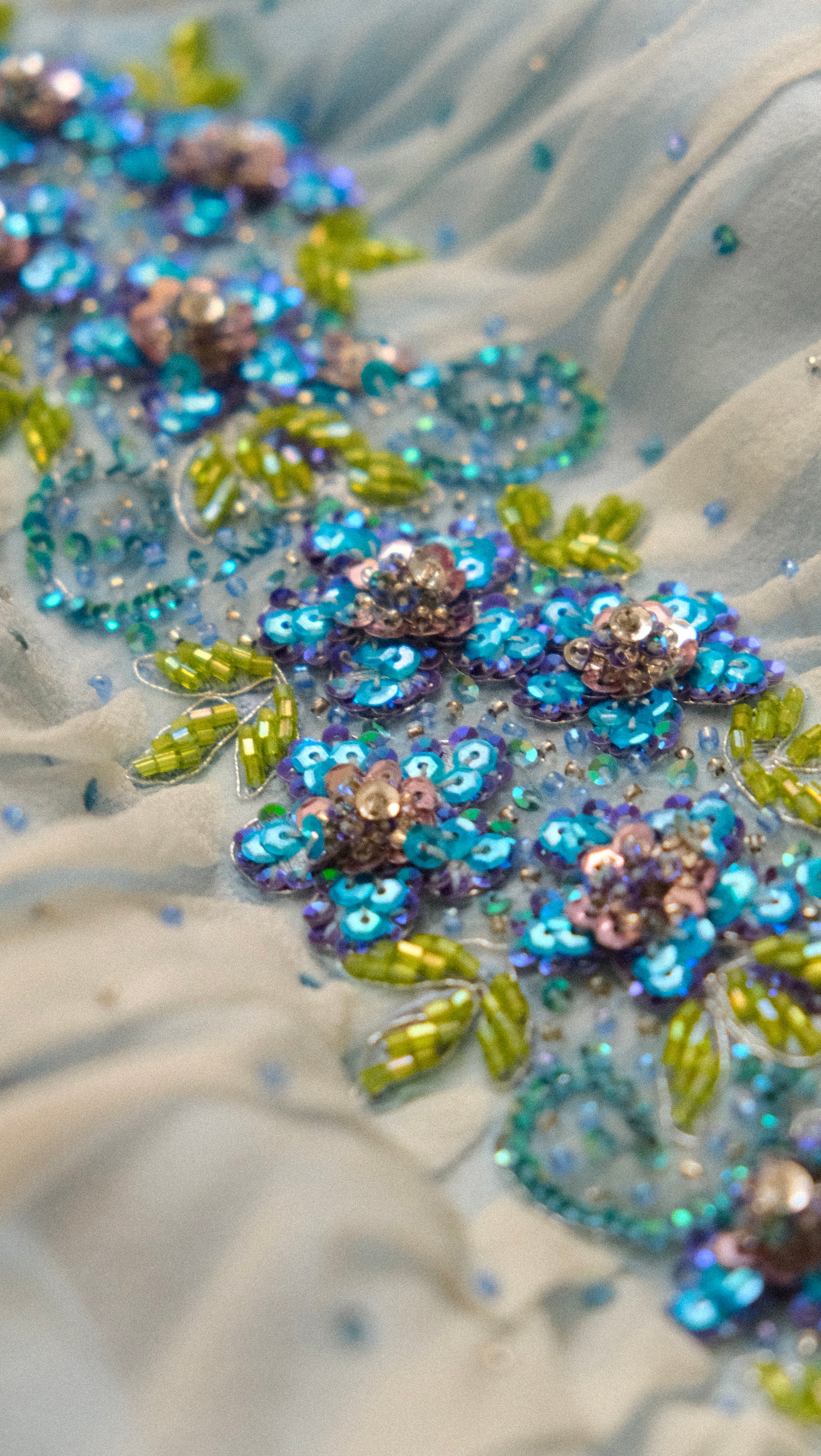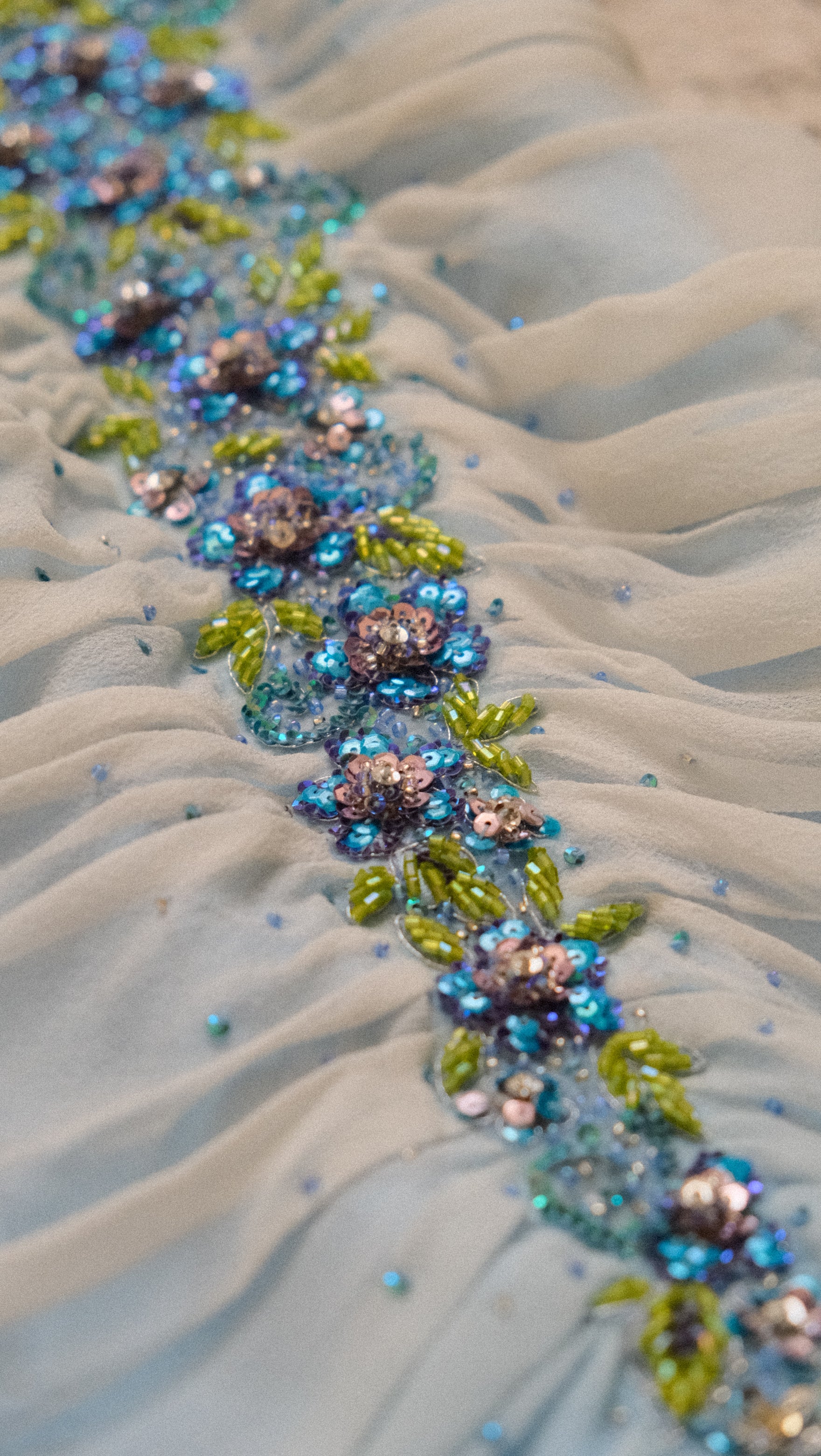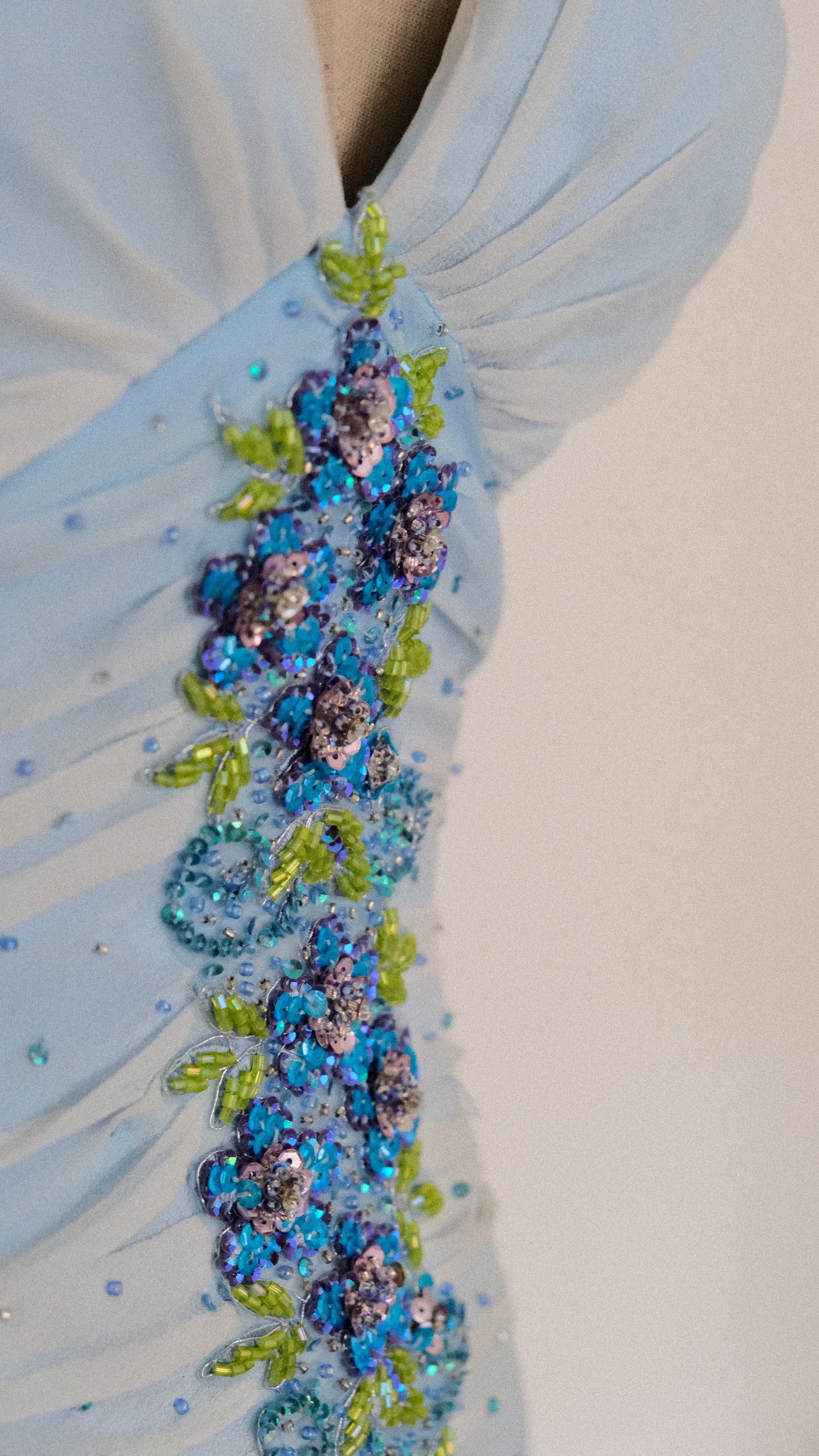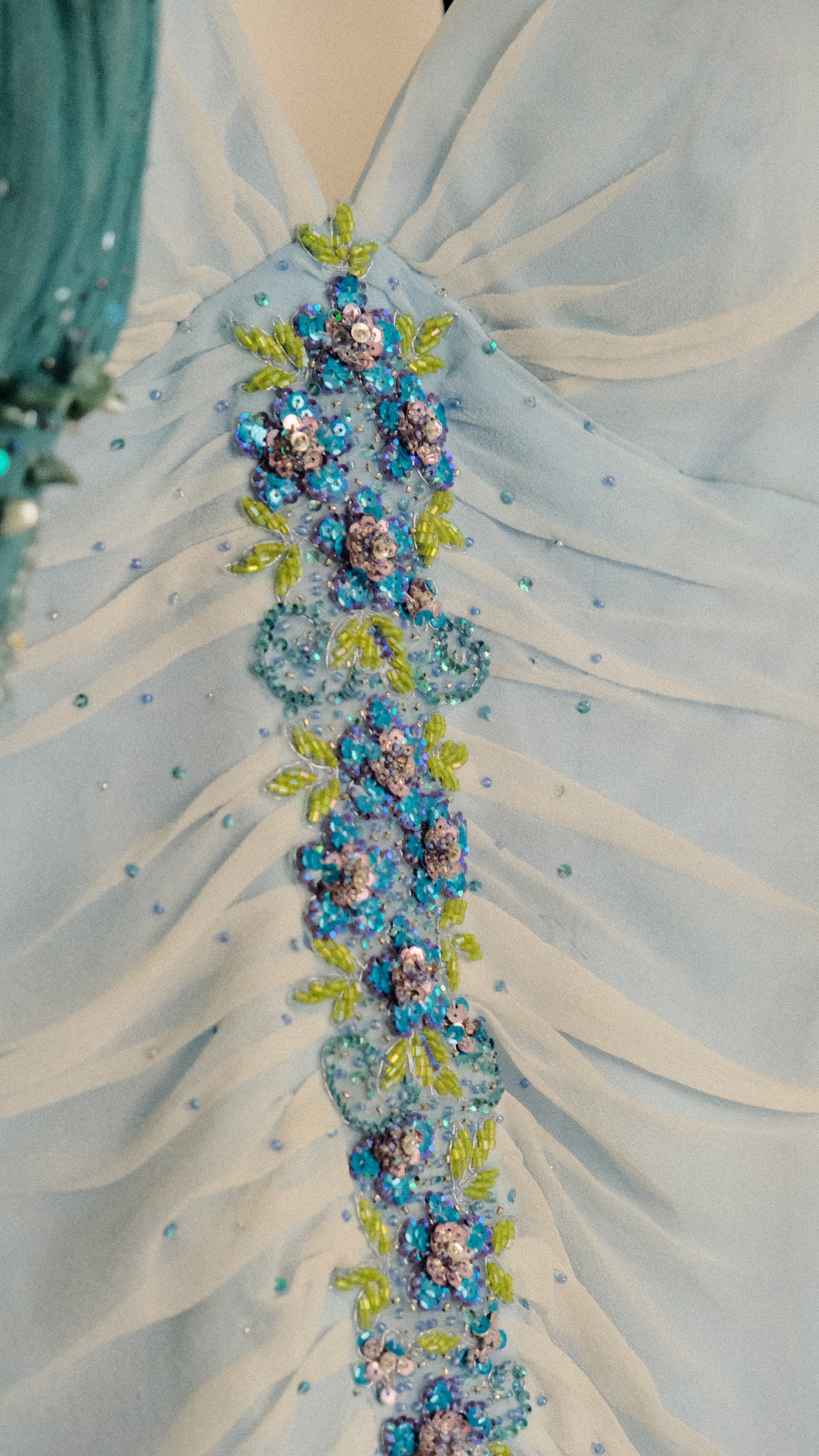 An magical dress that glides through waves and wishes. Short at the front and longer at the back.