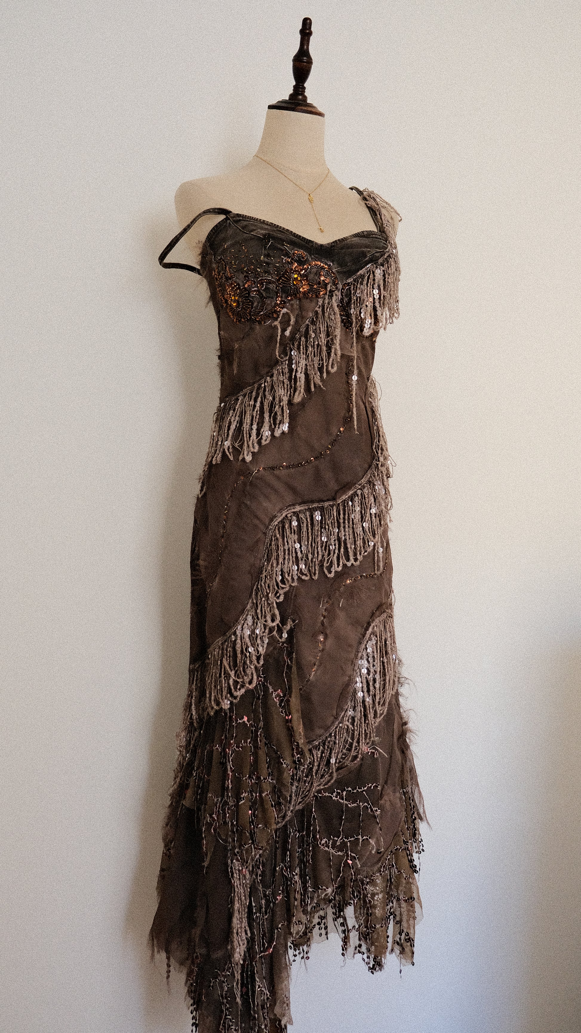 A mystical fairytale dress with stunning fringe and sequin detailing. A dress for all the fairies out there.
