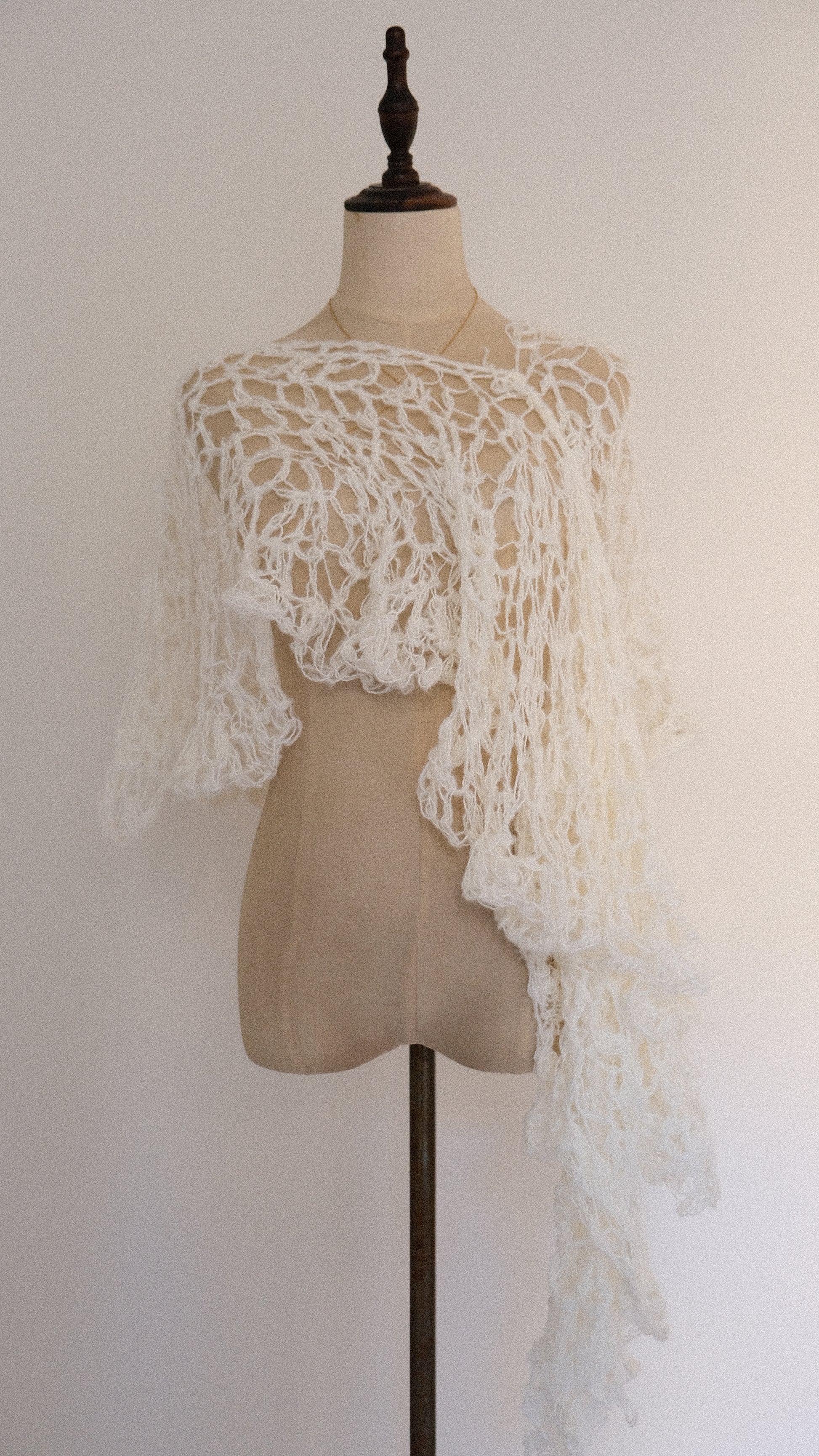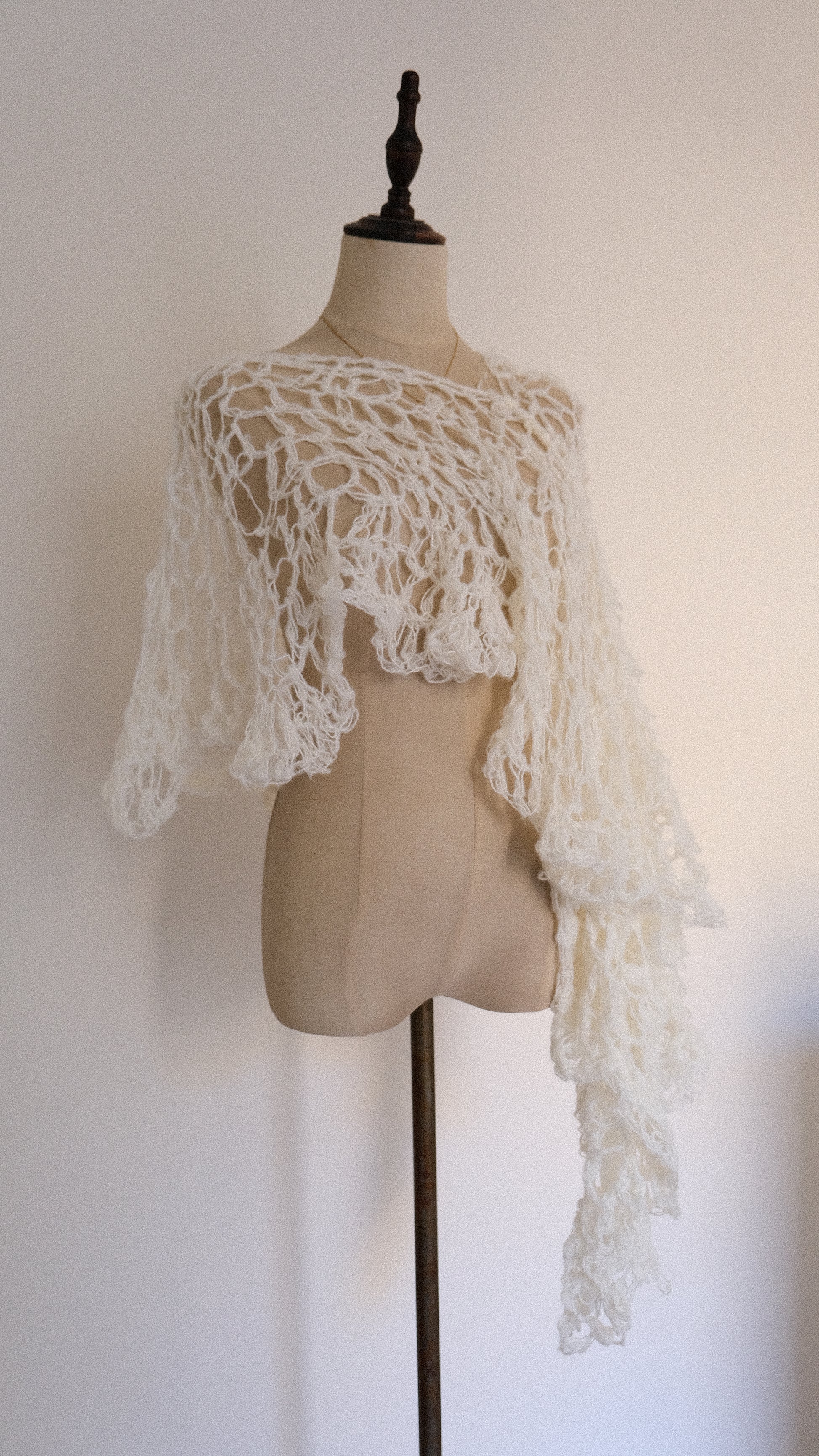 A handmade one of a kind asymmetrical poncho that drapes like a magical mist, embracing you in a fairytale embrace.