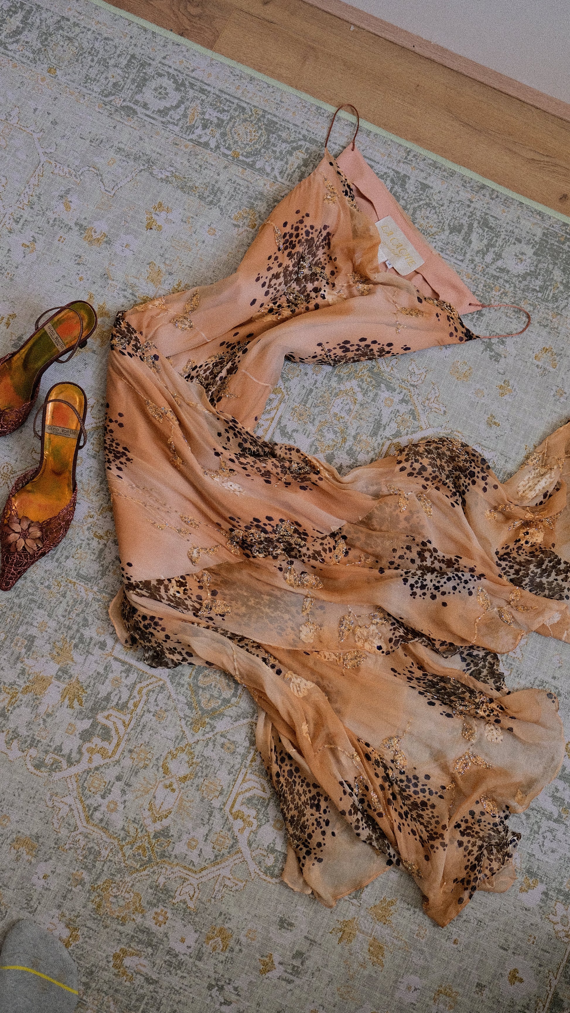 A forest fairy dress in the most beautiful brown color palette. The dress has an asymmetrical cut at the bottom for a fairy aesthetic look and embellished detailing here and there.