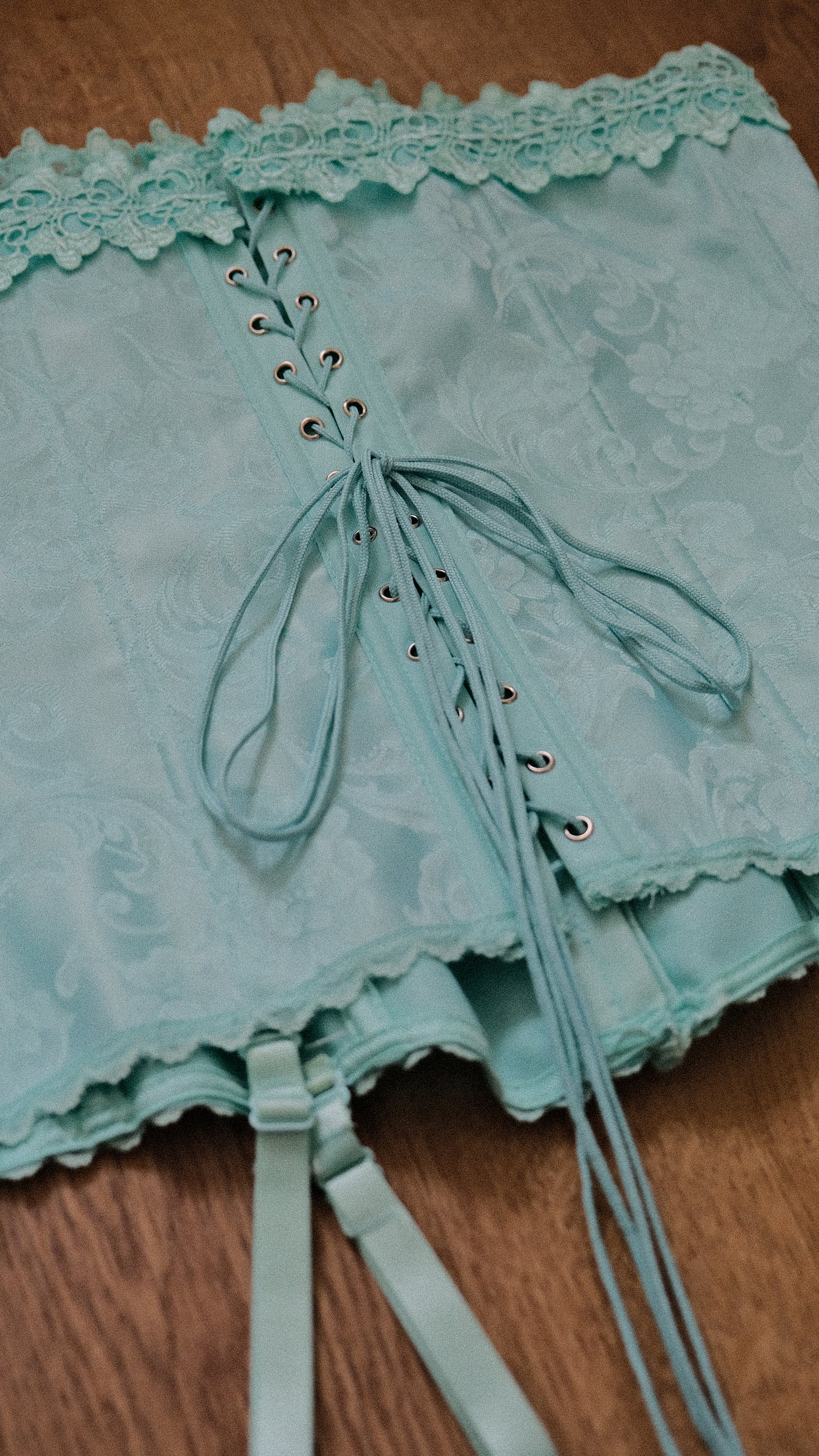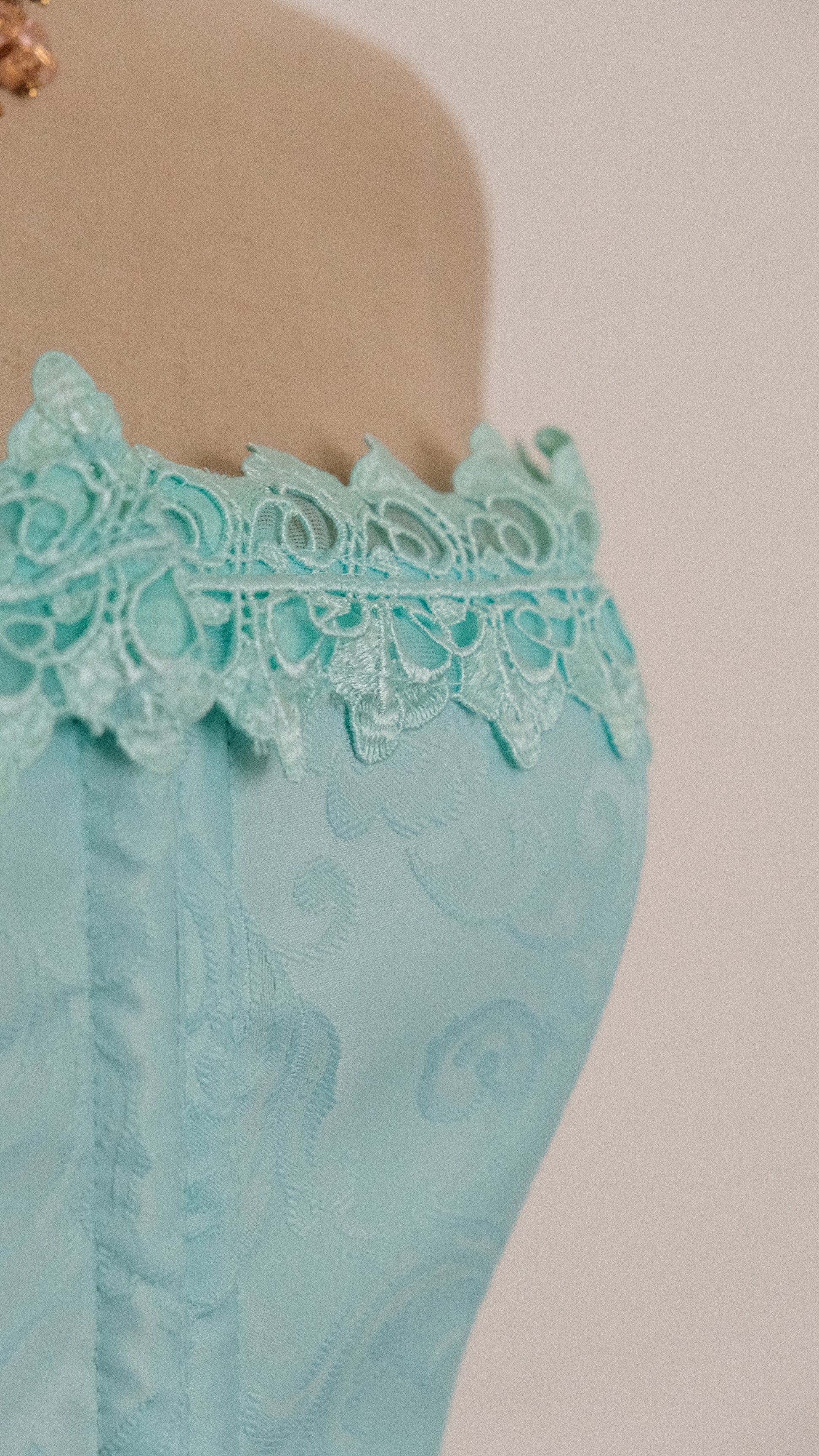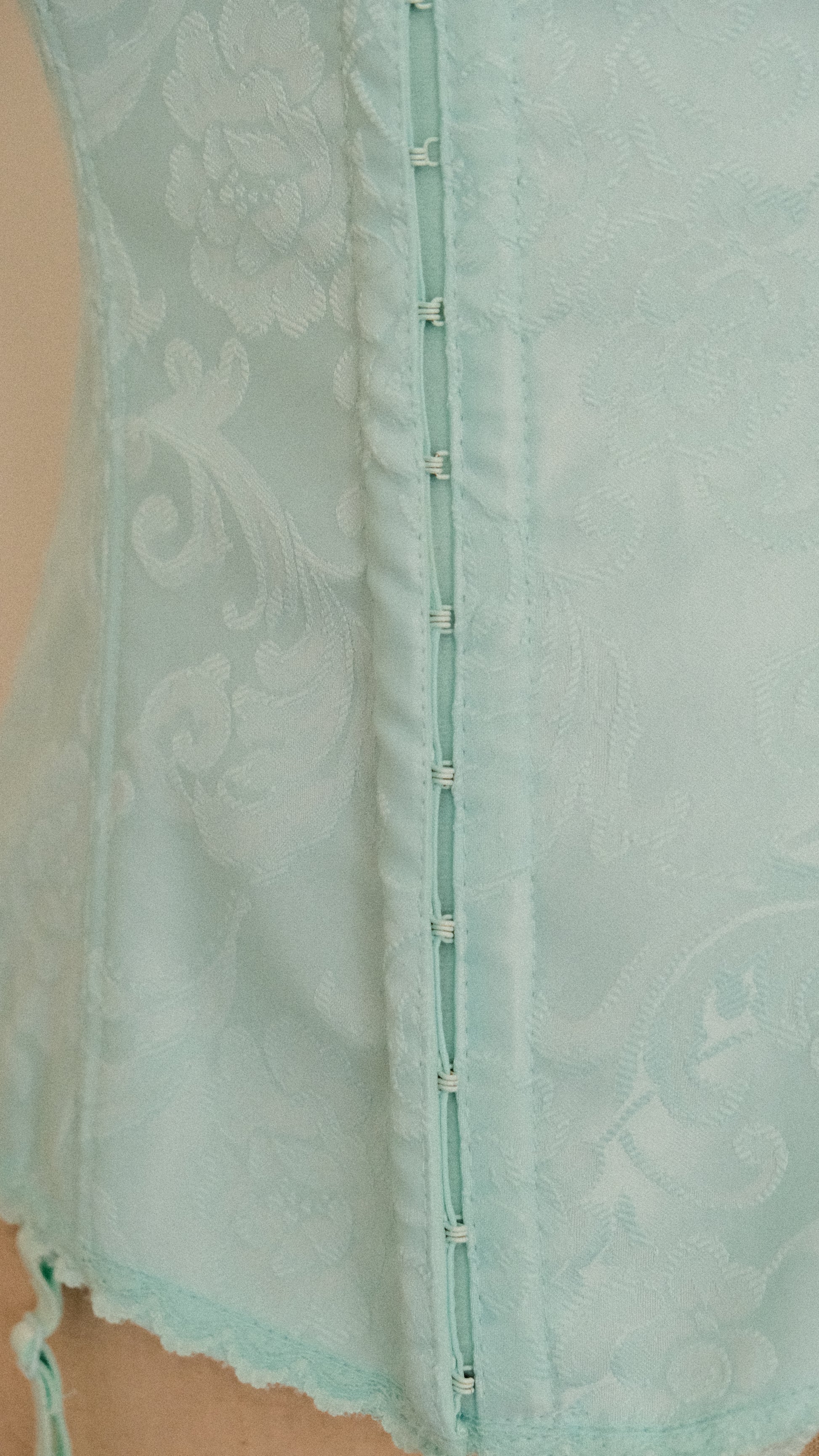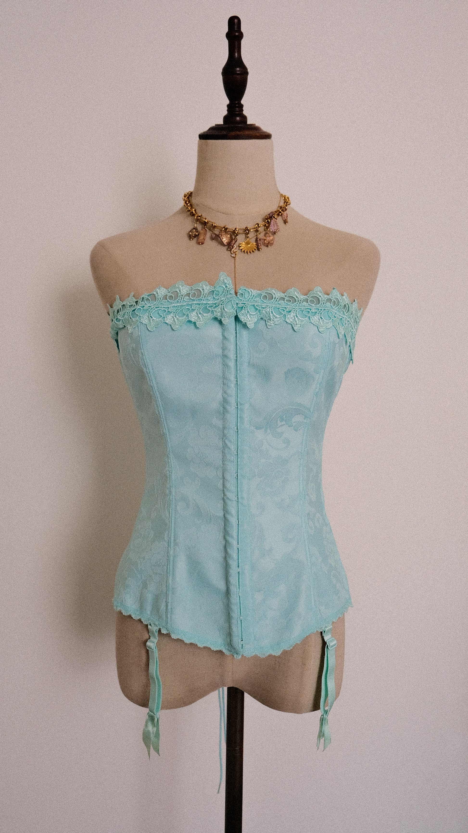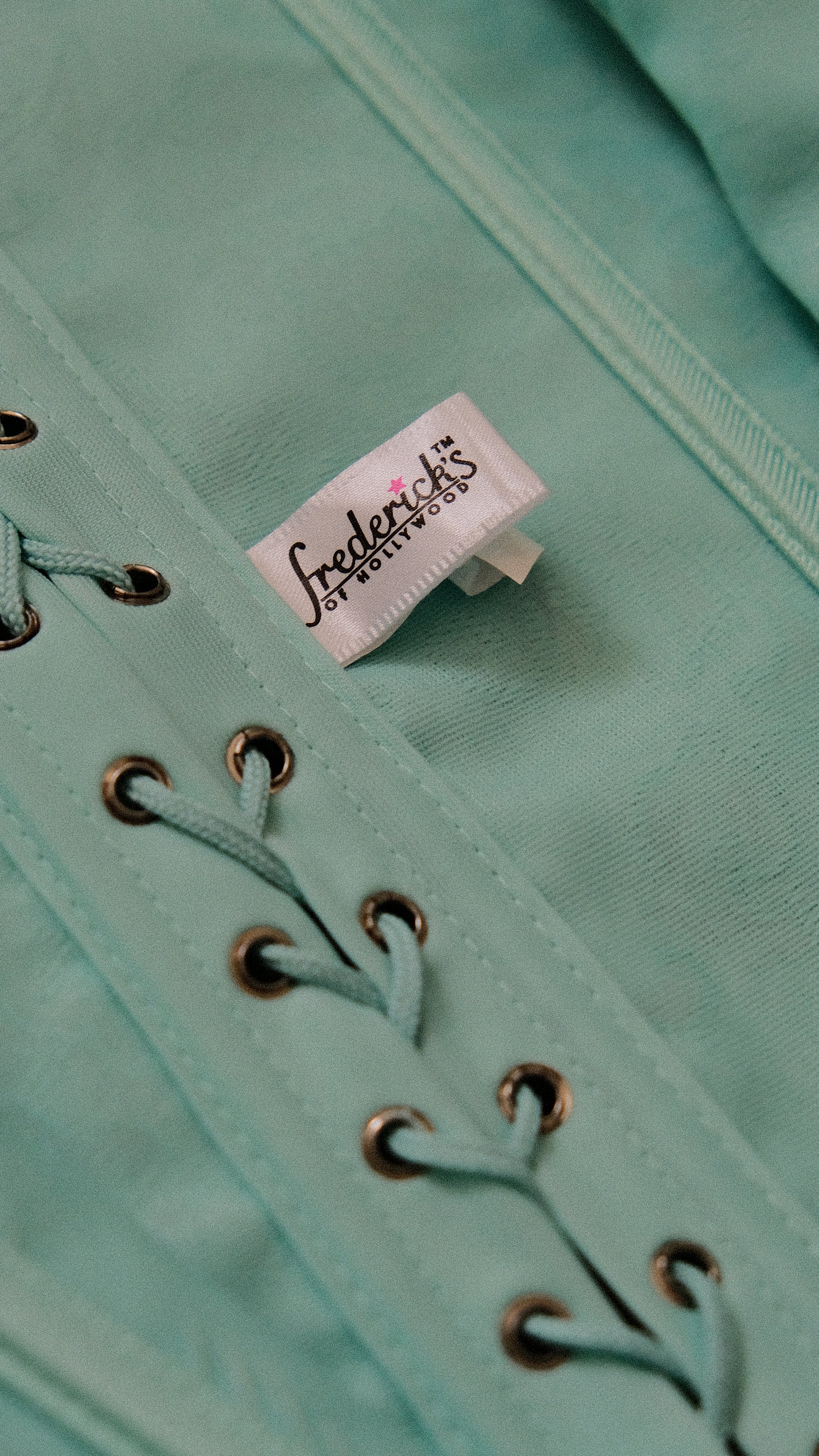 Fredericks of Hollywood dreamy strapless bustier with hook closure at the front and lacing at the back.