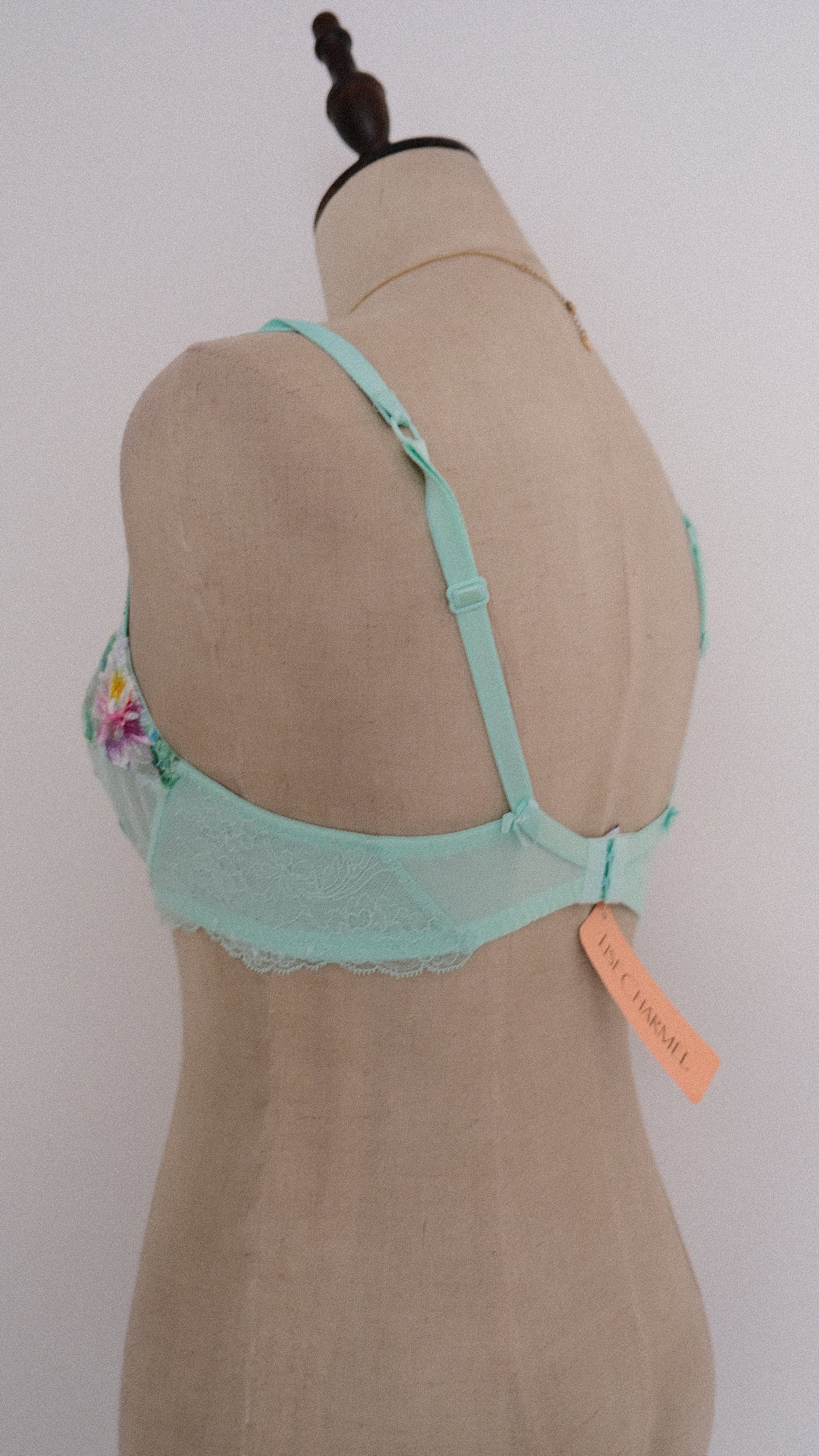 Vintage French sheer fairytale bra with floral embroidery and the cutest little rhinestones.
