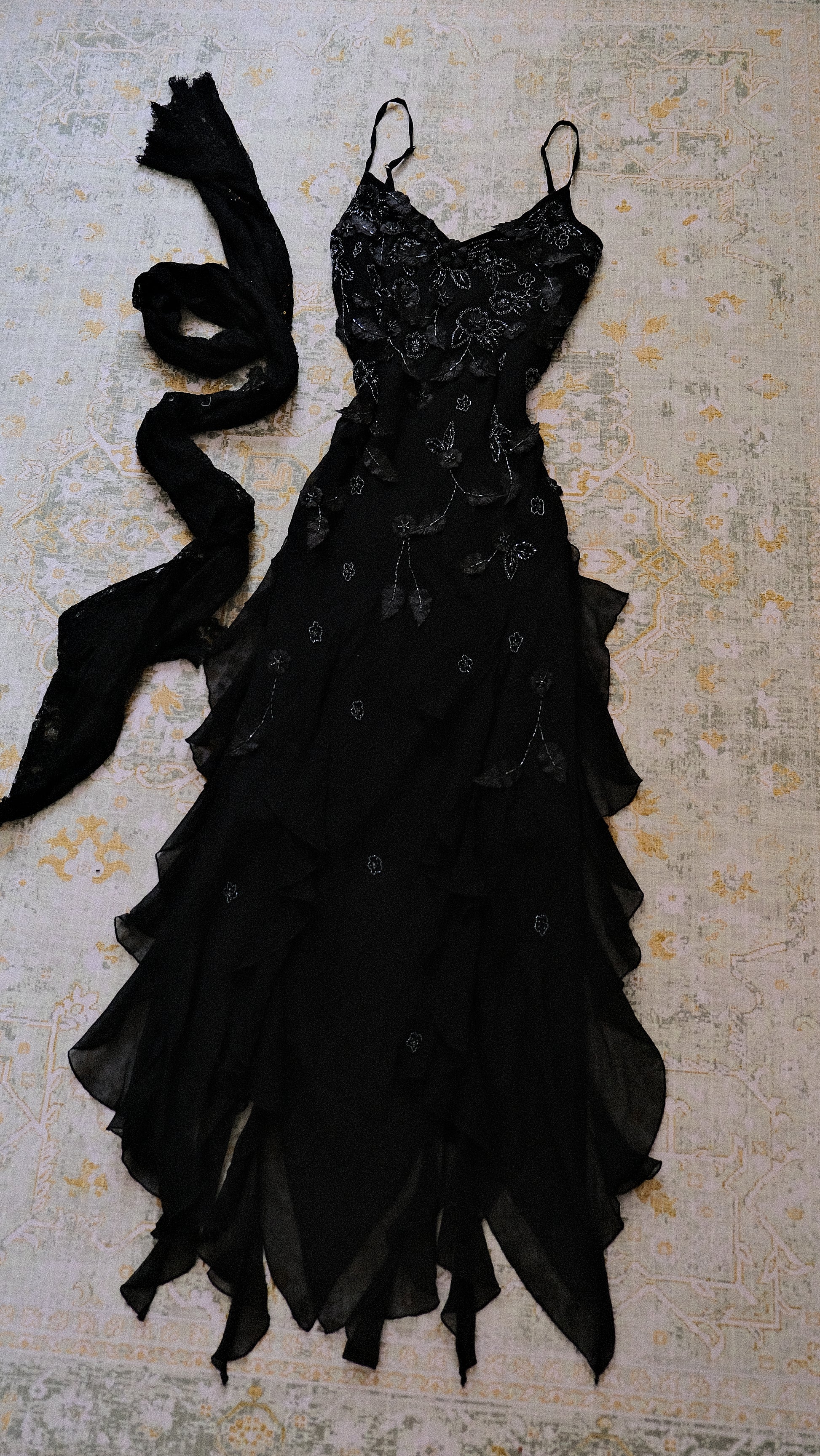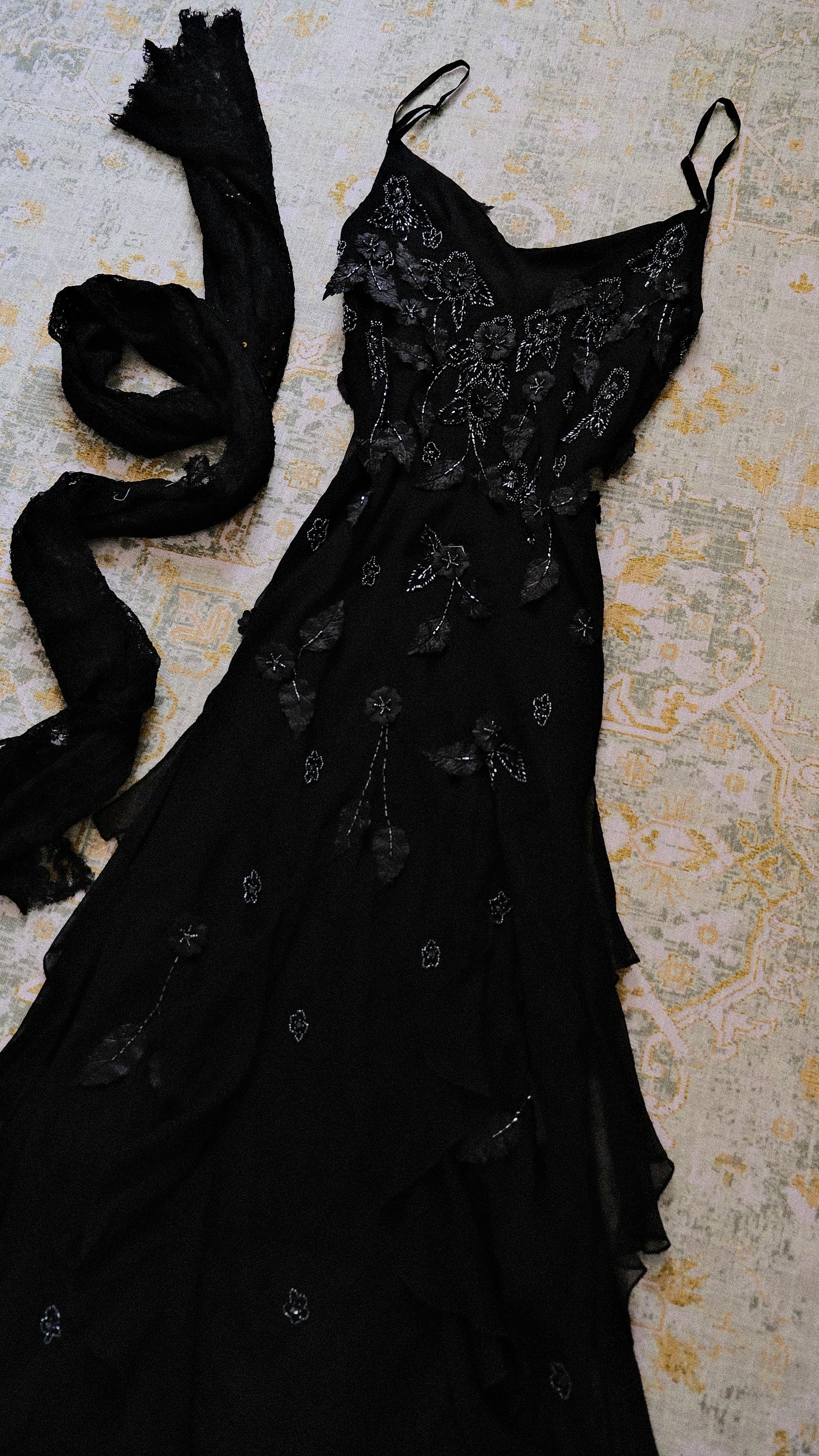 A rare vintage Spanish petal embellished dress; fragile, blooming and forever untamed.