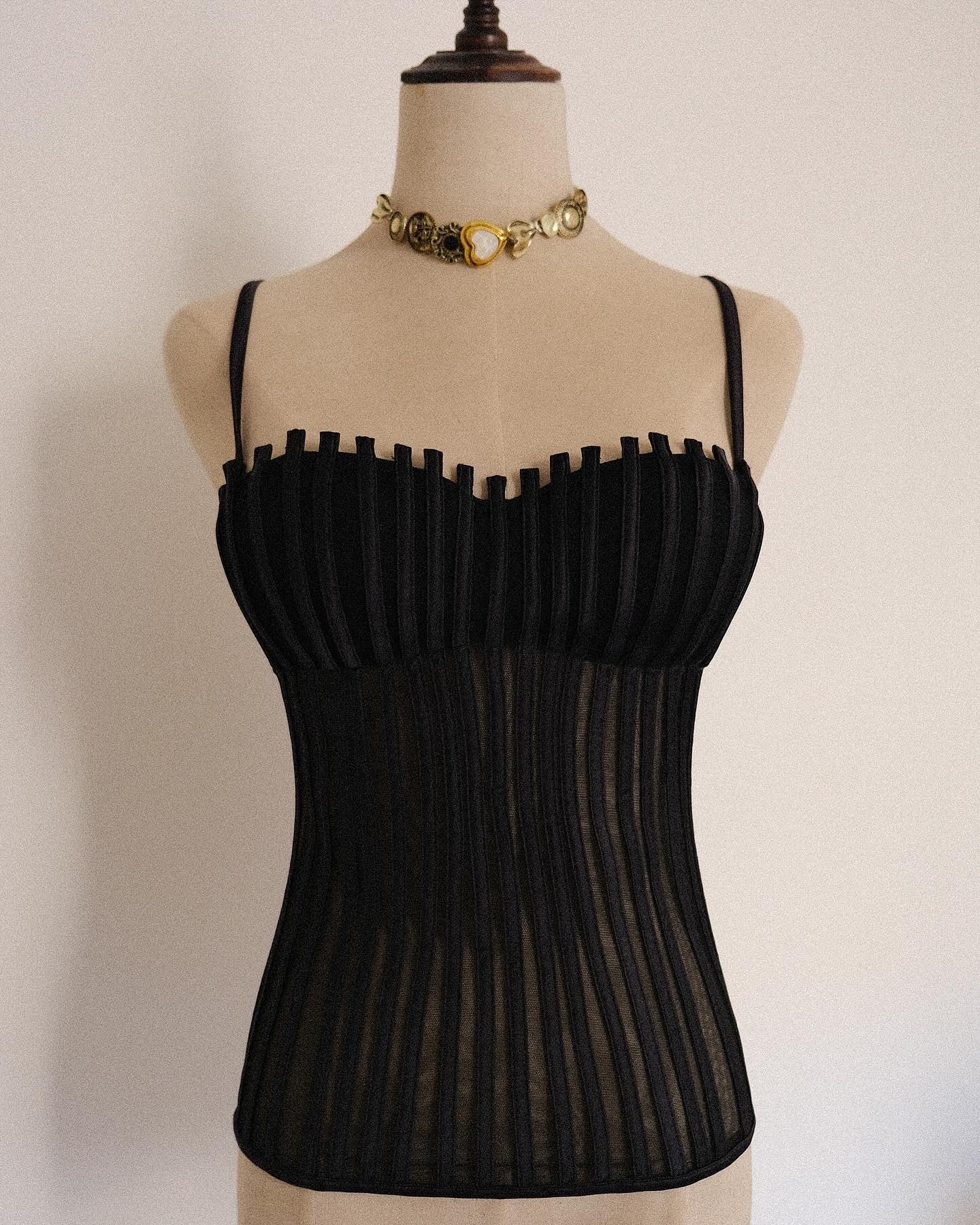 A romantic enchanted corset top from the Graphique collection of La Perla. Only boning on the side and two shorter boning strips right below the cups.