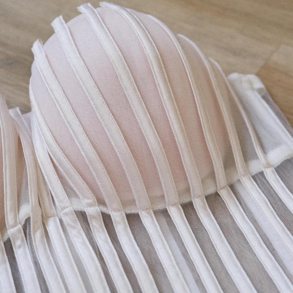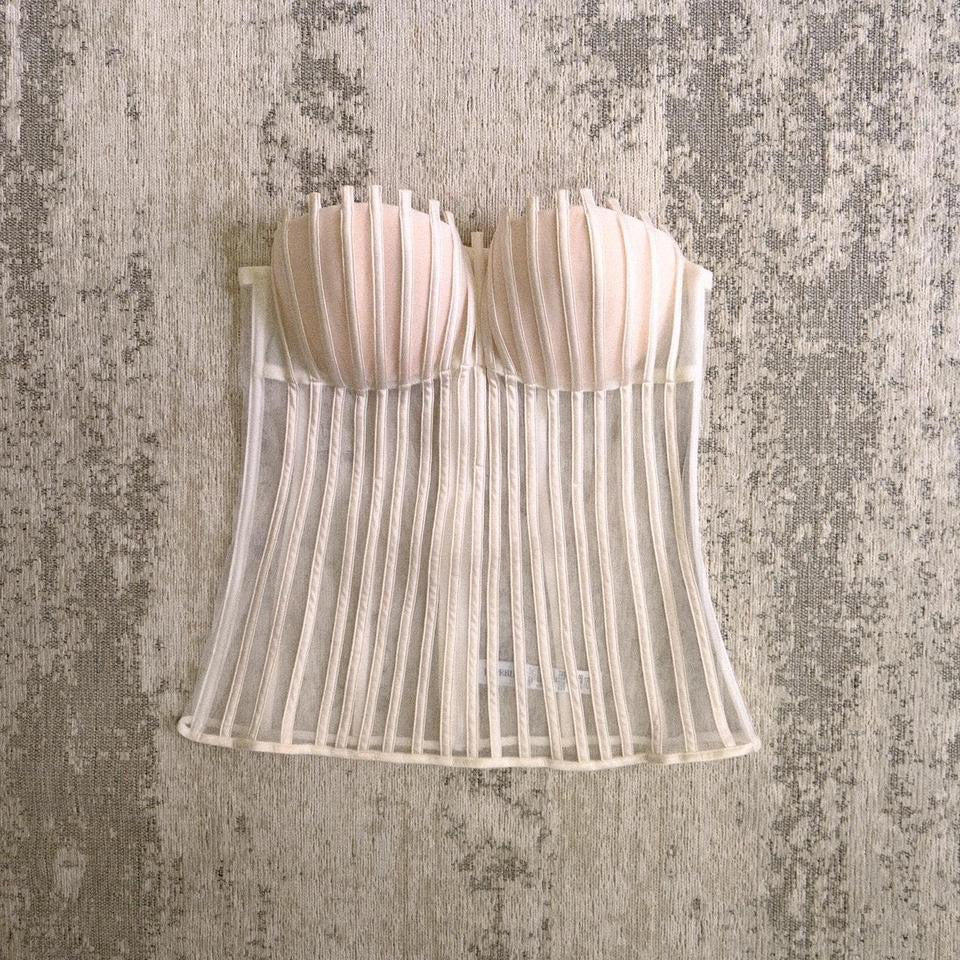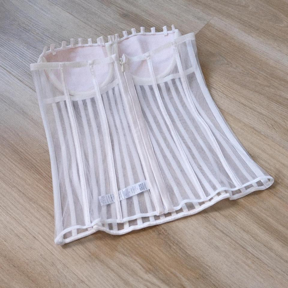 A rare angelic white corset top from the Graphique collection of La Perla. Only boning on the side and two shorter boning strips right below the cups. No straps included.