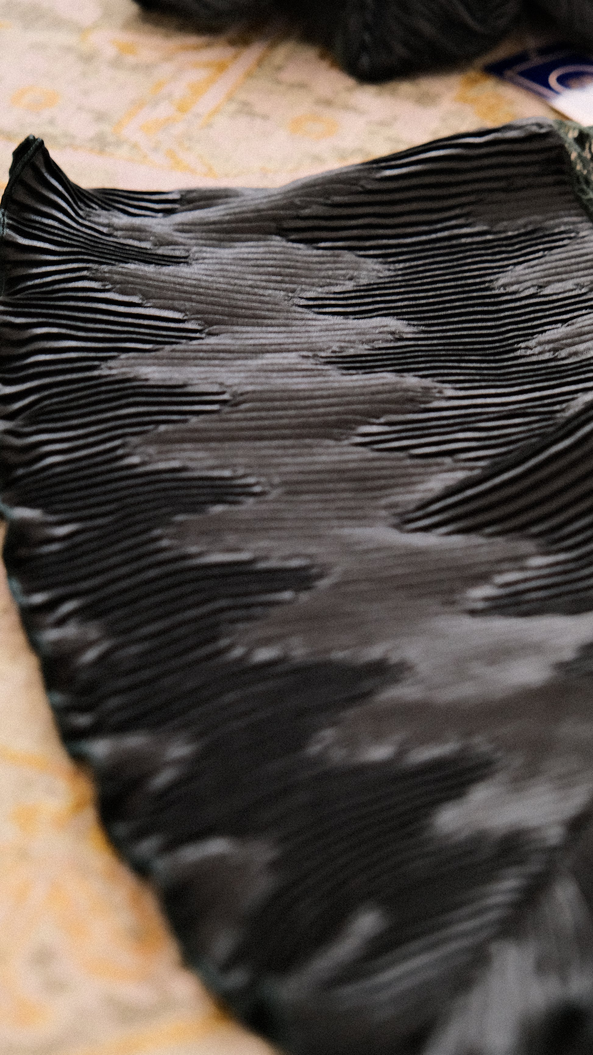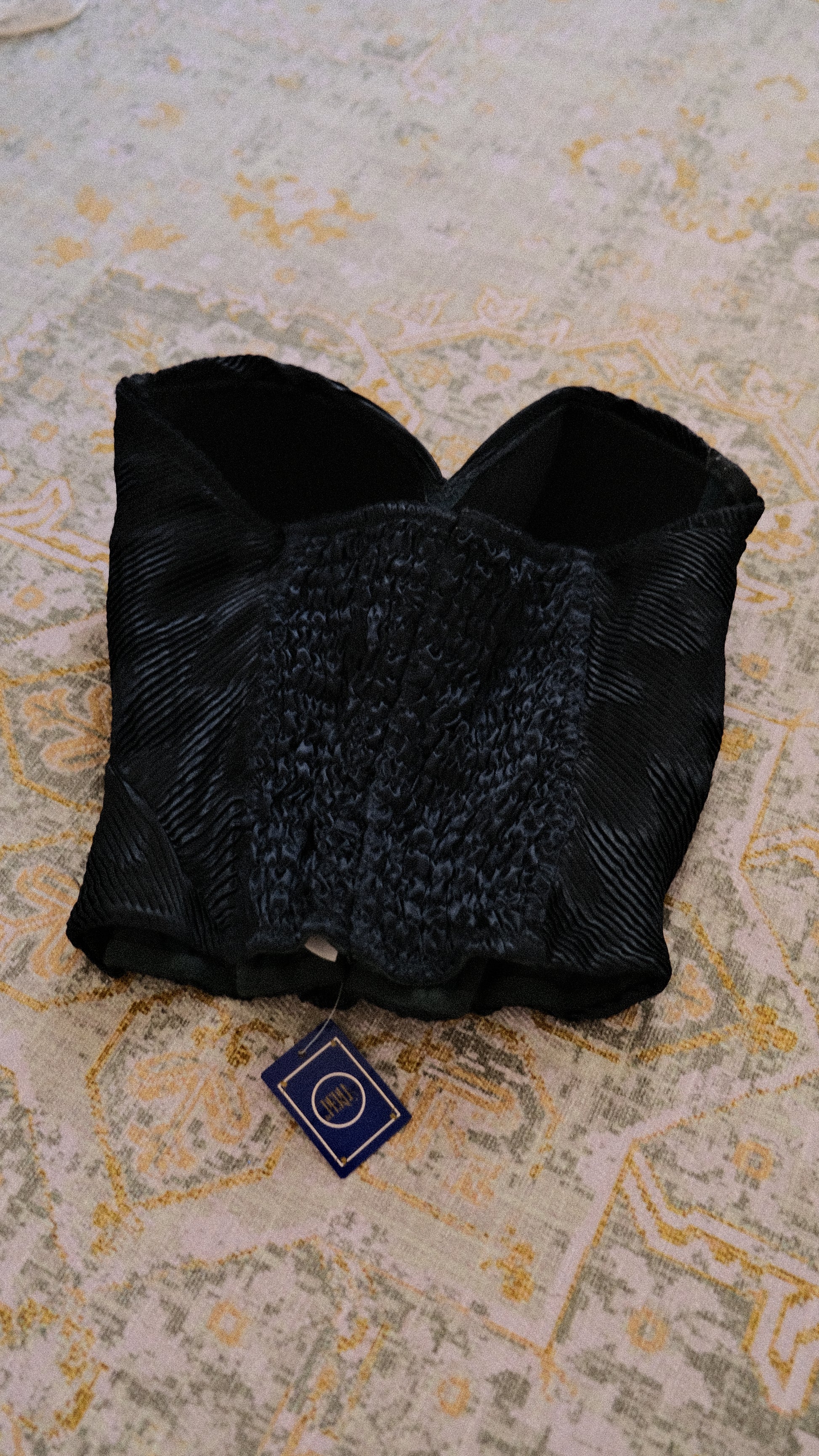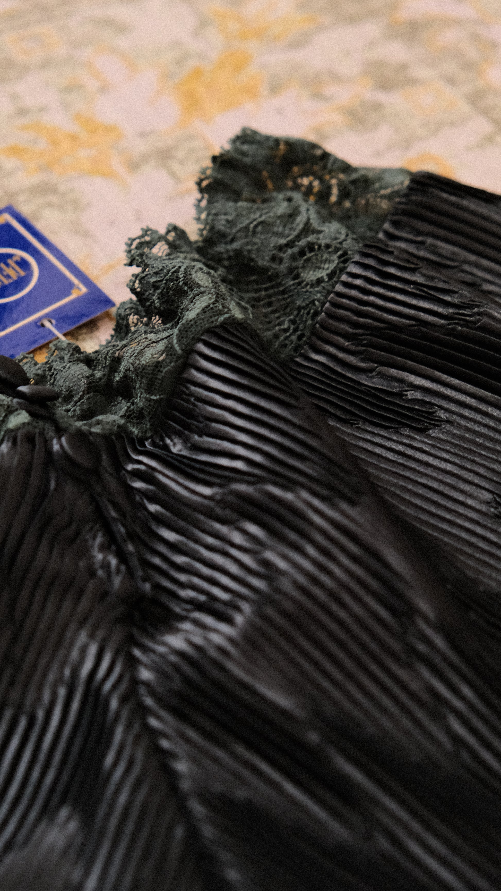 A rare pleated vintage La Perla set: a bustier and dreamy shorts in a kaki green color.