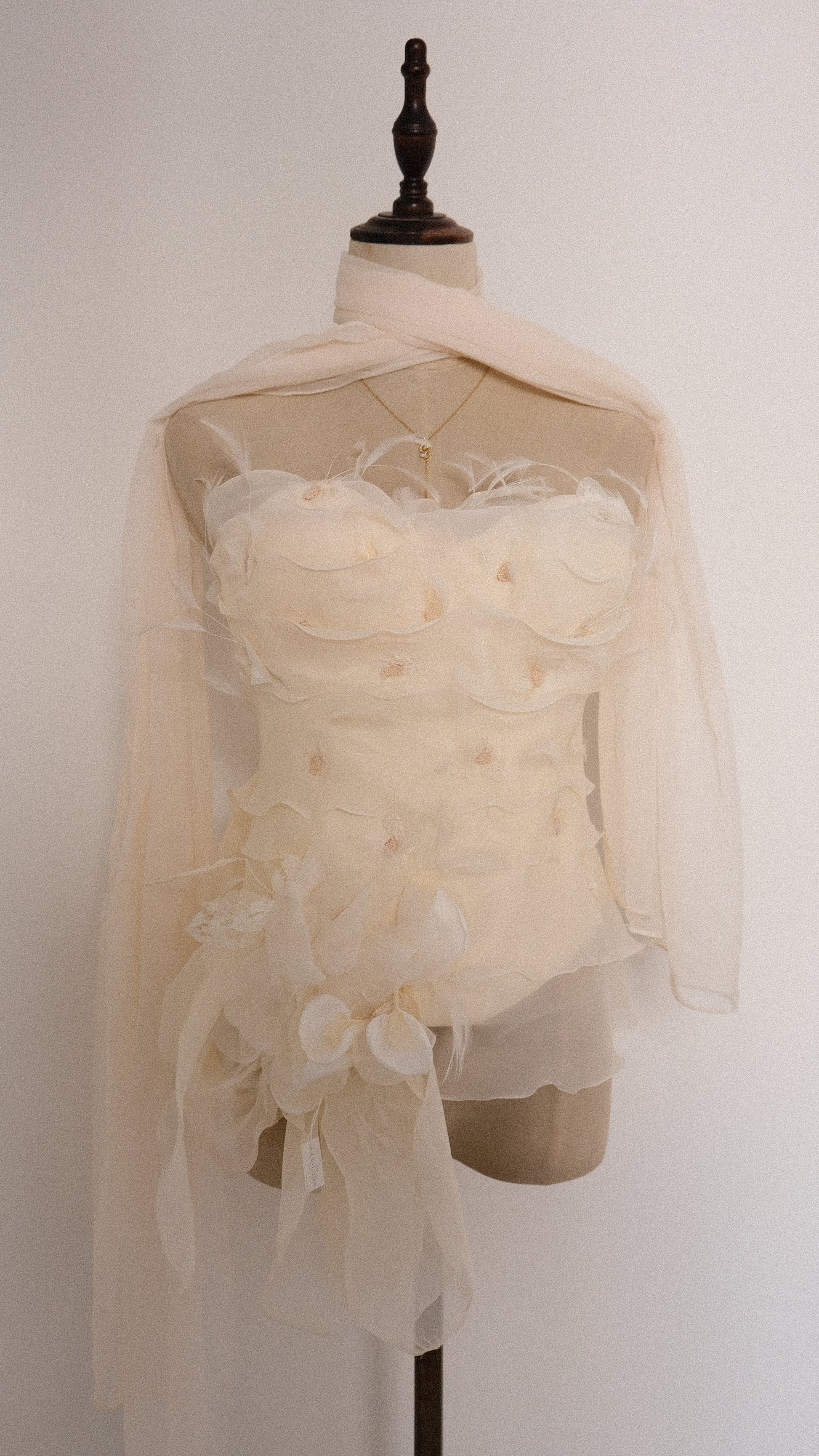 A rare one of a kind ruffled vintage bustier with flower detailing for an even more fairycore look. The perfect bustier for a magical moment.