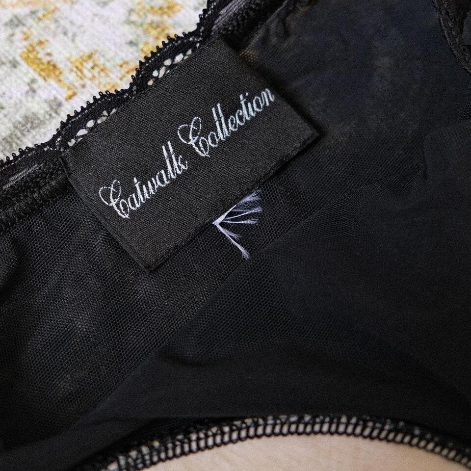 A romantic timeless black mesh bustier dress with embroidery and sequin detailing from the brand Catwalk Collection London.
