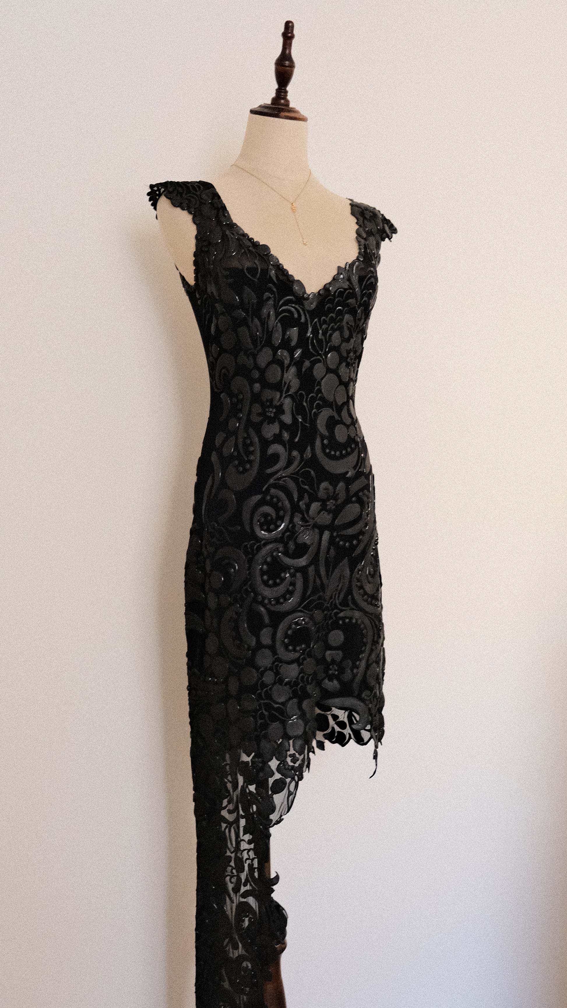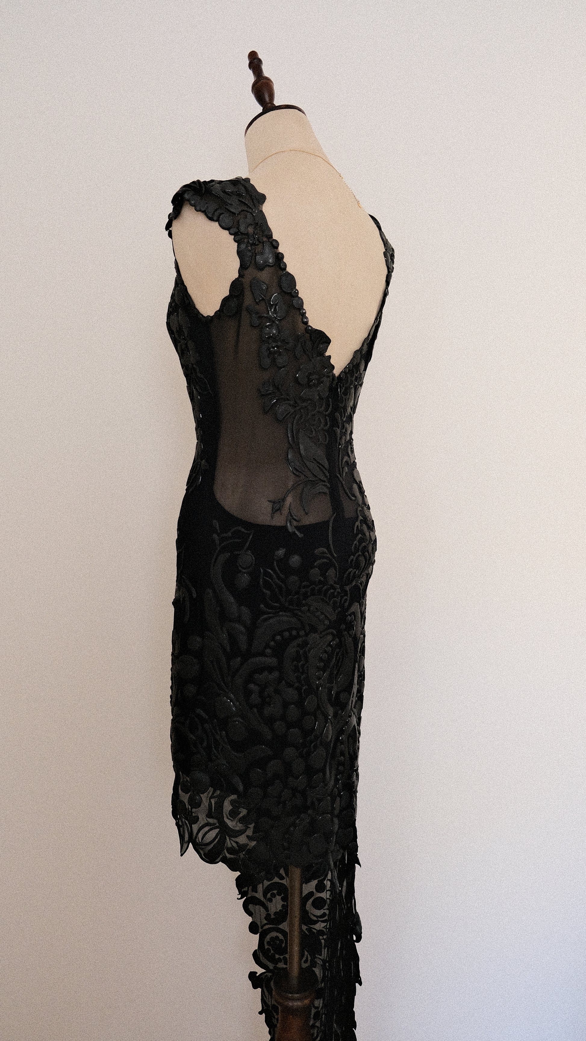 A fairygrunge mystical dress with handpainted detailing and asymmetrical cut at the bottom. Brand: Ema Savahl
