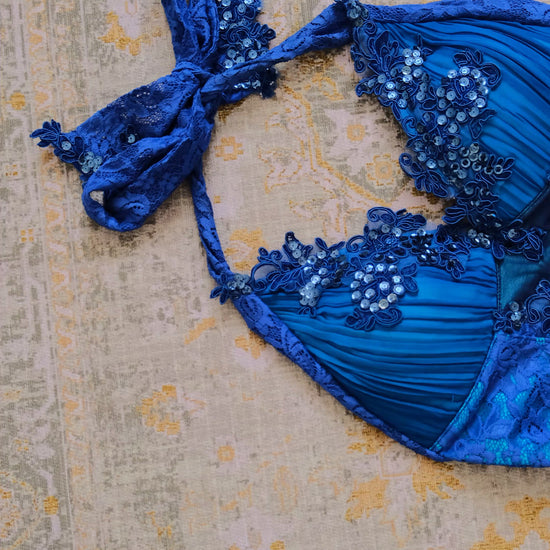 A royal ocean mystique dress with glimmering sequins that catch the light like the first glint of dawn on tranquil waters.