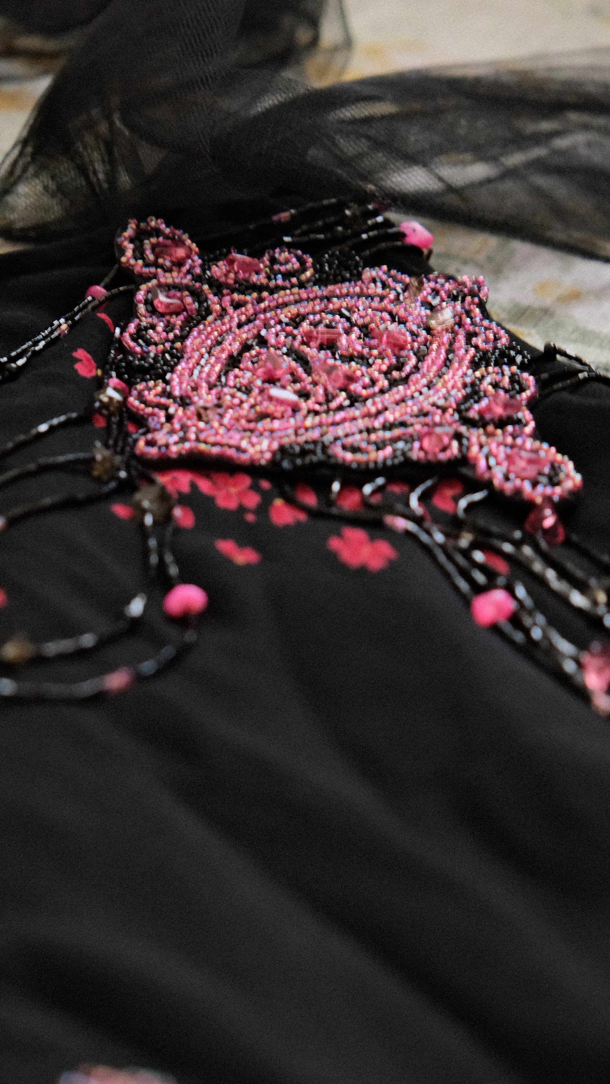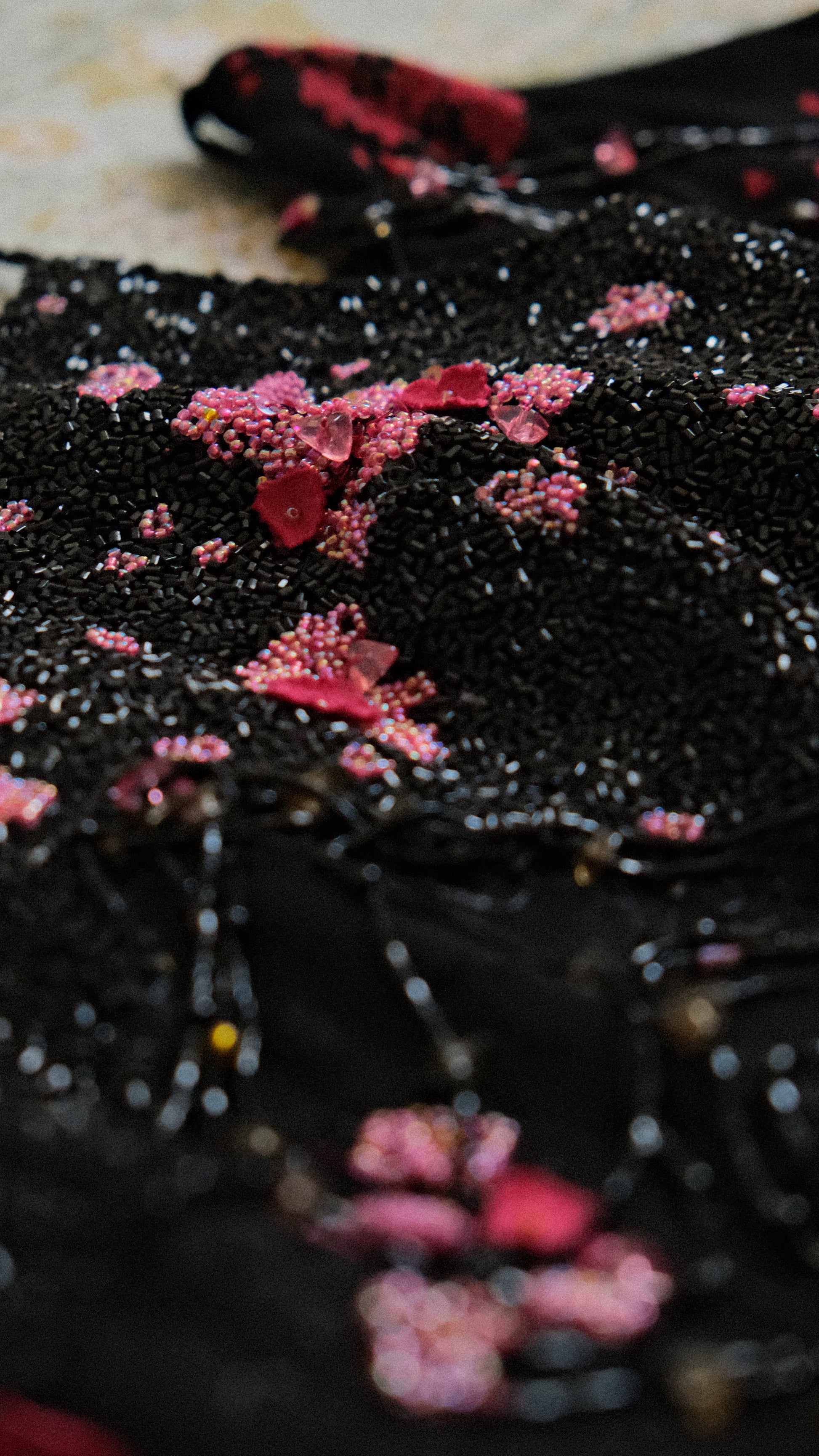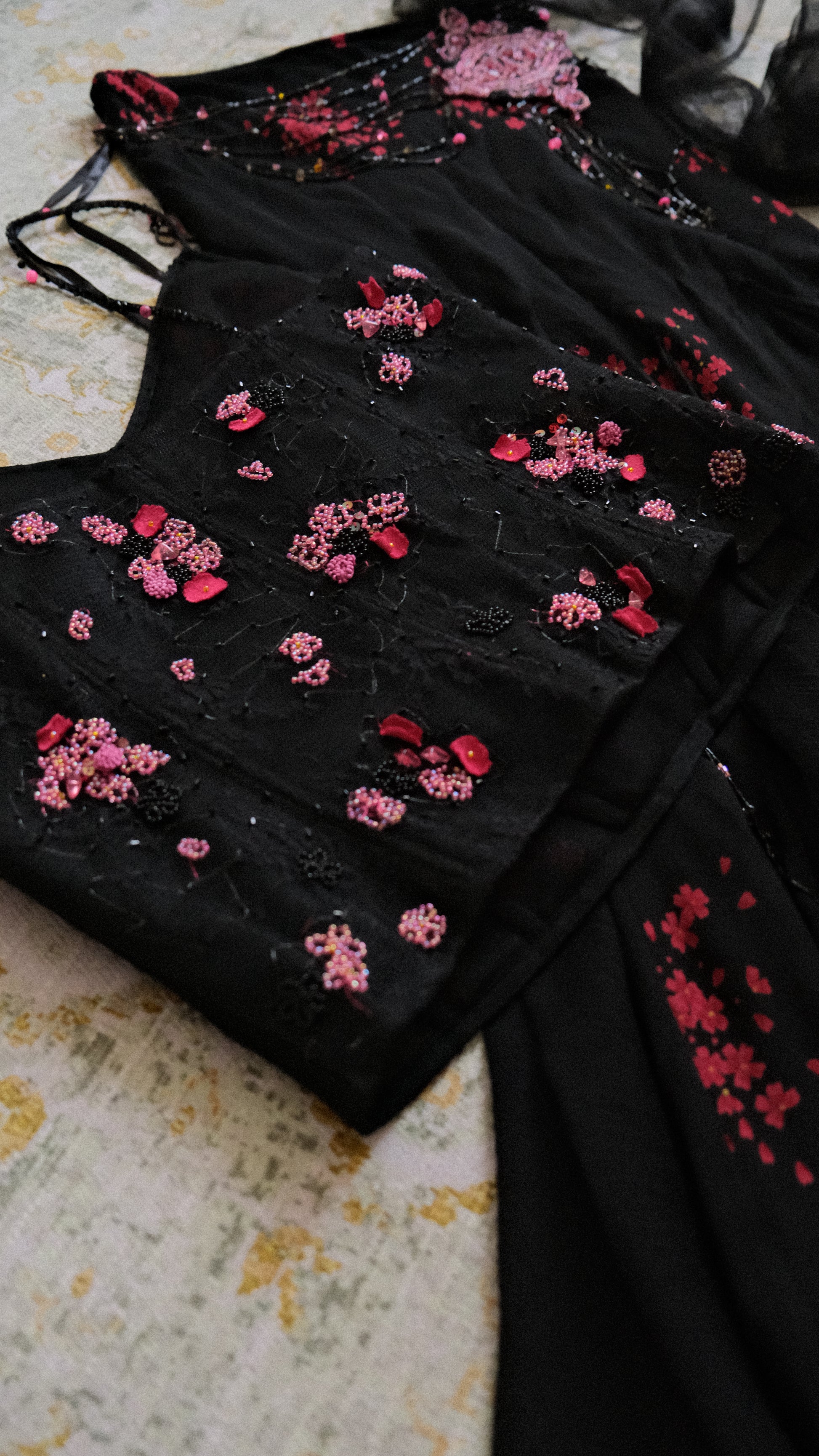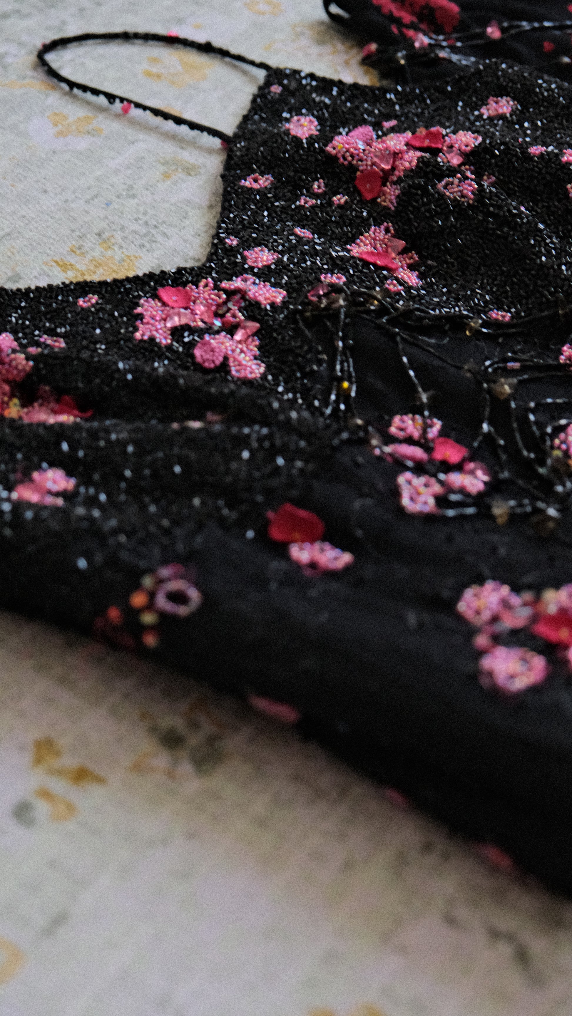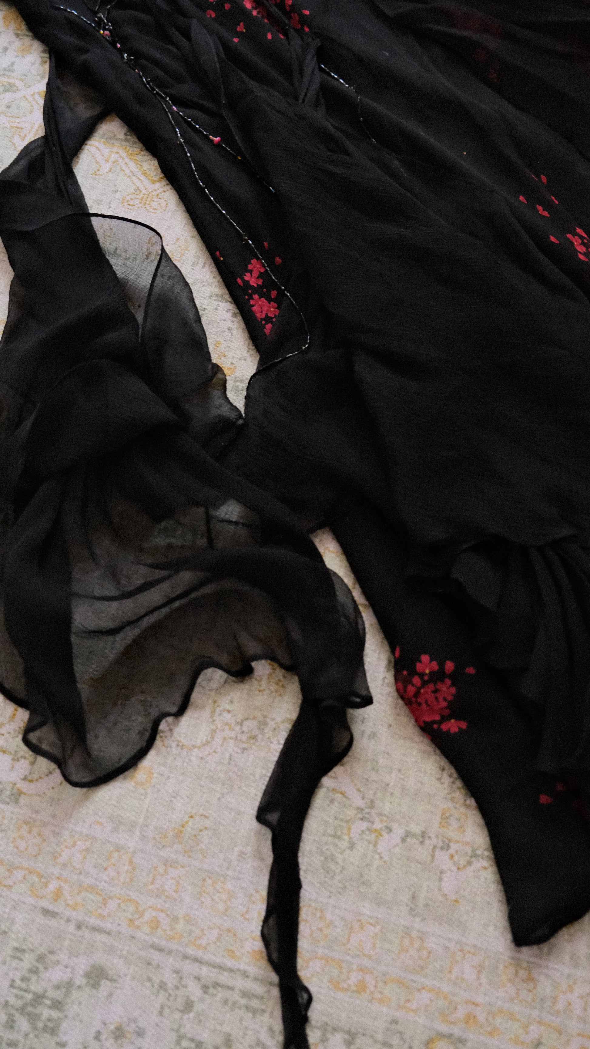 A rare and magical 3 piece evening set with embellished details and ruffles attached to the skirt.