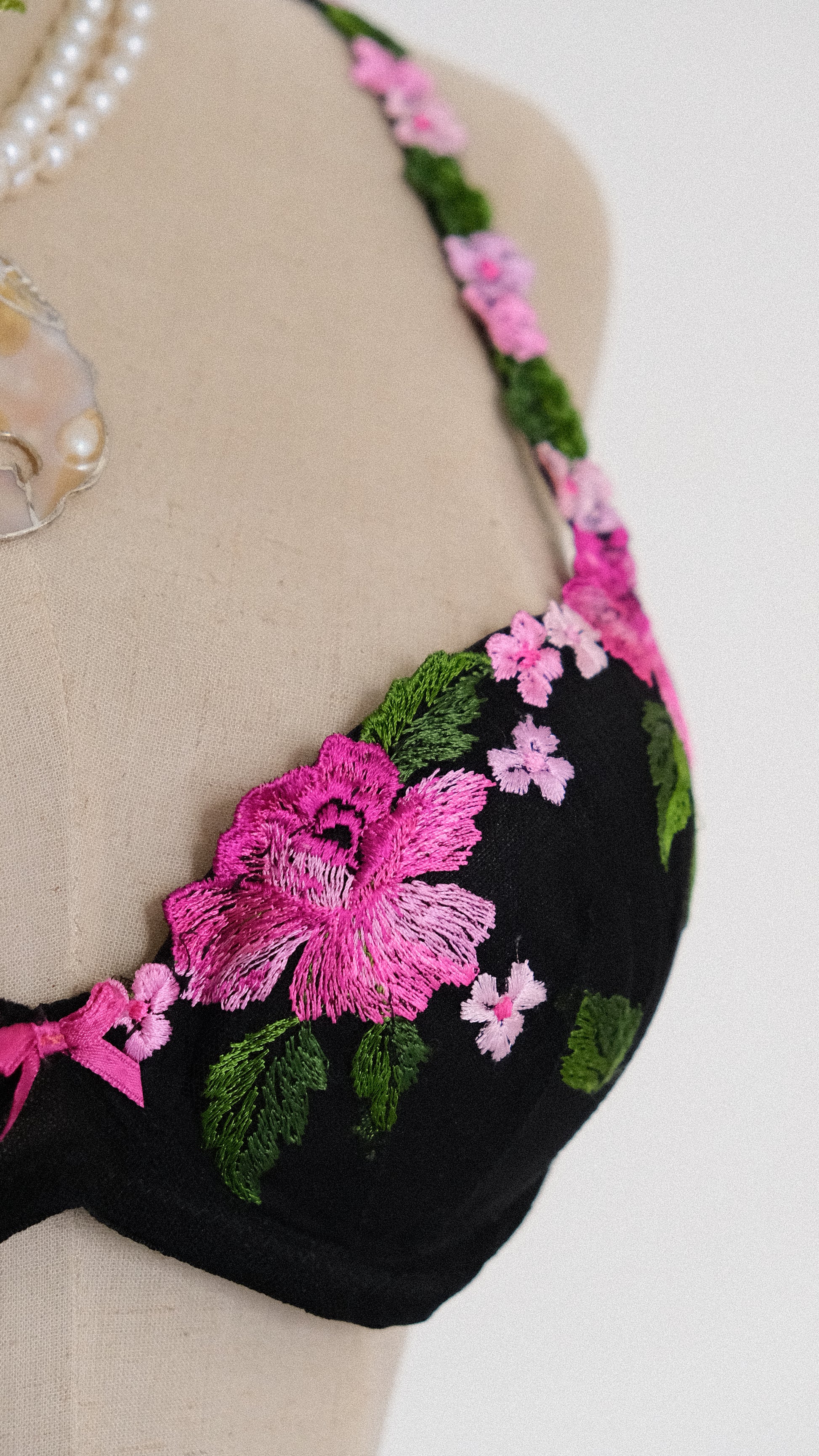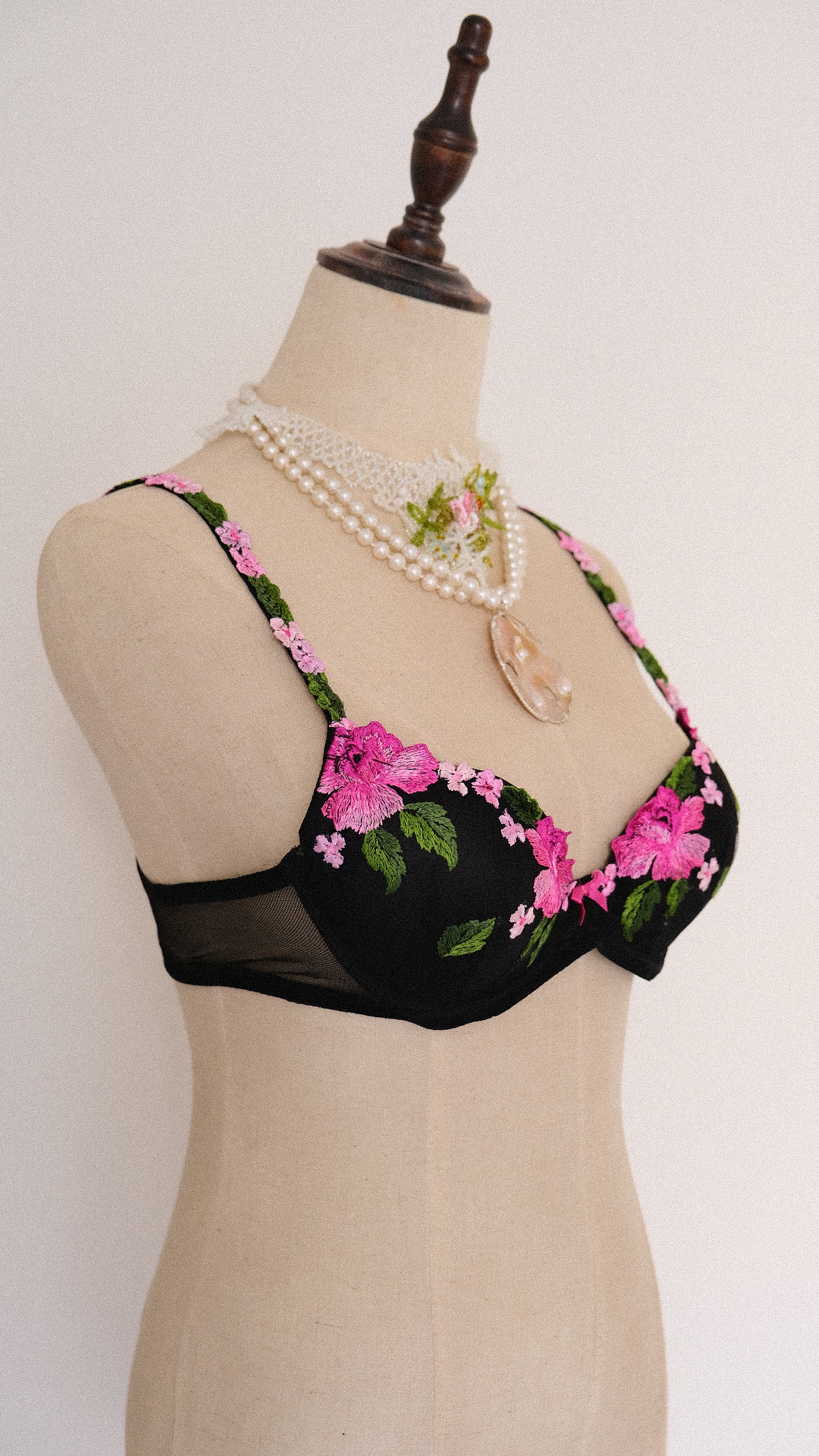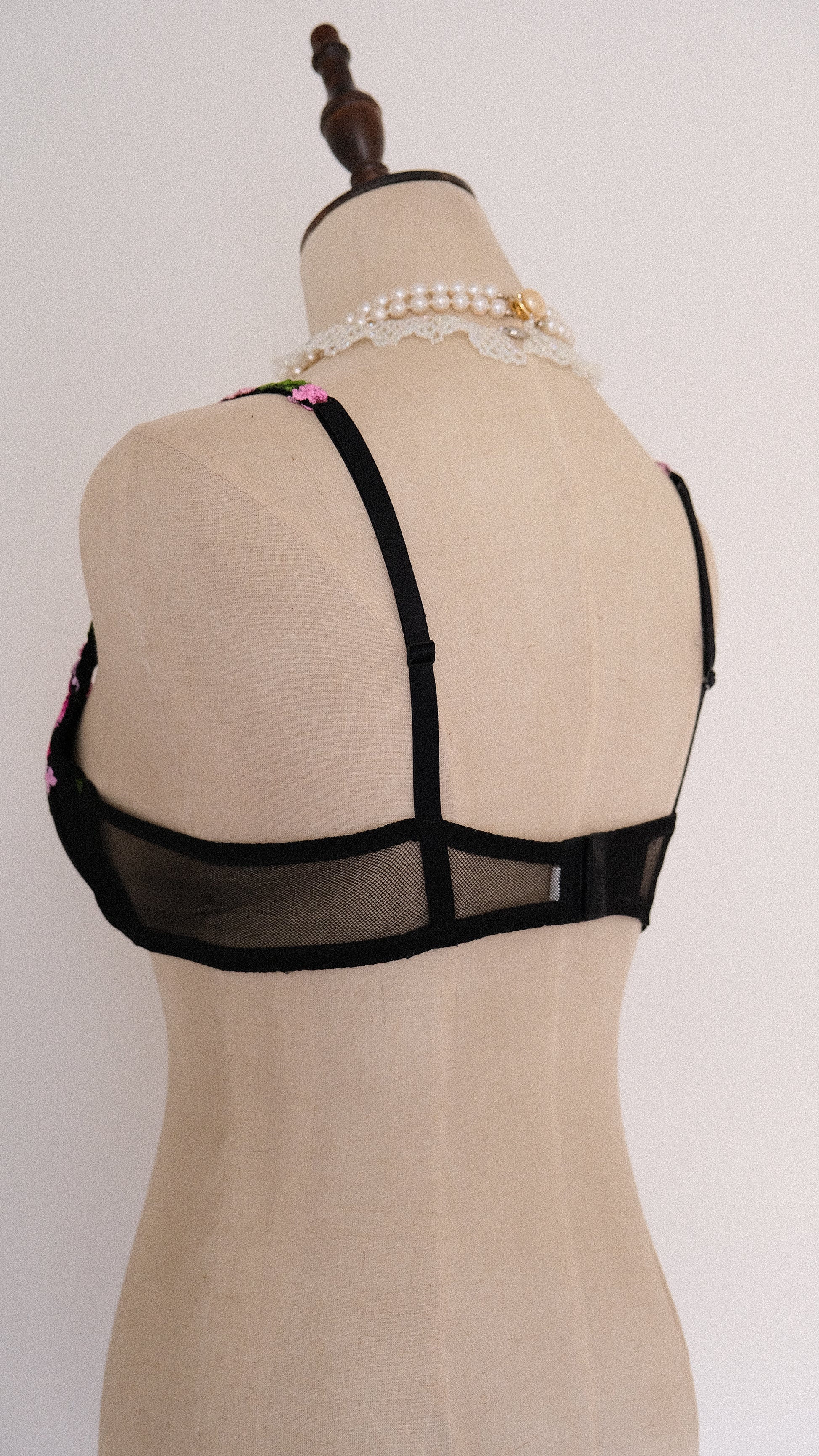 A dreamy and magical black bra with floral embroidery from a subbrand of La Perla.