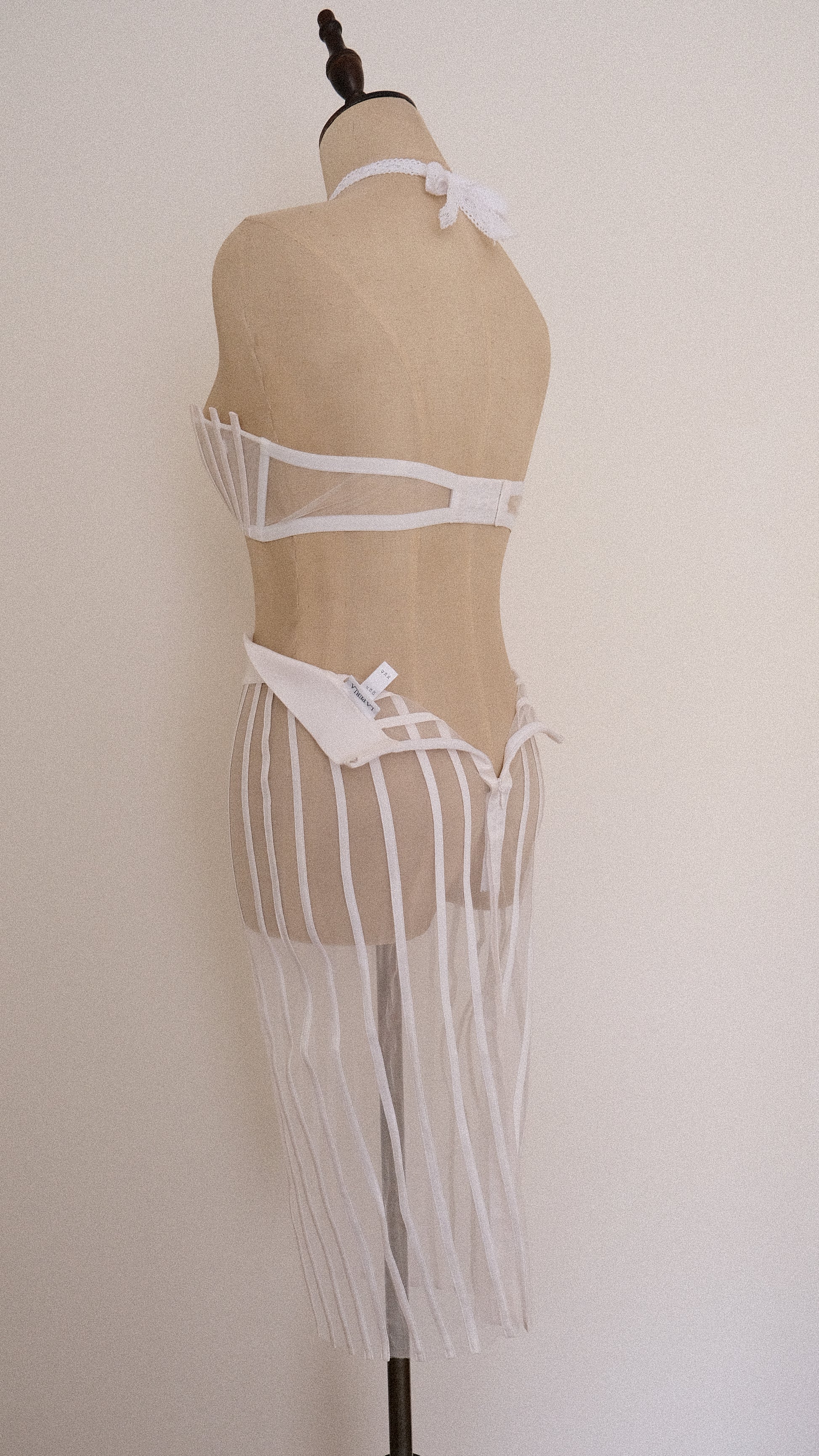 A rare vintage La Perla pencil skirt from the Graphique Collection in a white color.