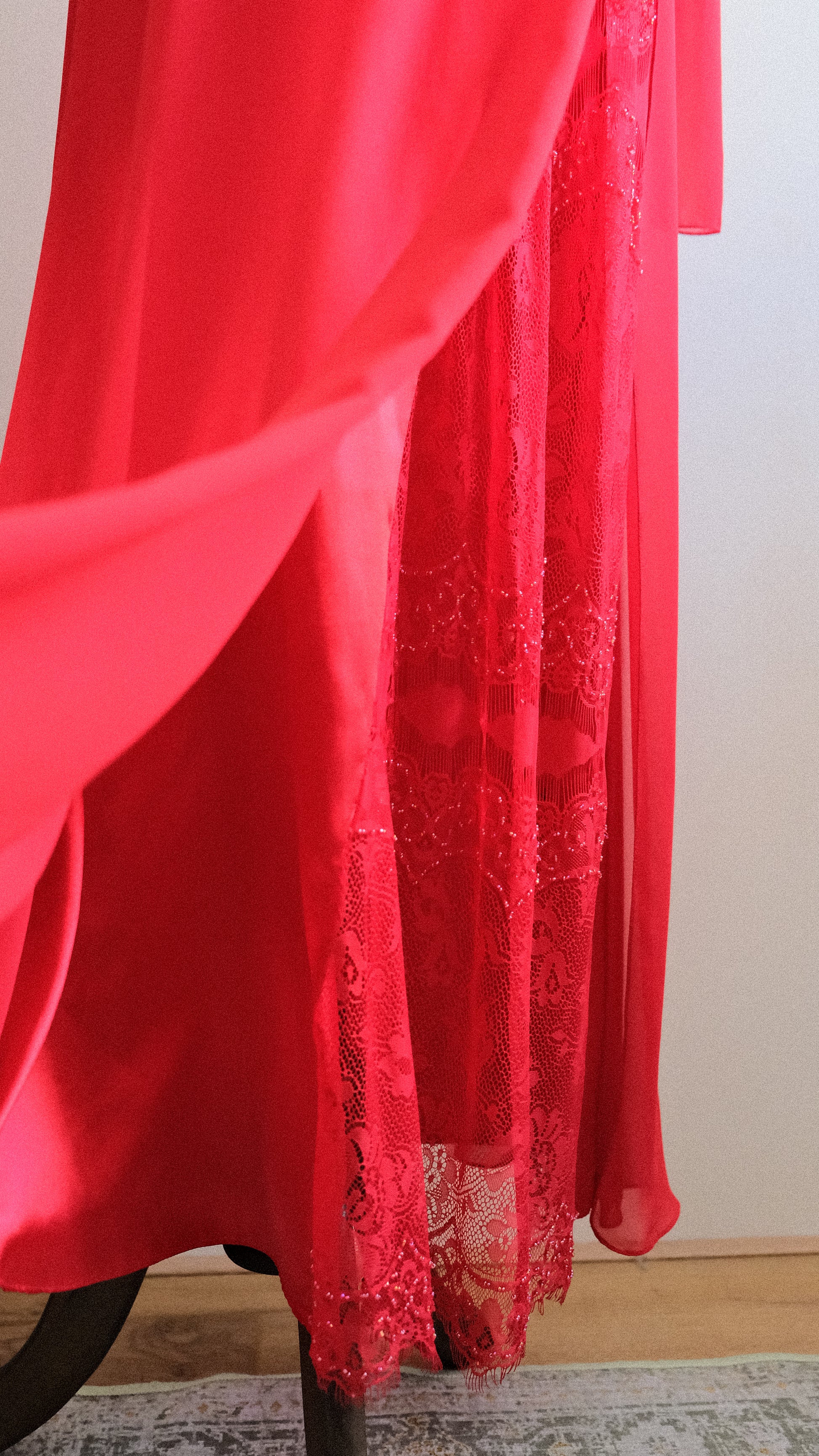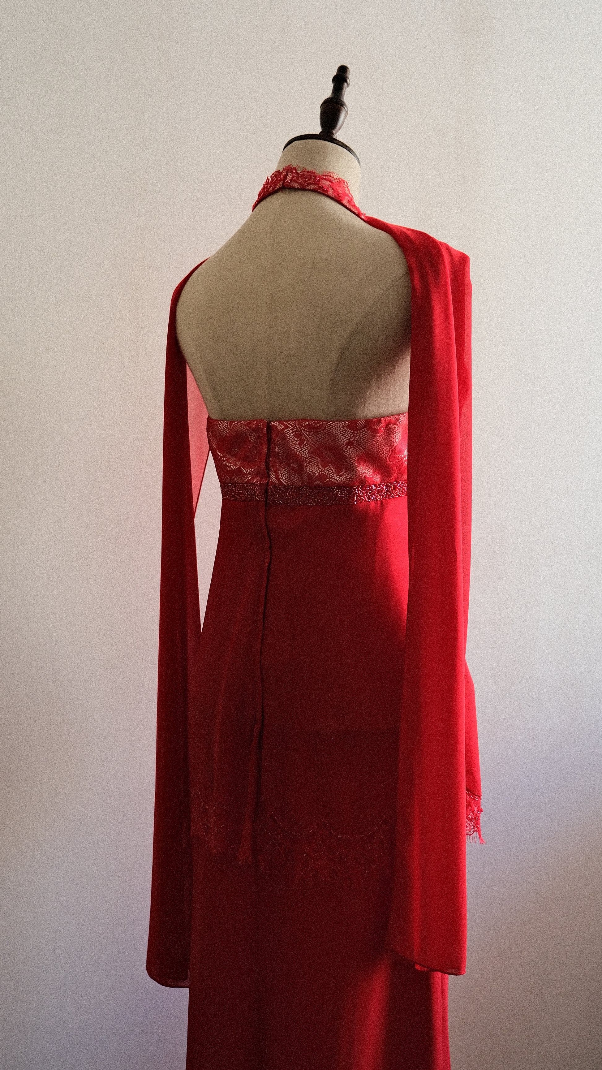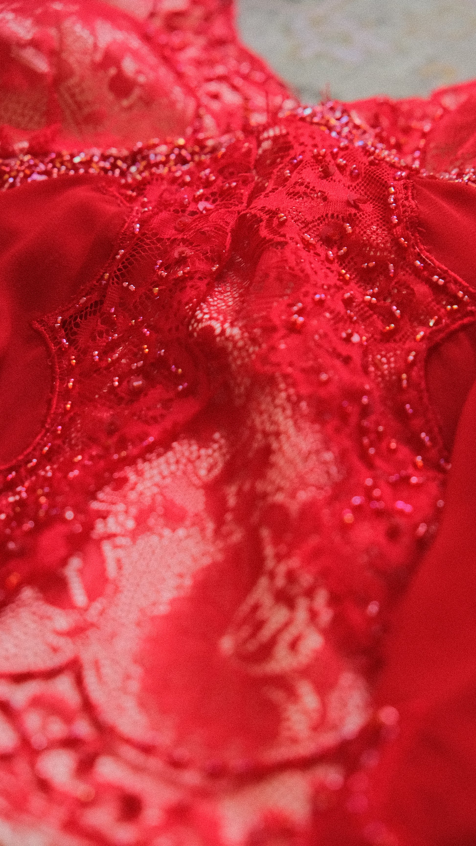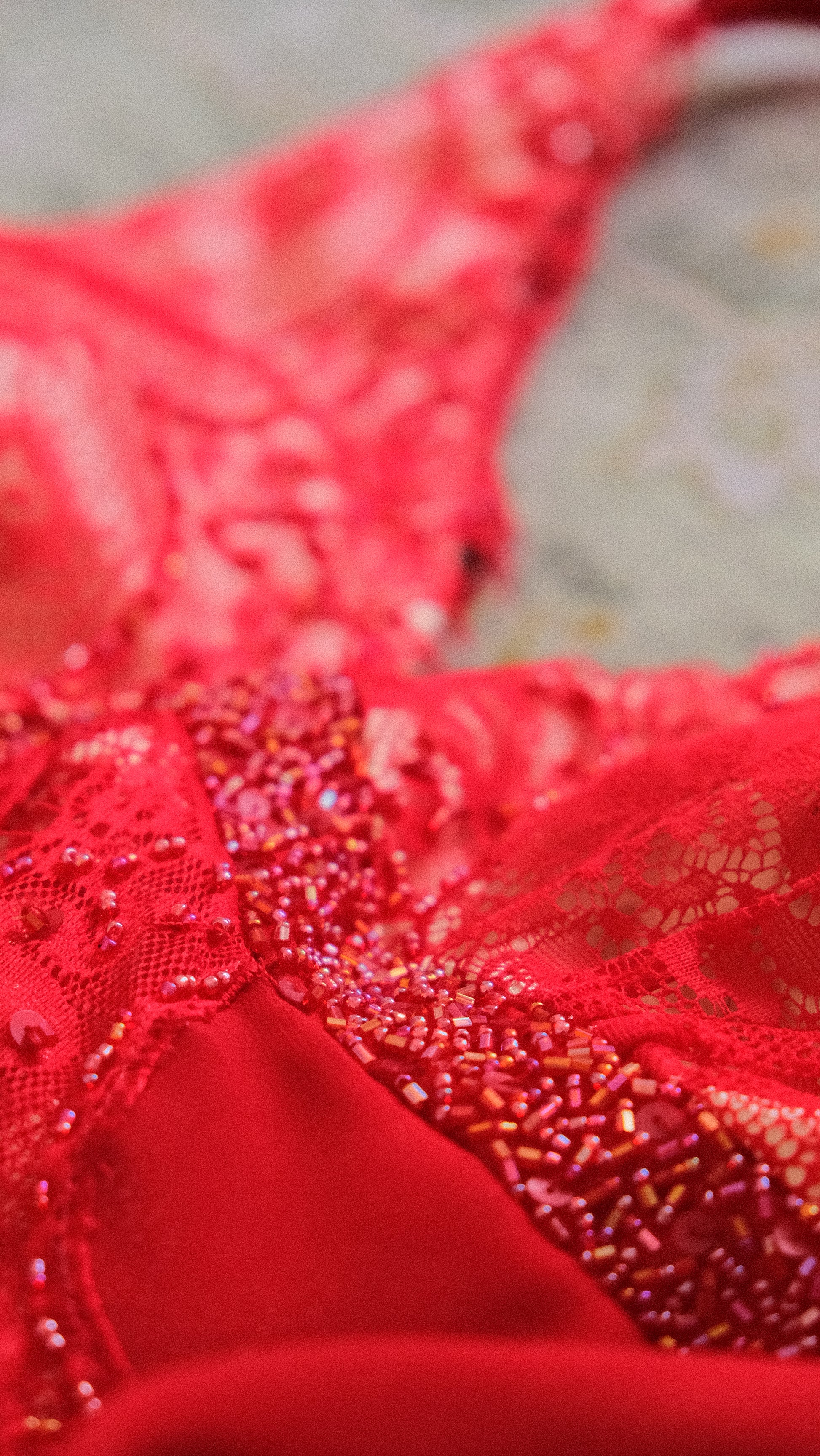 A vintage 3 piece set in a vibrant red color combined with embellished and lace detailing. On pics will be coming soon.