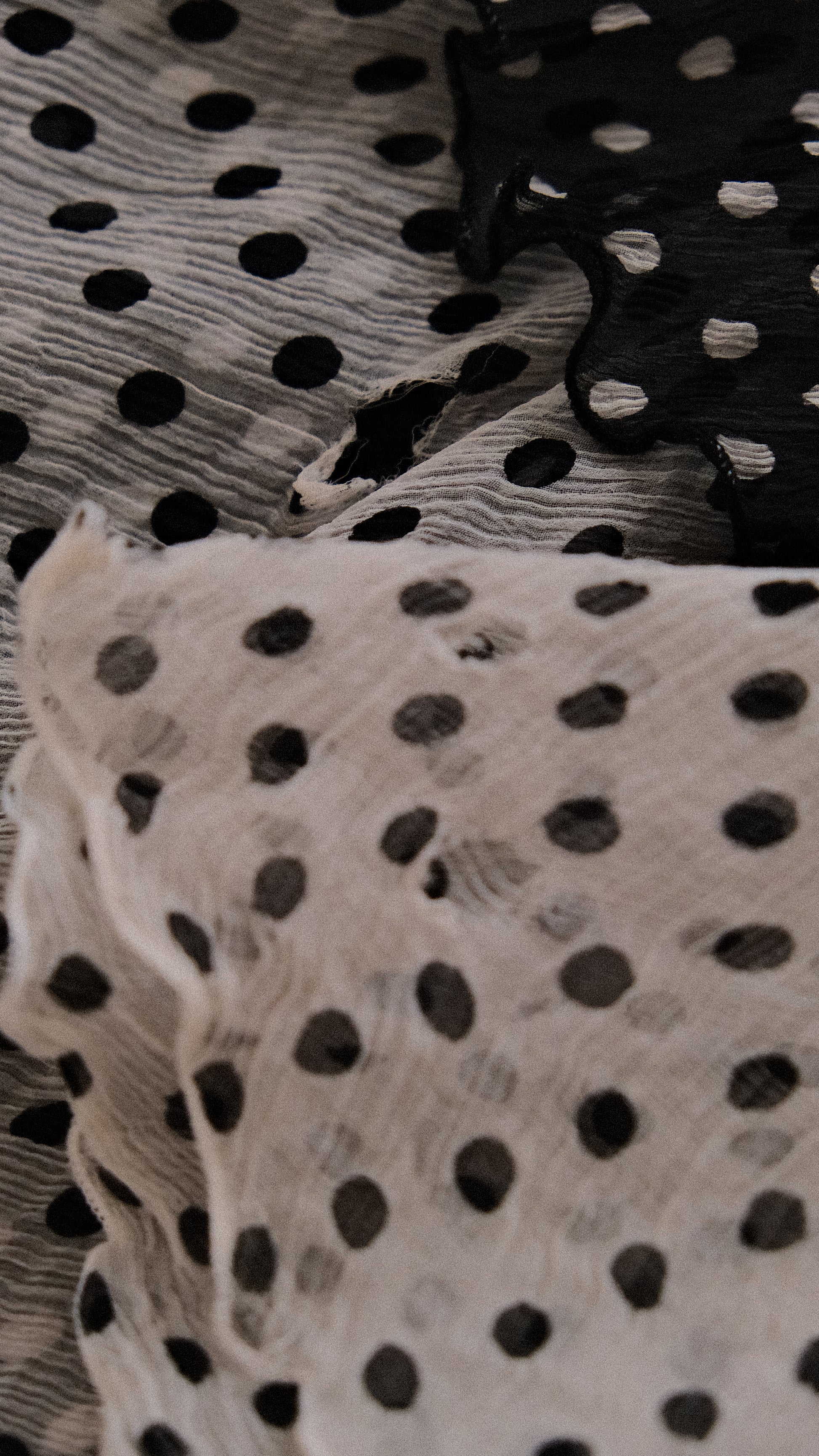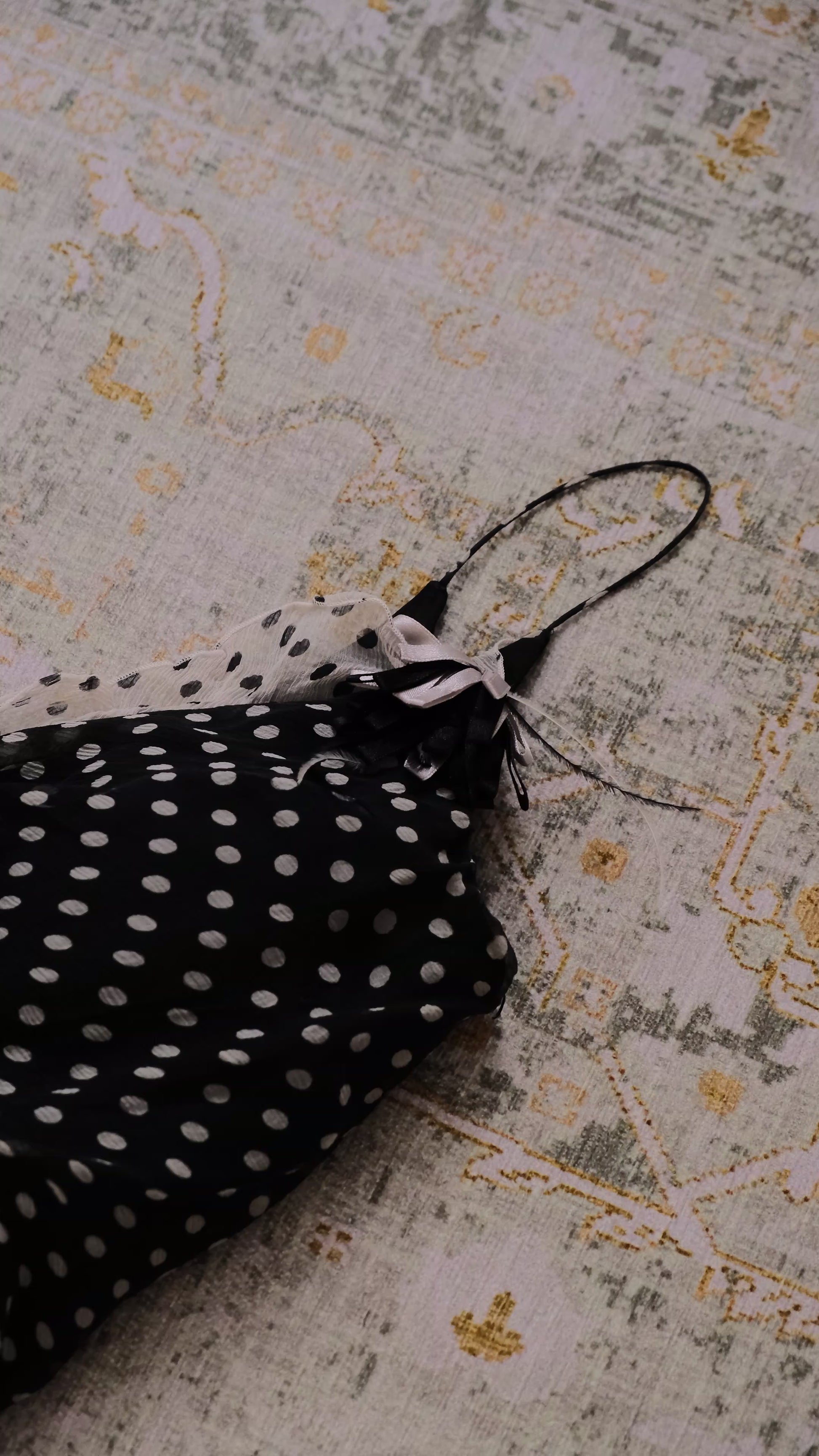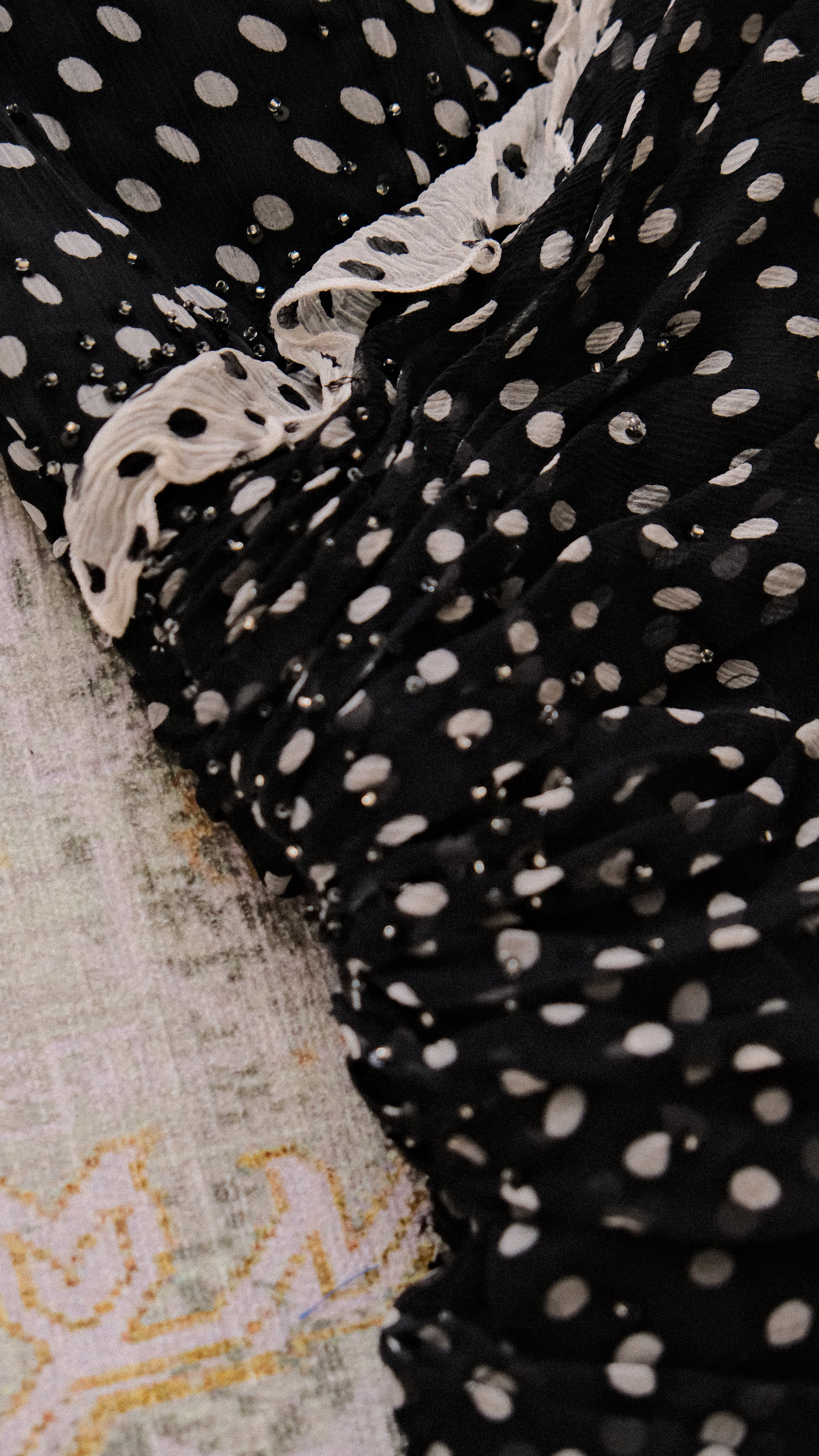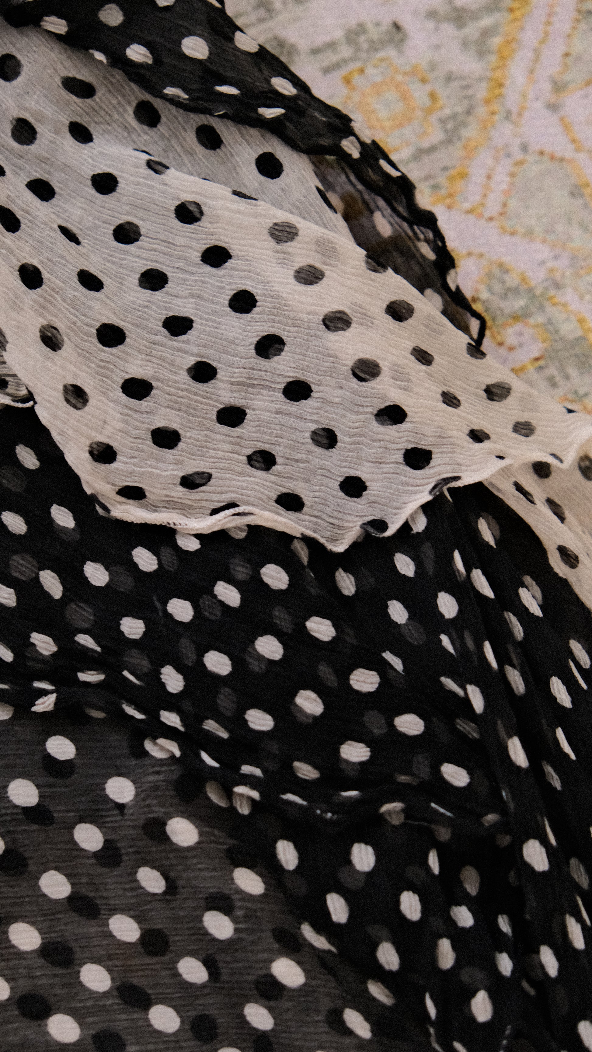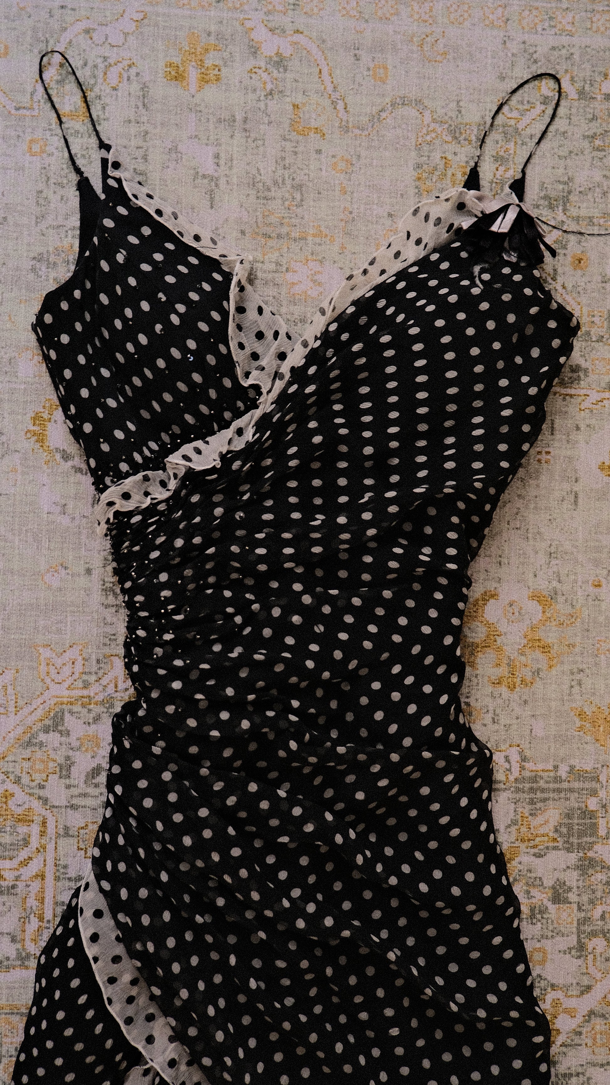 A rare layered fairytale dress covered in polka dot pattern. Has some embellishments around the waist.