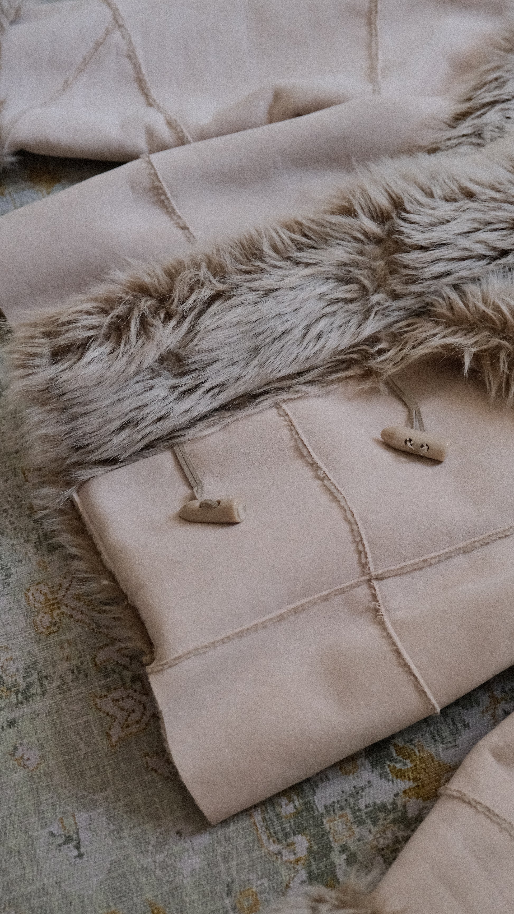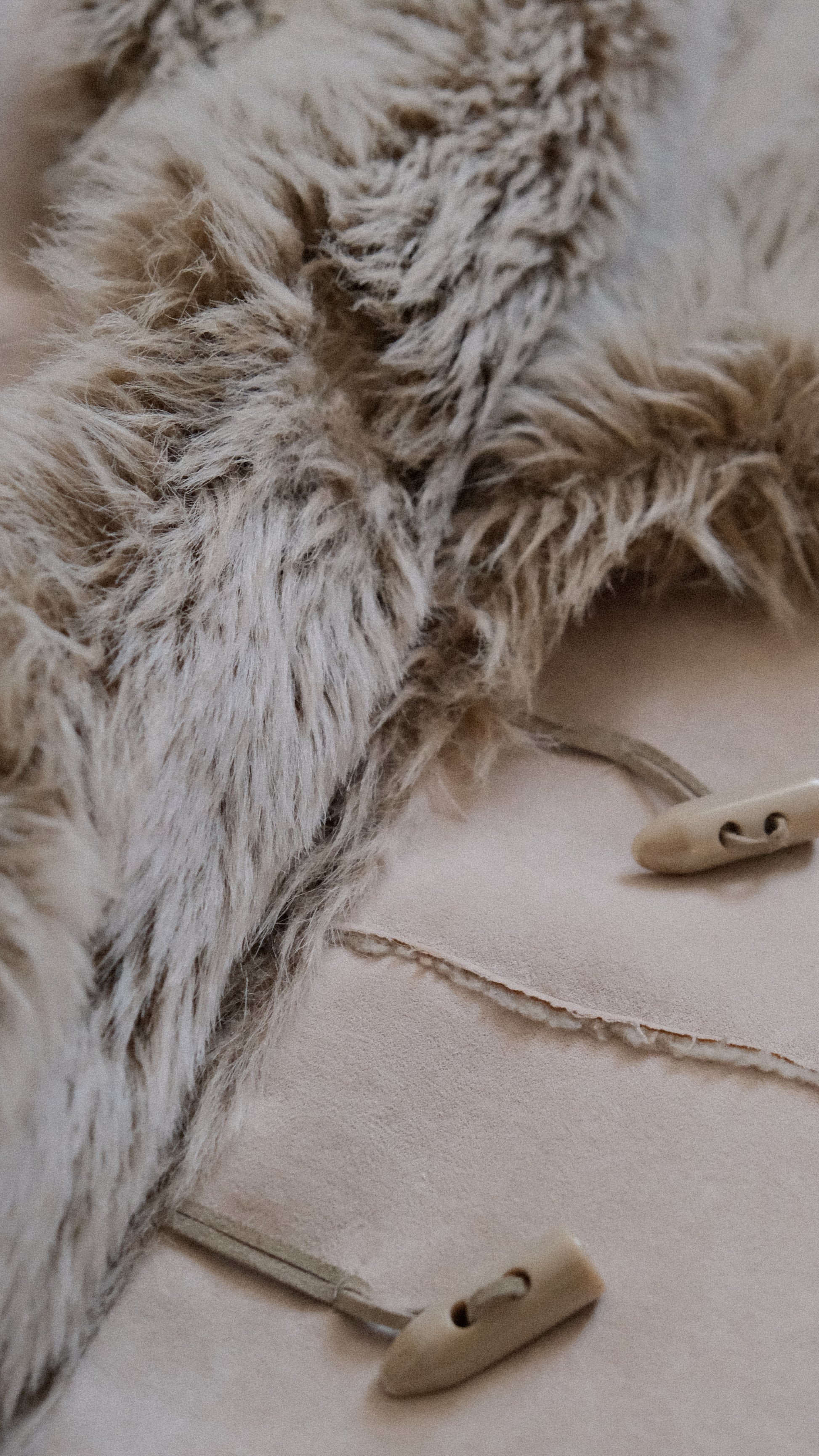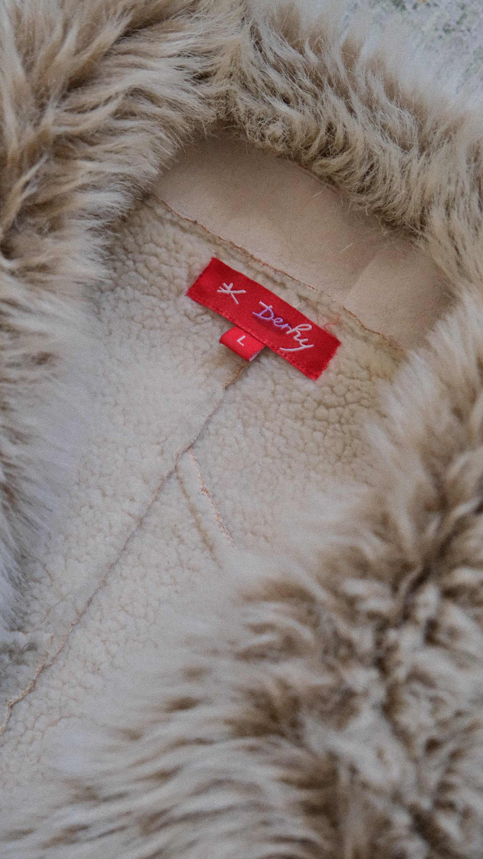 Vintage French, Rene Derhy, faux fur jacket in a creme color.