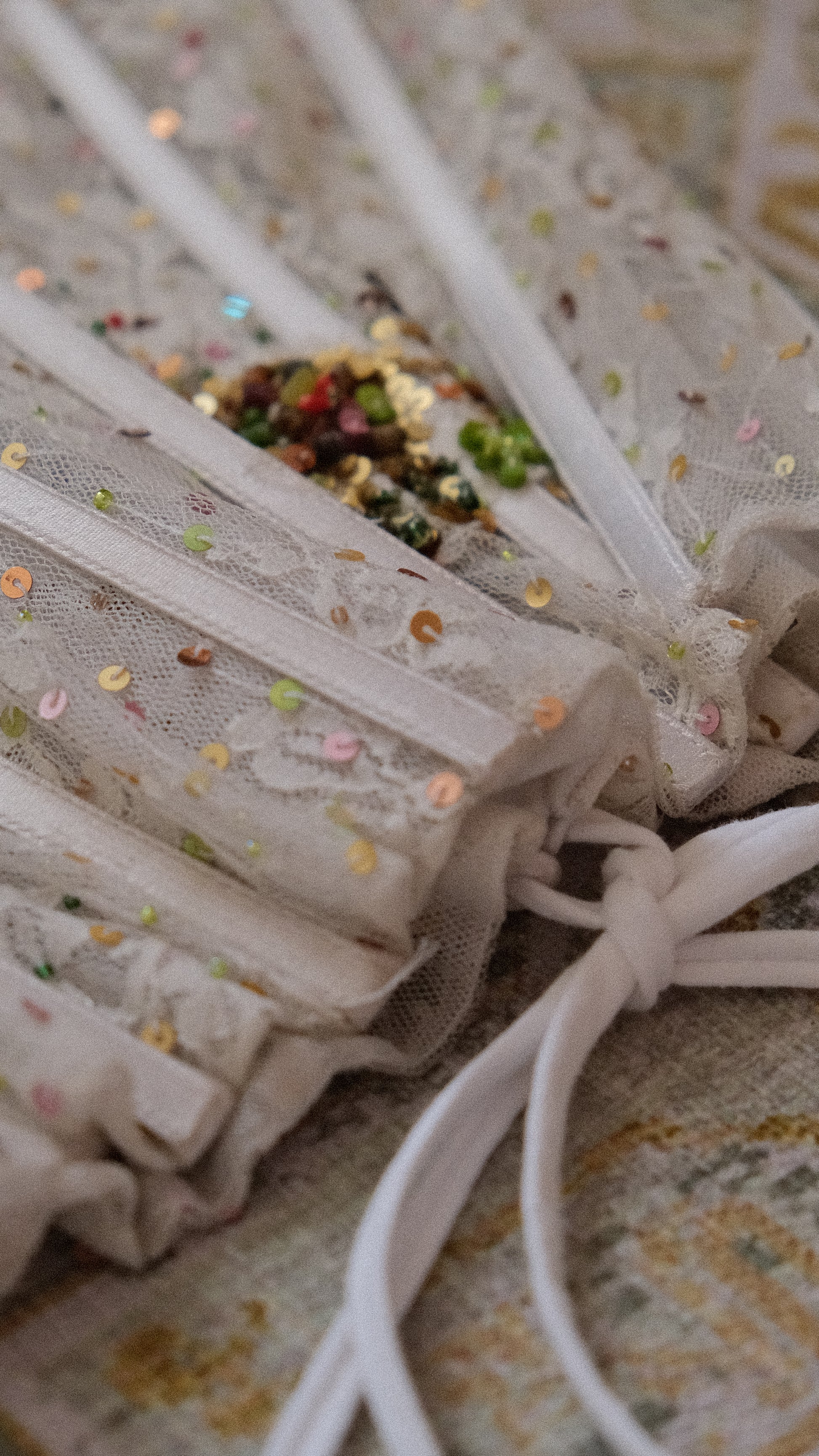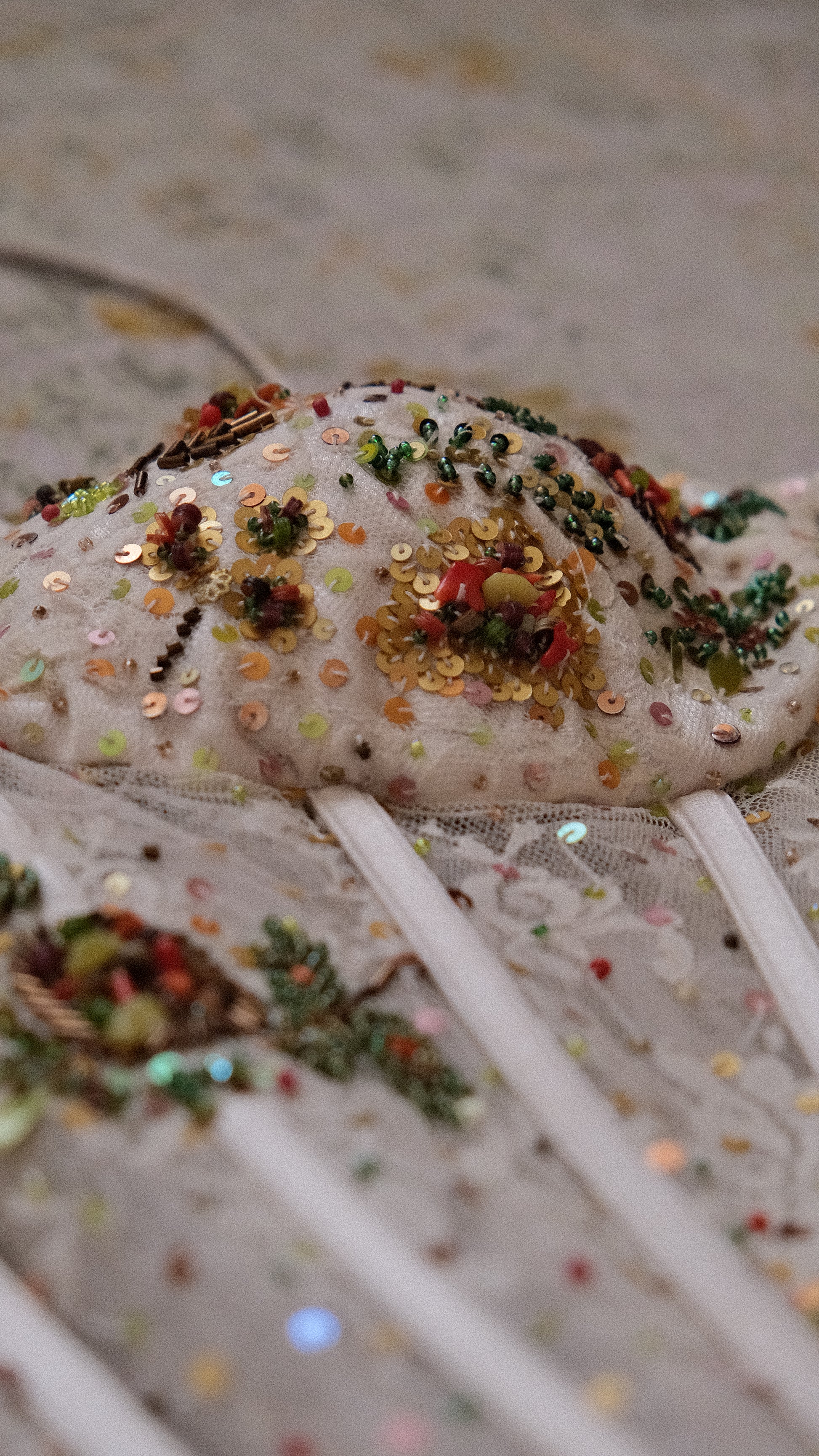 - If a product is embellished it may have small loose threads and/or small instances of missing sequins that are only visible upon very close inspection.