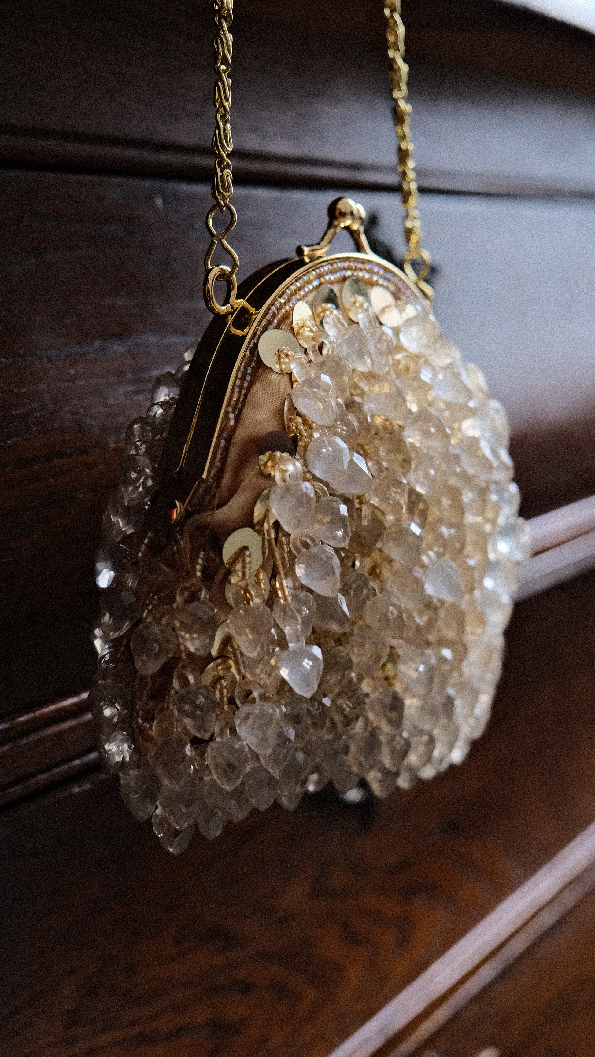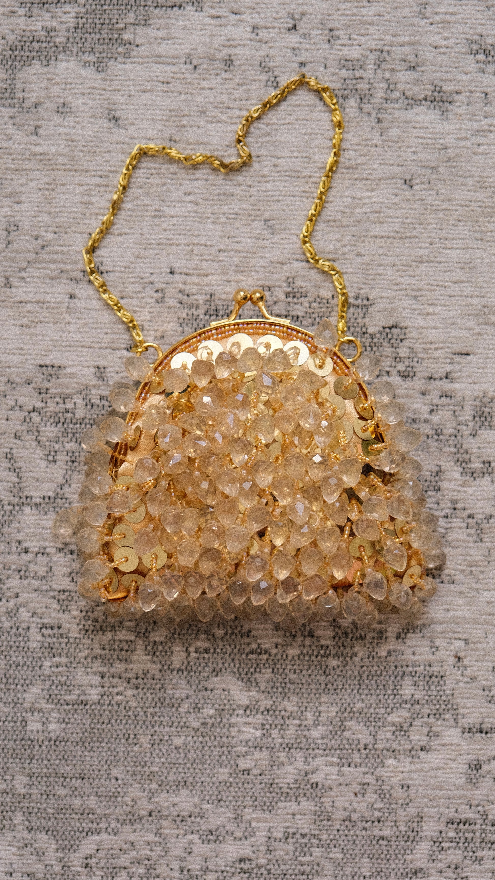 A clutch with a soft glow of a sunset, captured bead by bead.