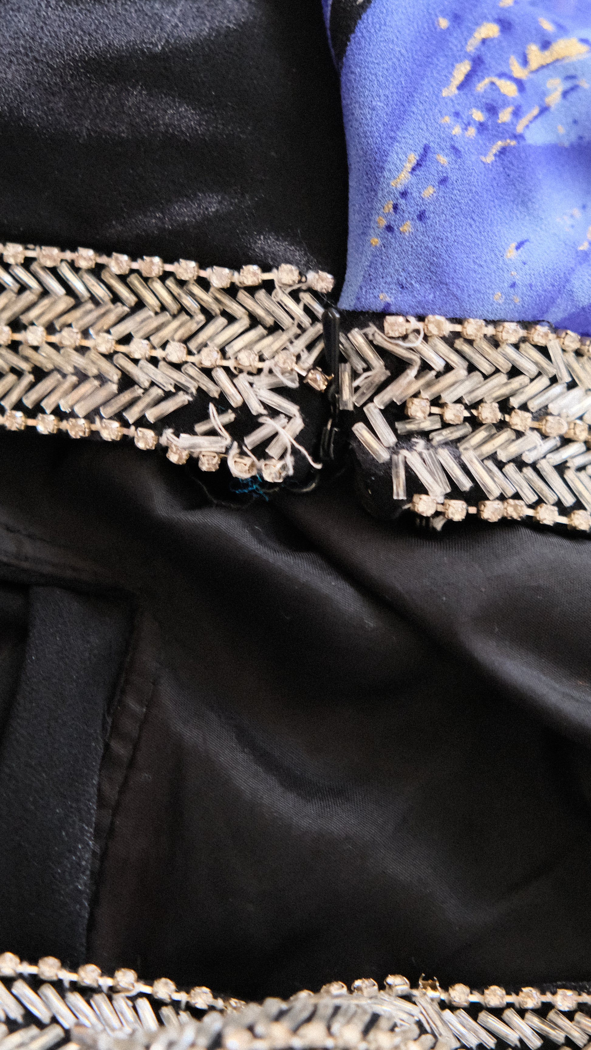 Flaw: the inner dress is unhemmed and there are missing beads at the zipper area. See pictures.