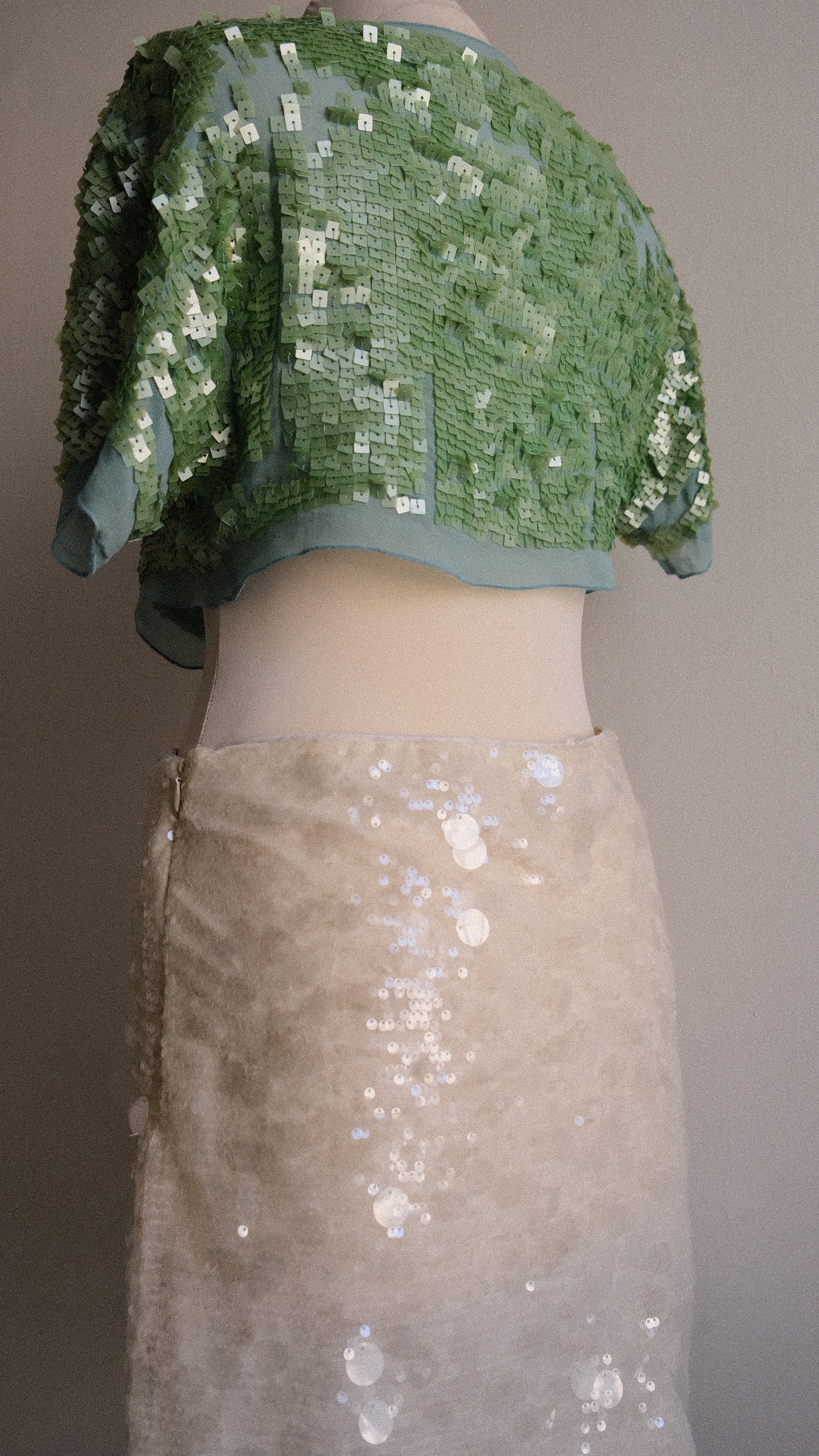 This cropped cardigan drapes you in wild sparkles and magic.