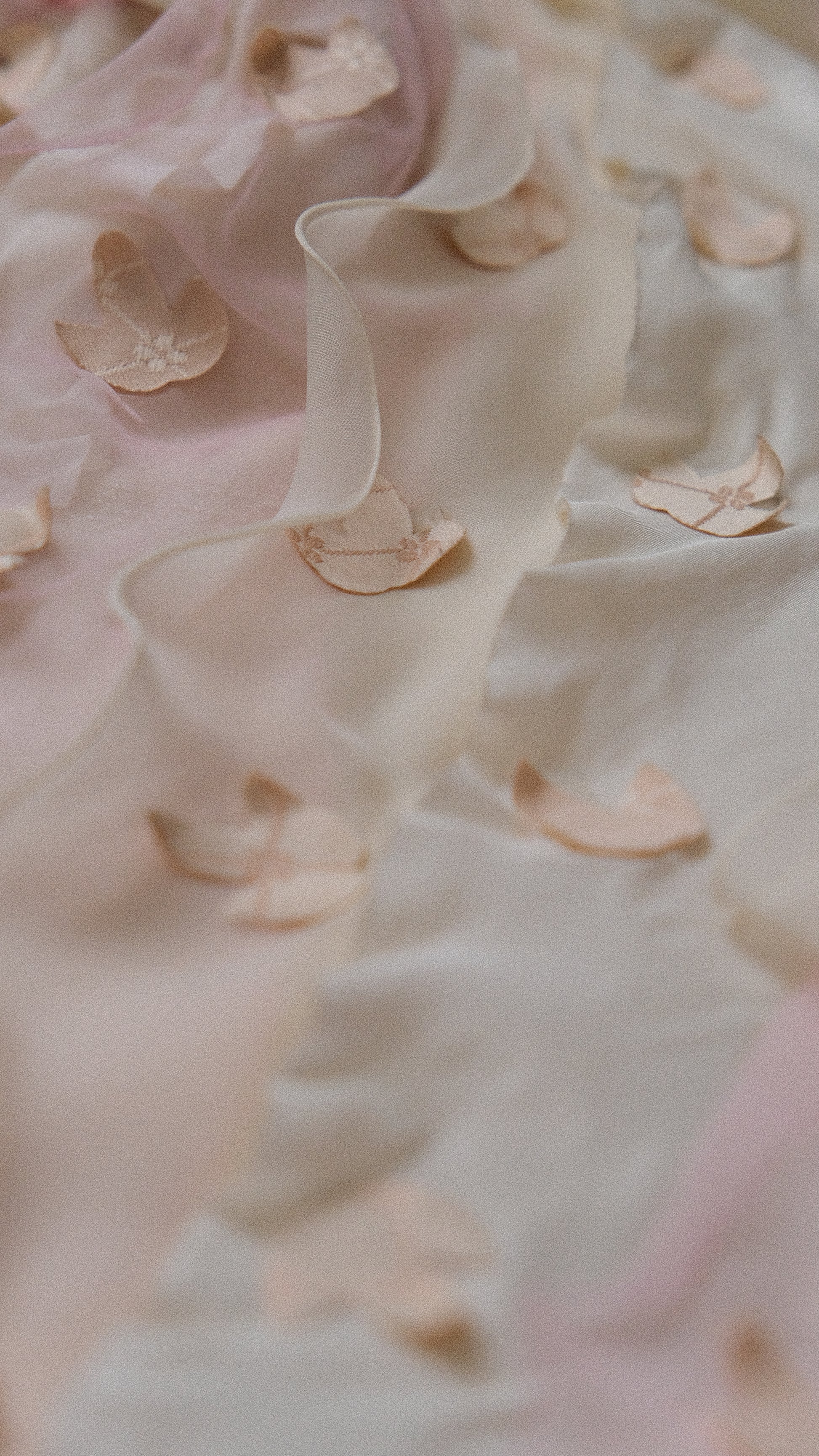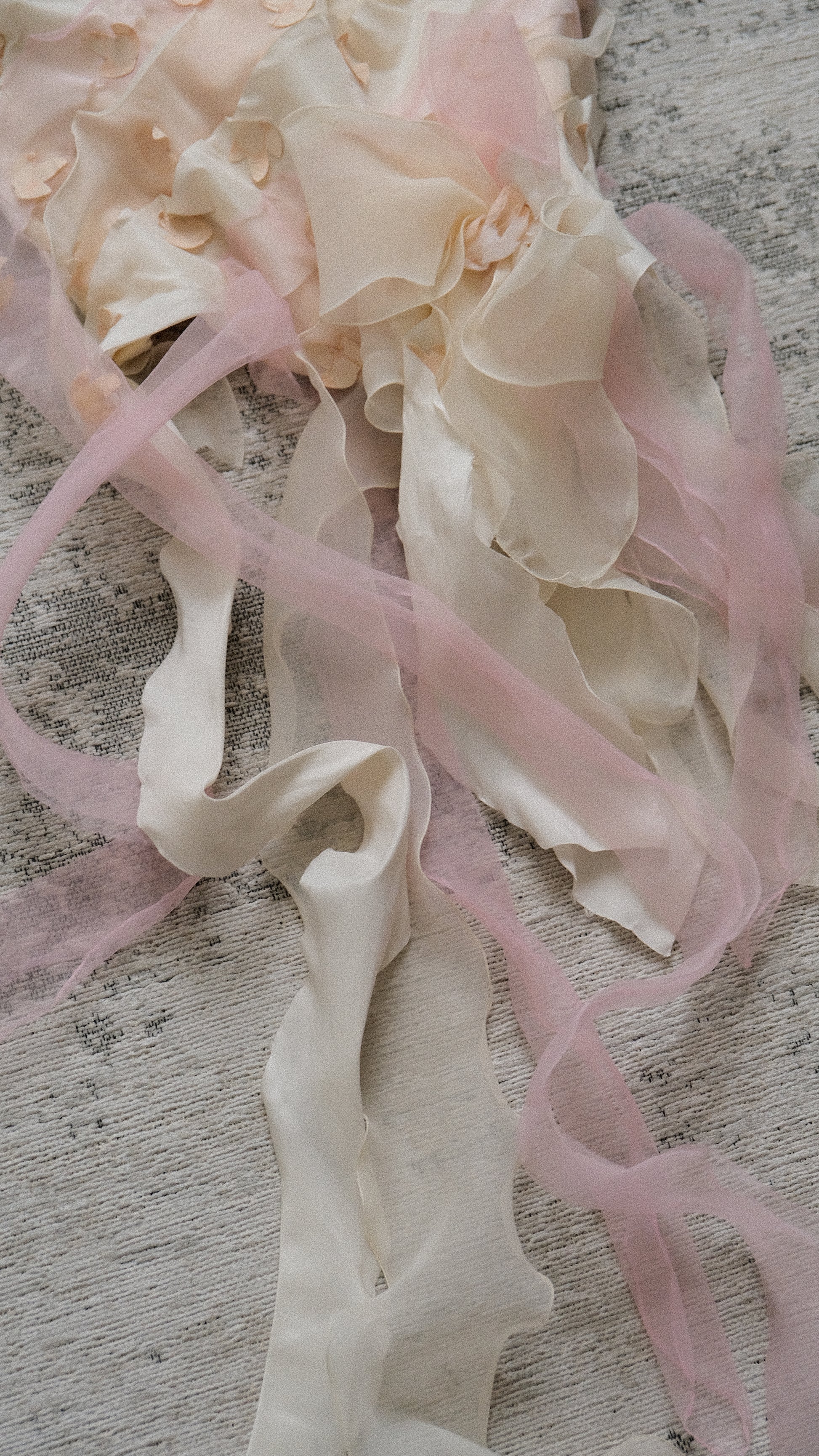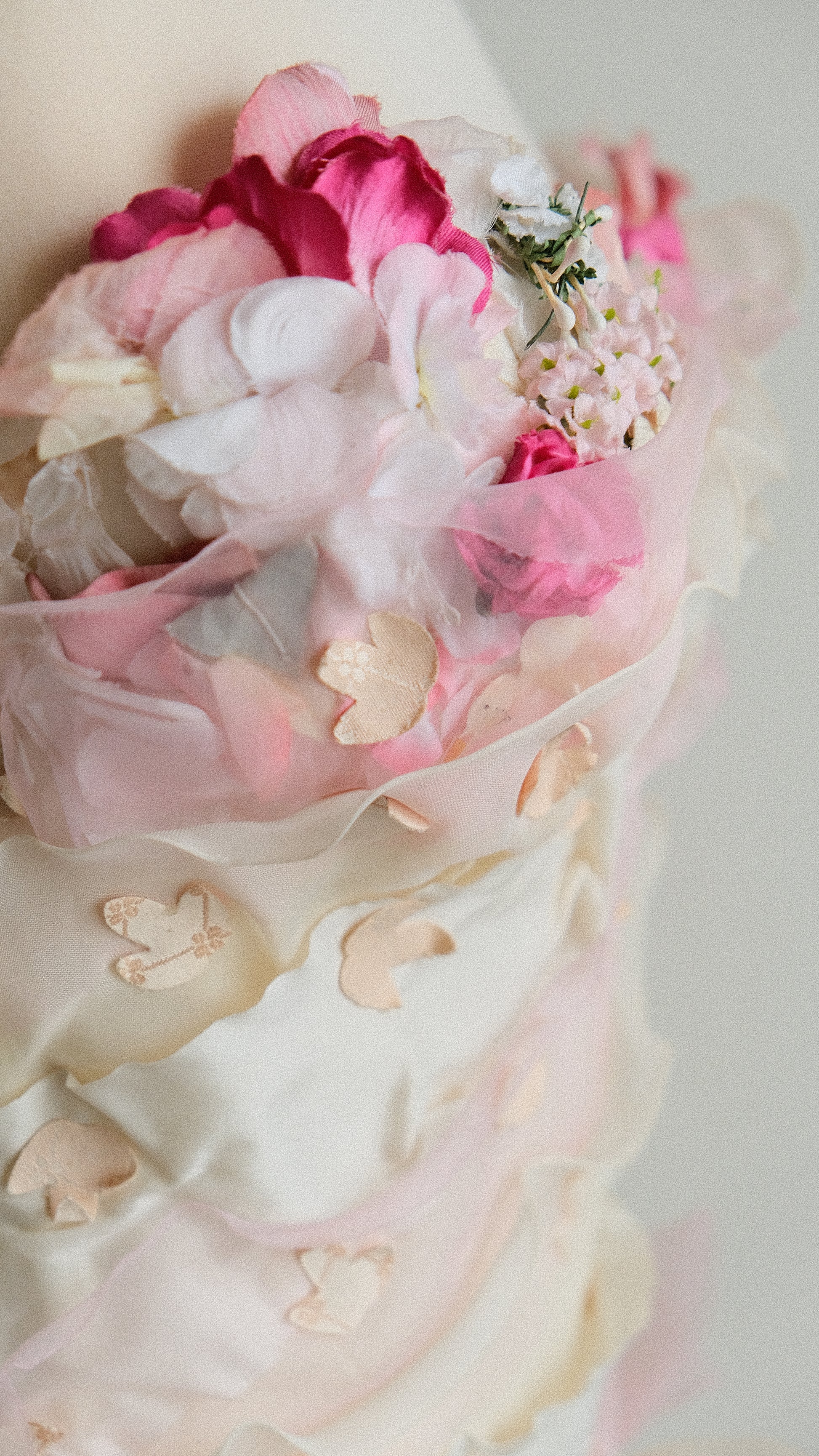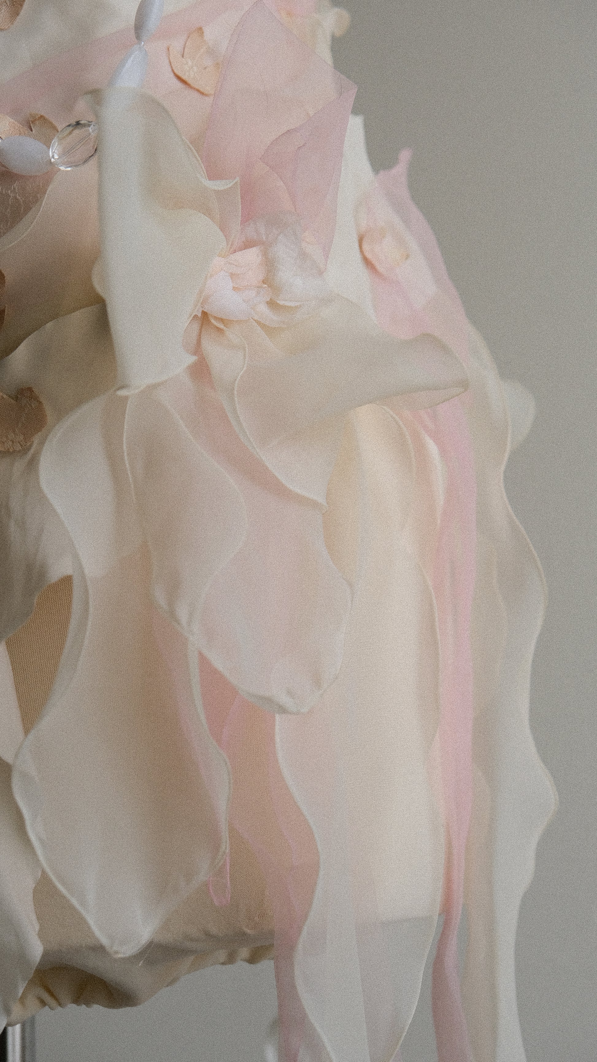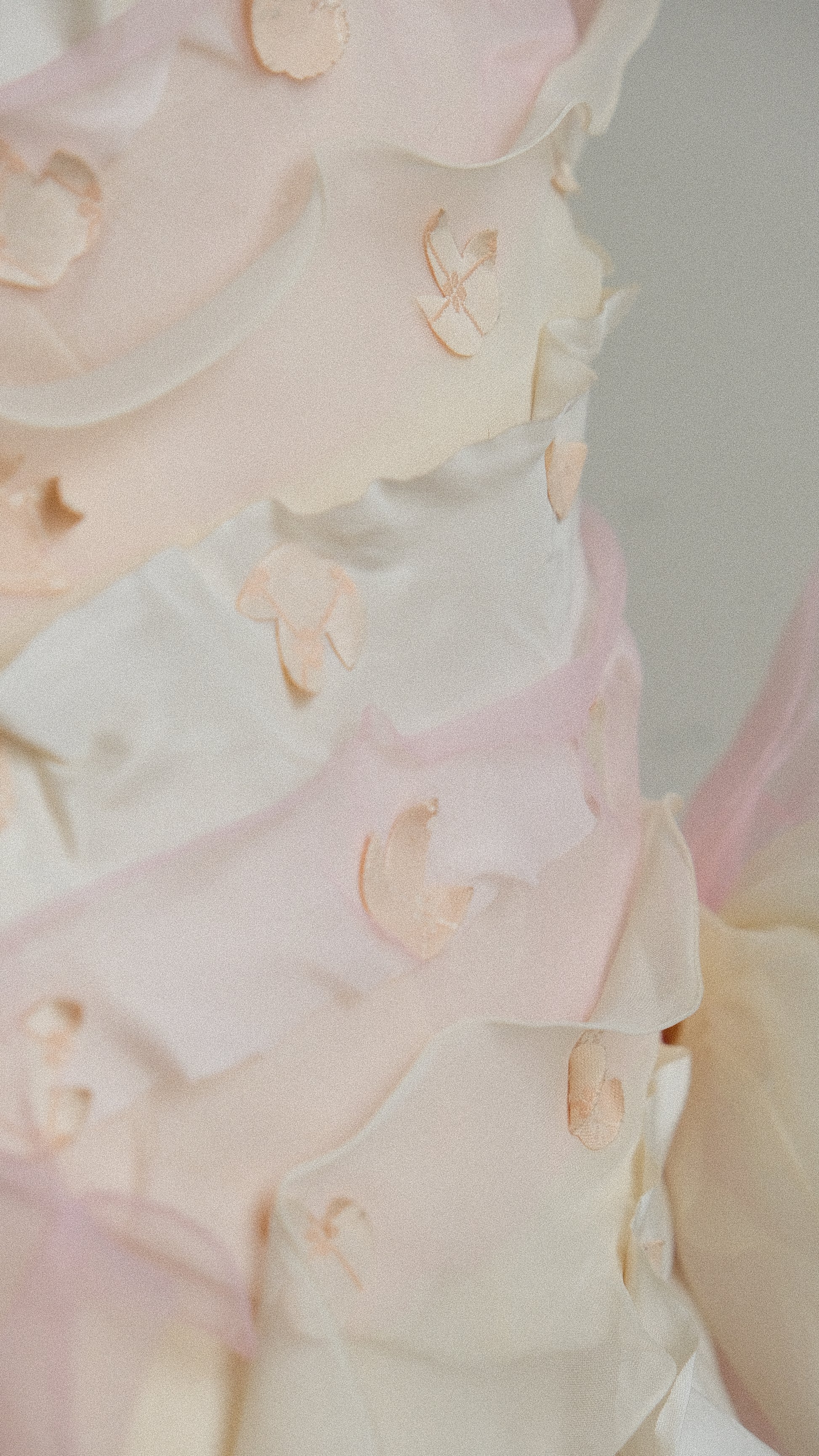A garment cascading with layers of cream and rose, made for fairytale moment.