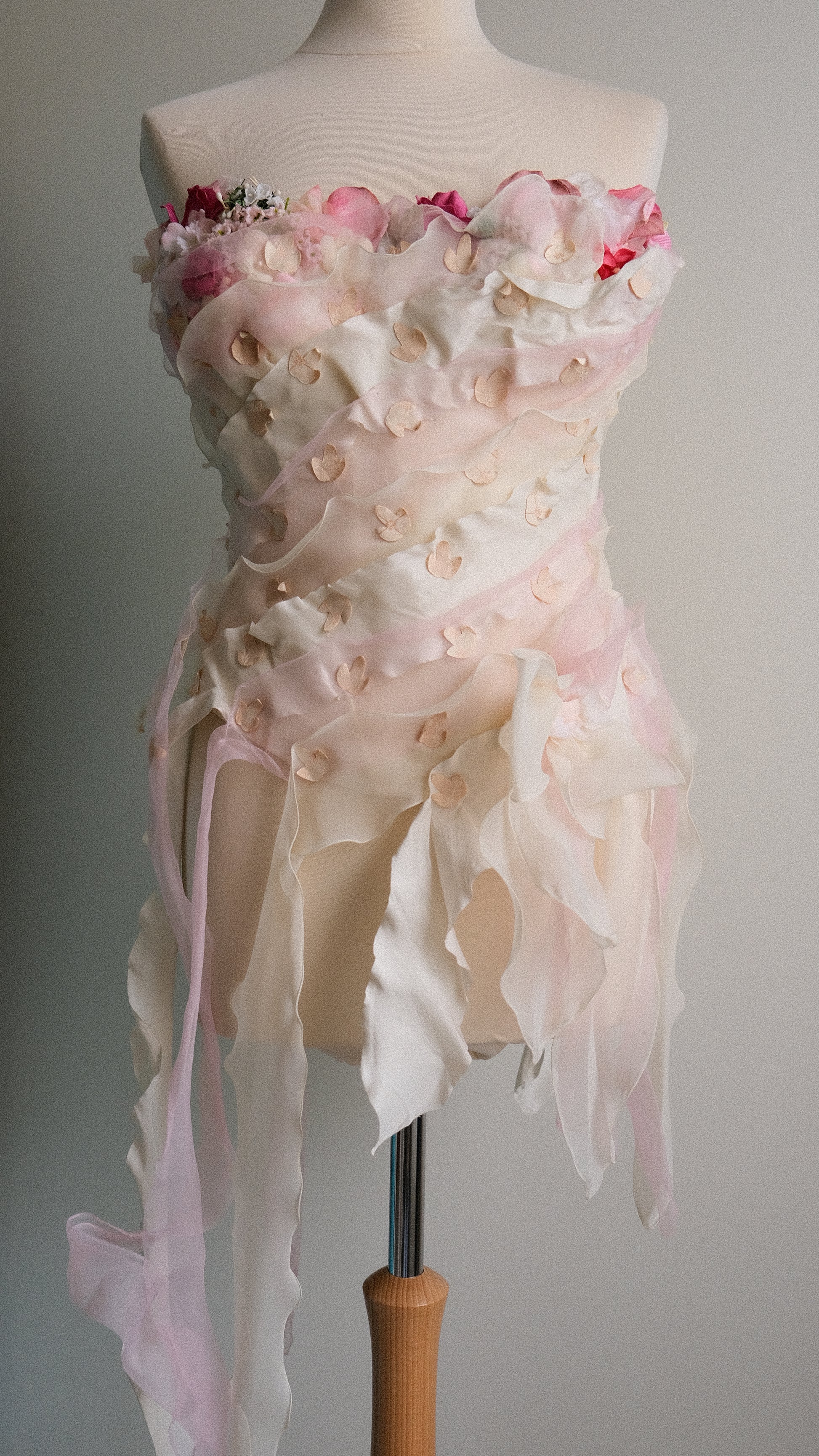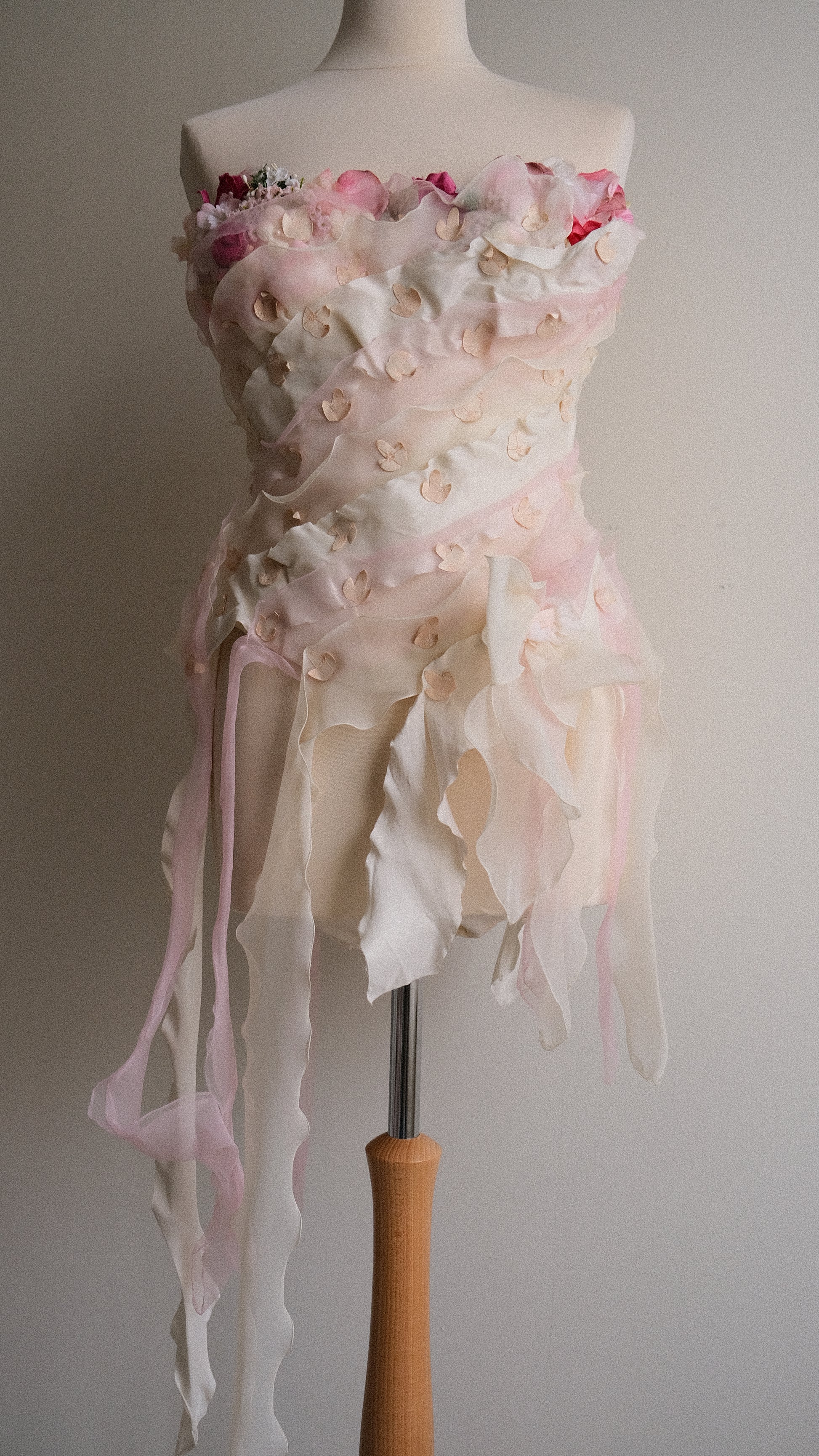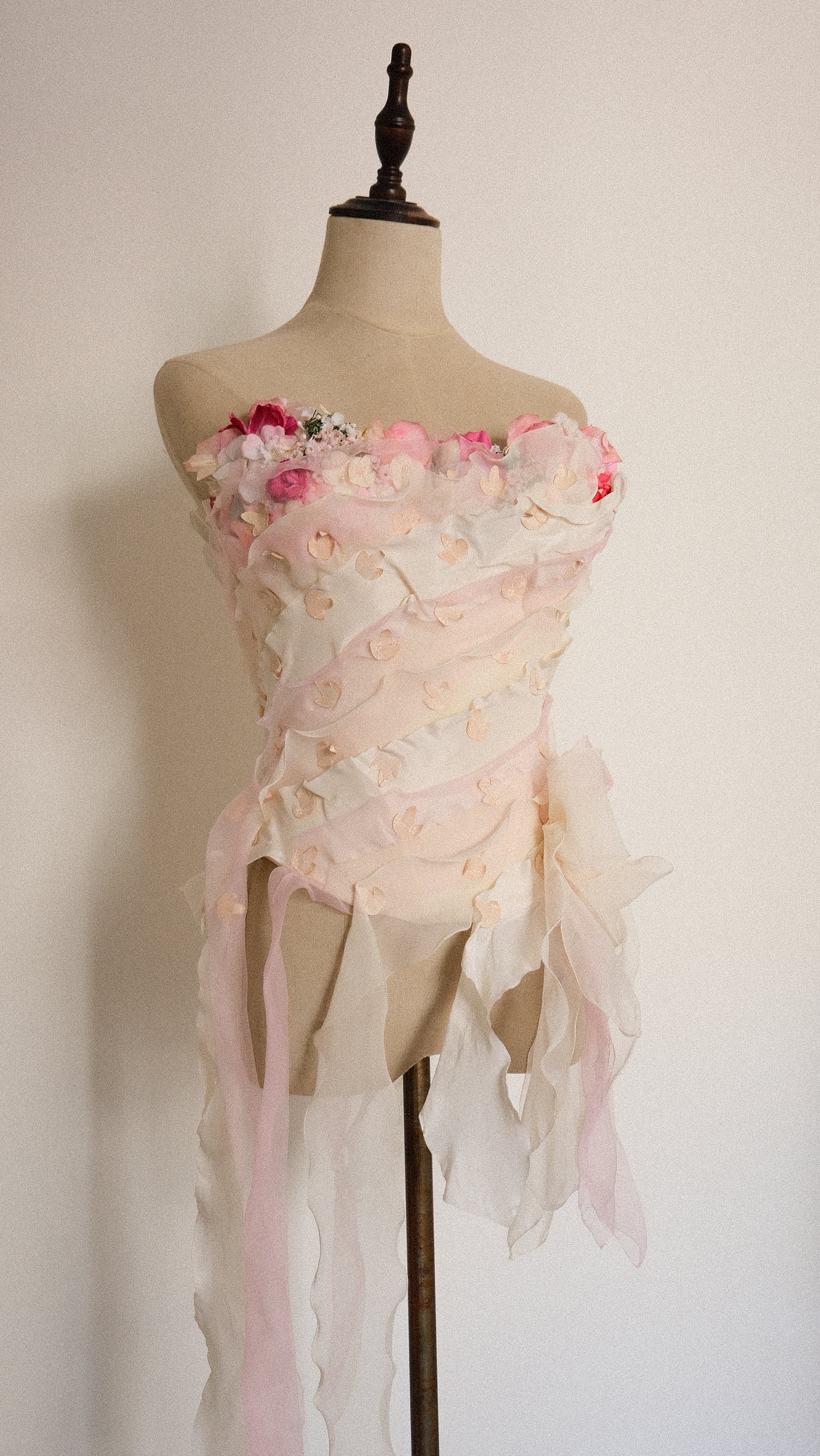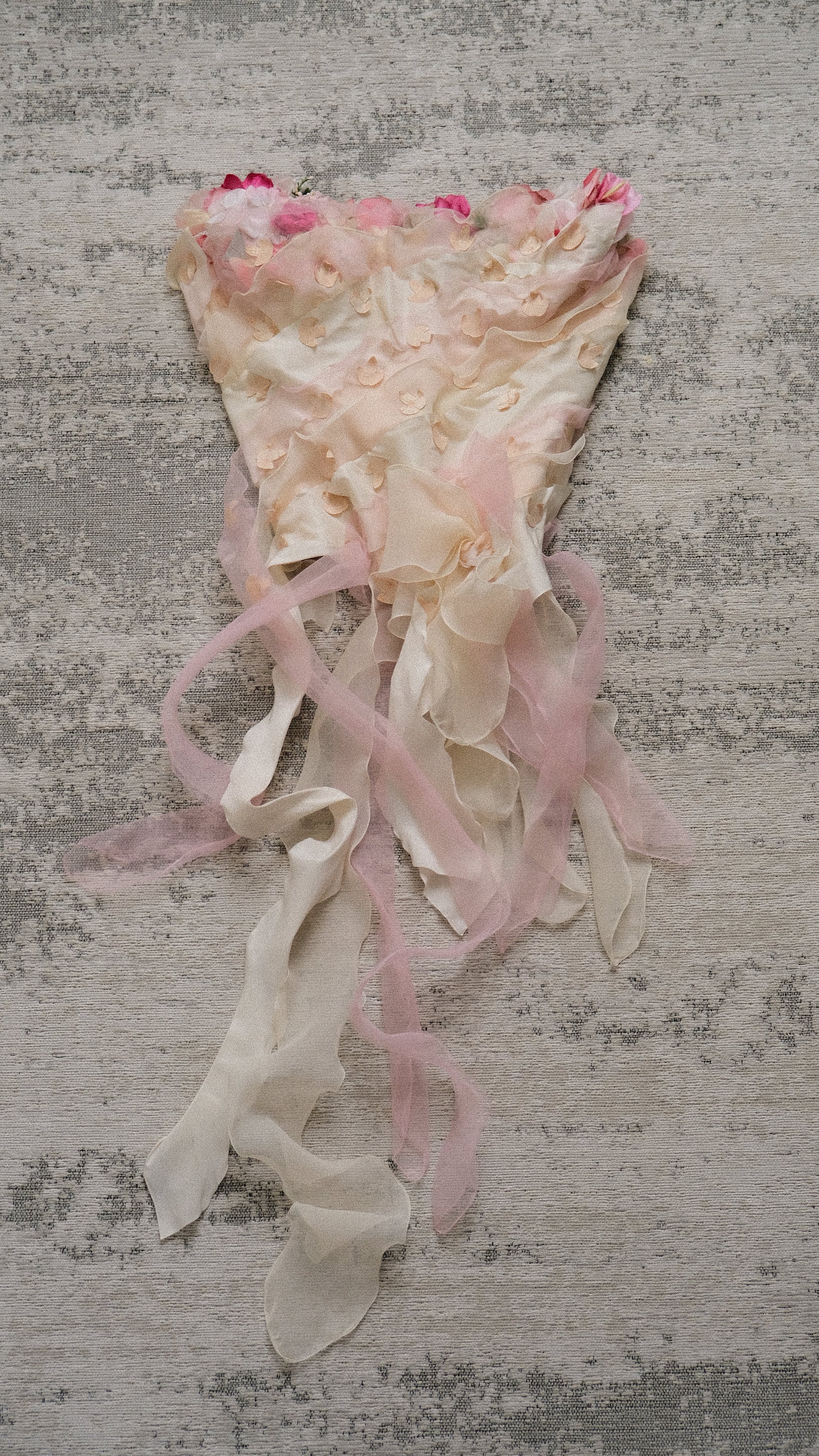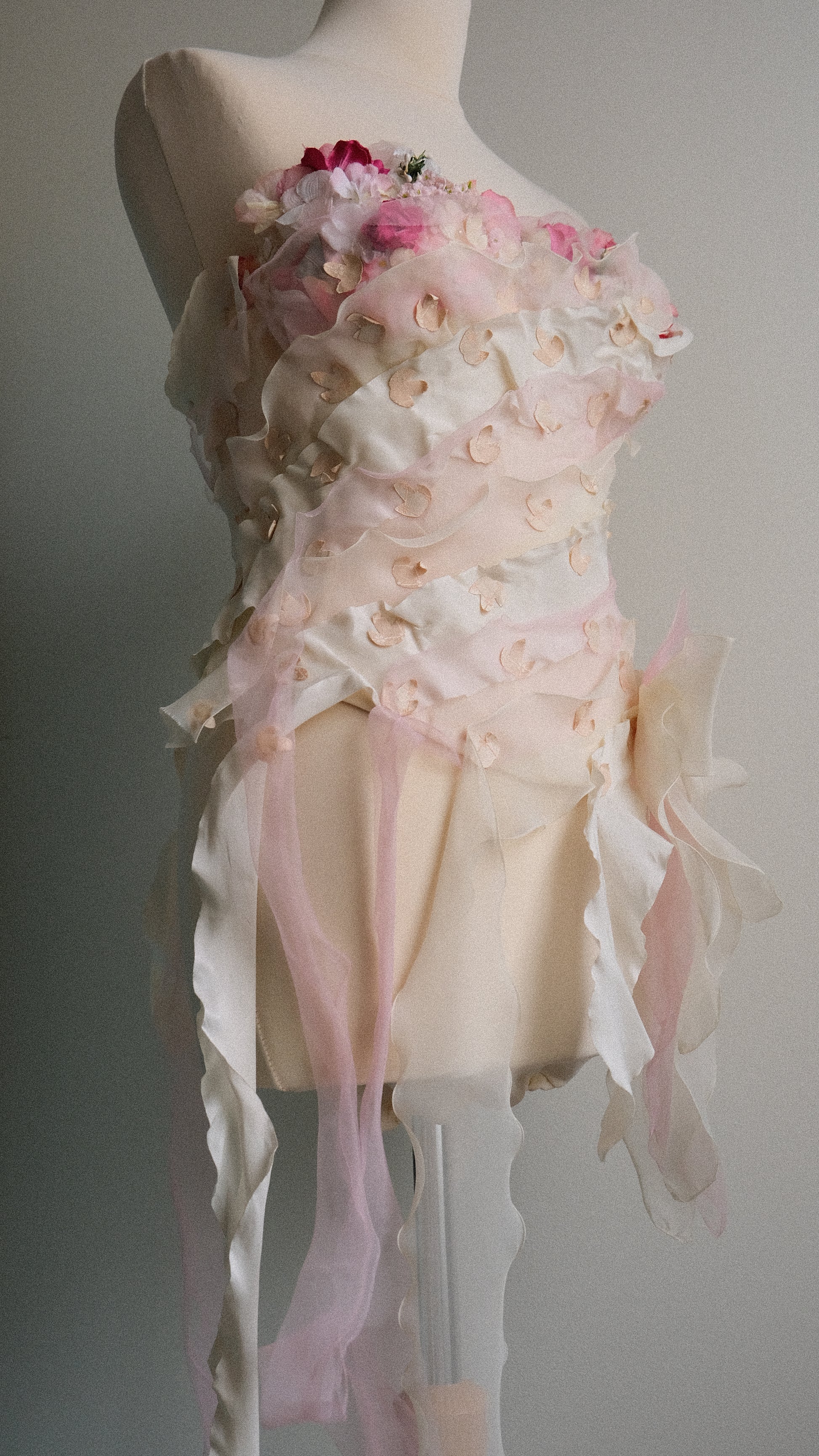 A garment cascading with layers of cream and rose, made for fairytale moment.