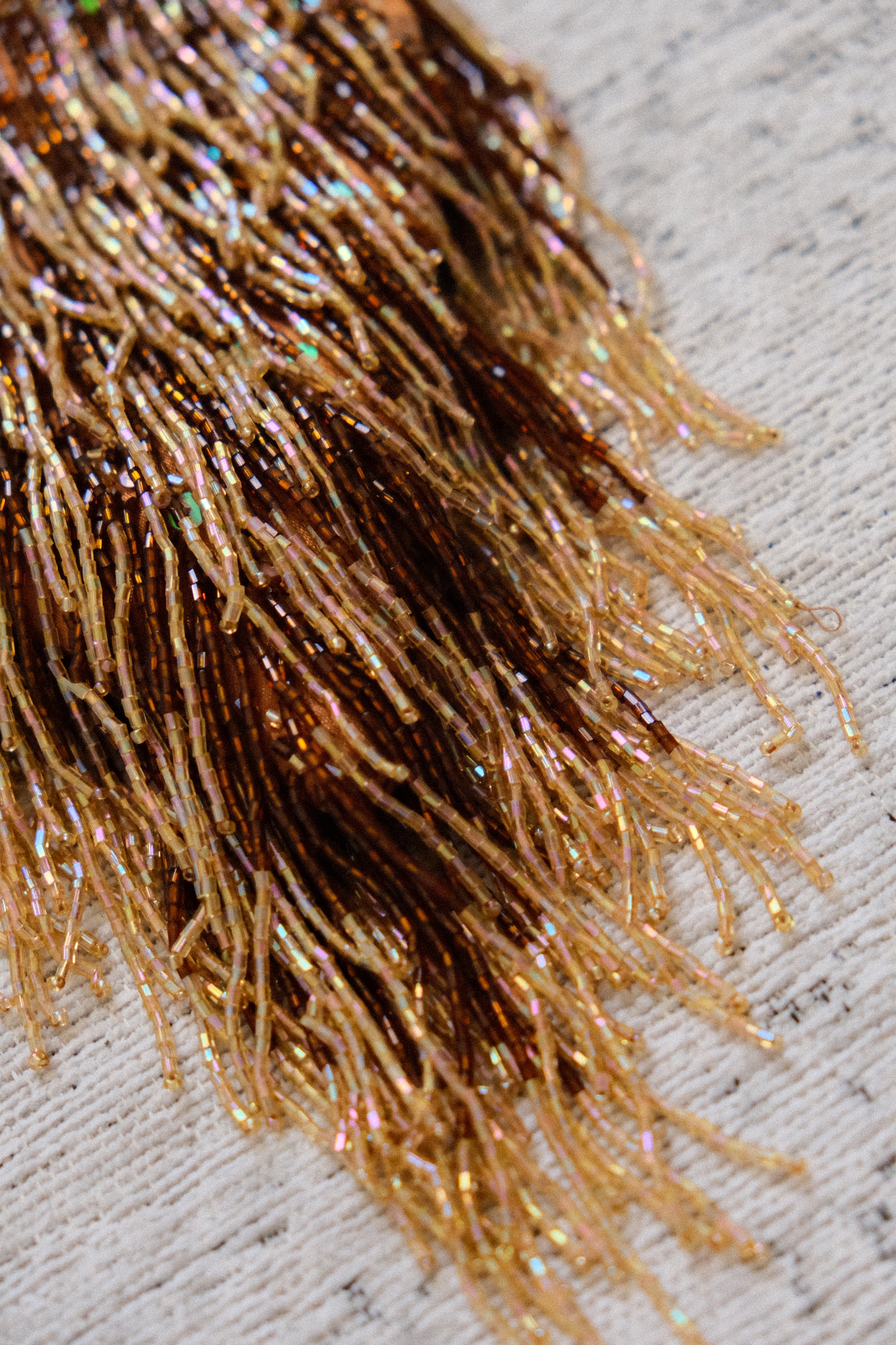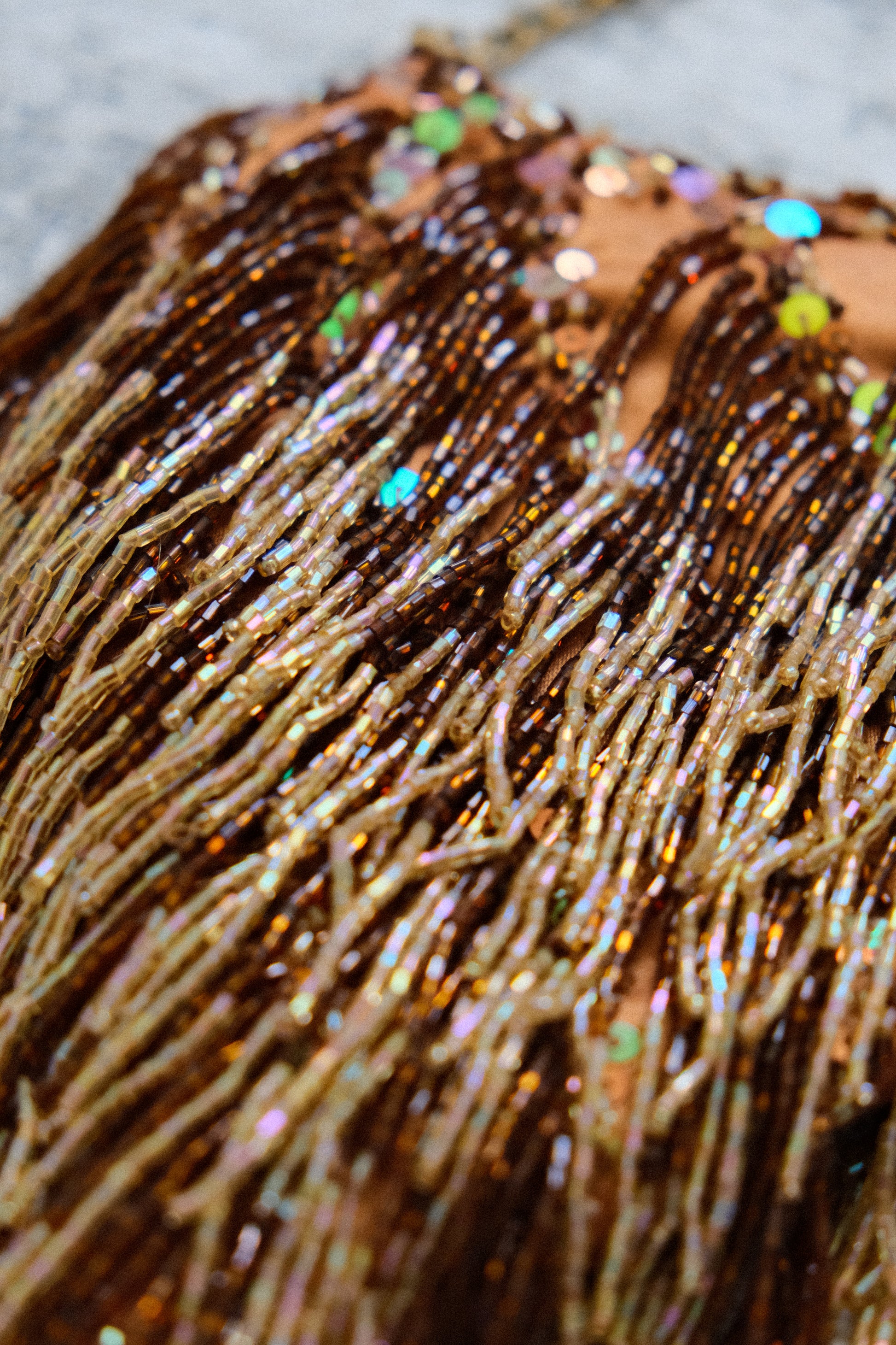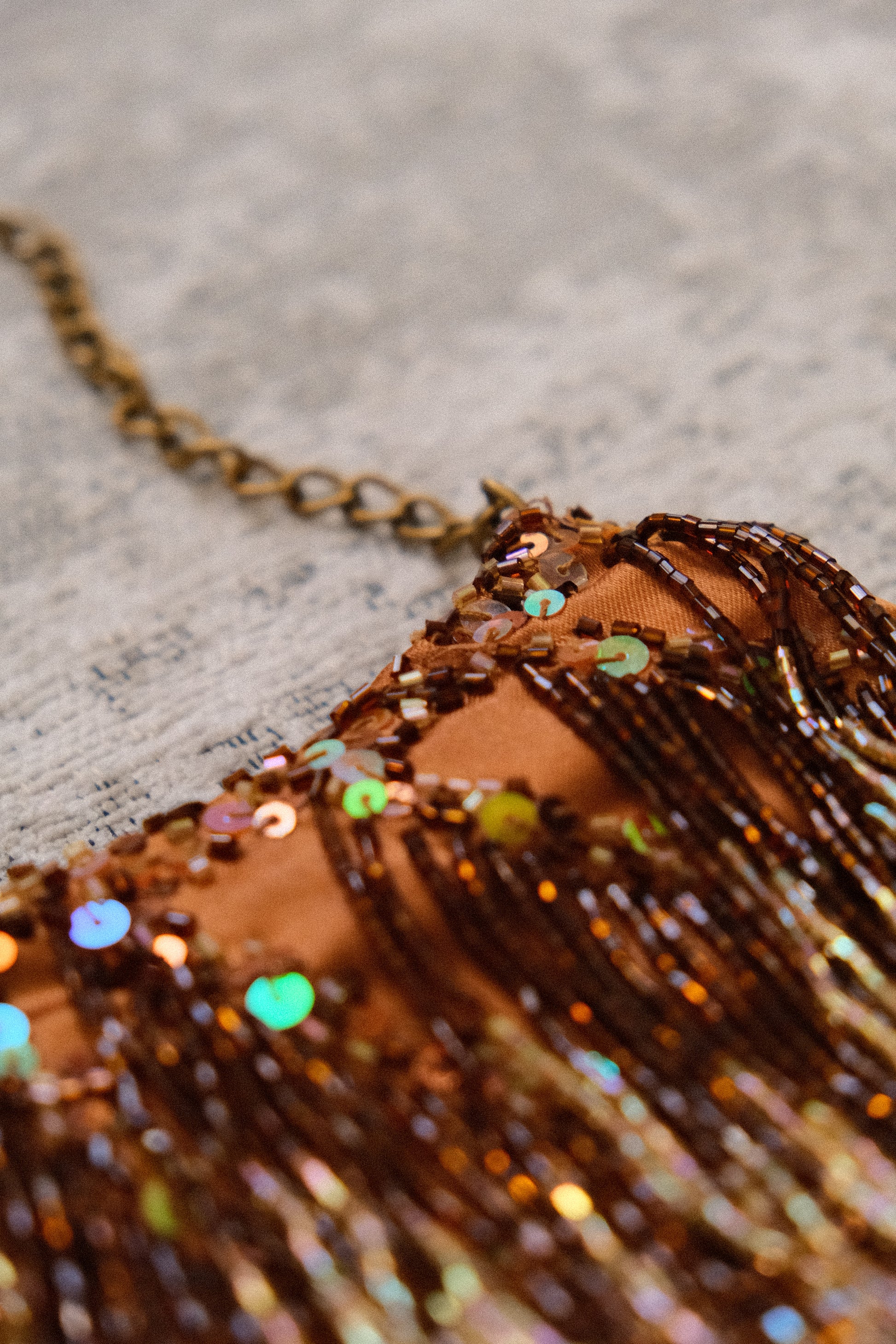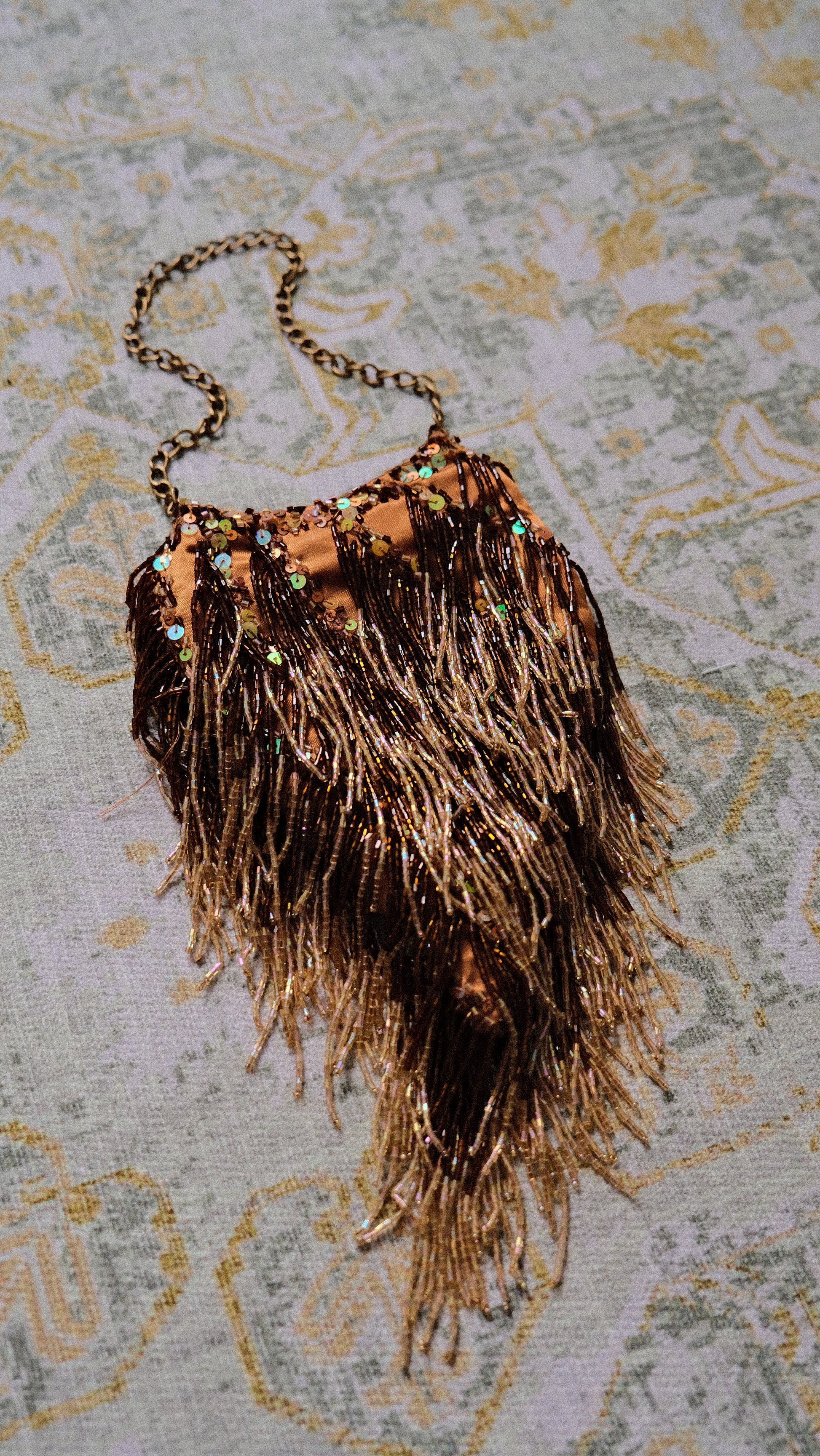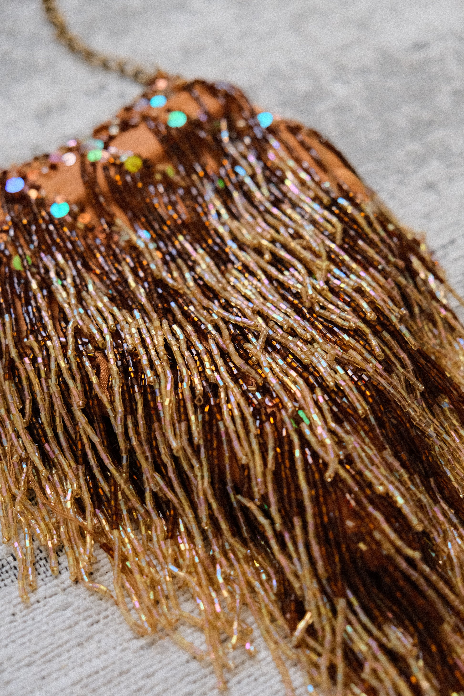 Every step sends sparks of bronze and golden shimmer. A dreamy fairytale clutch.