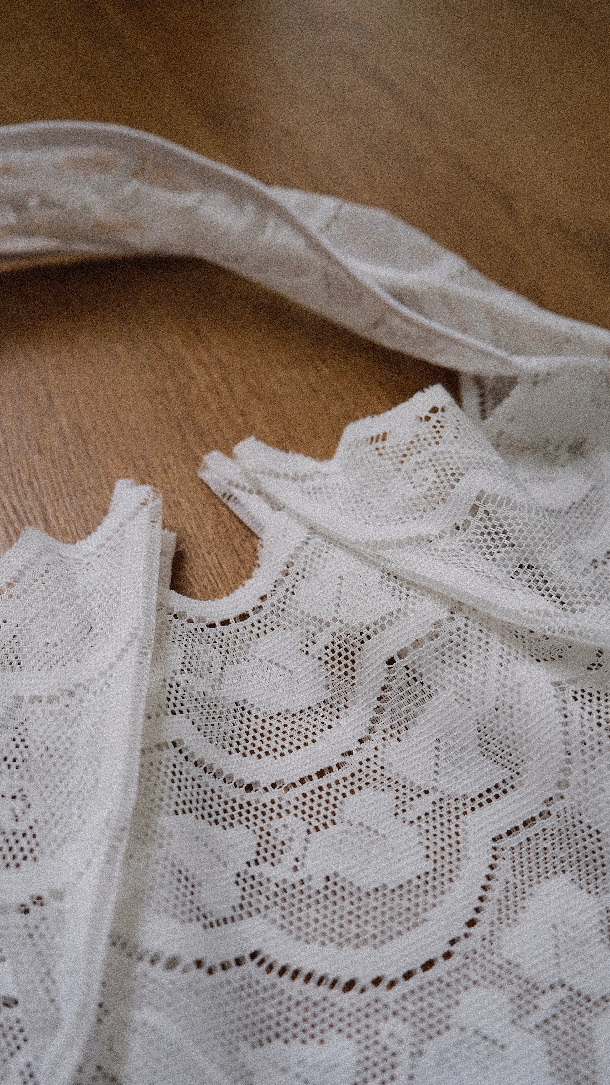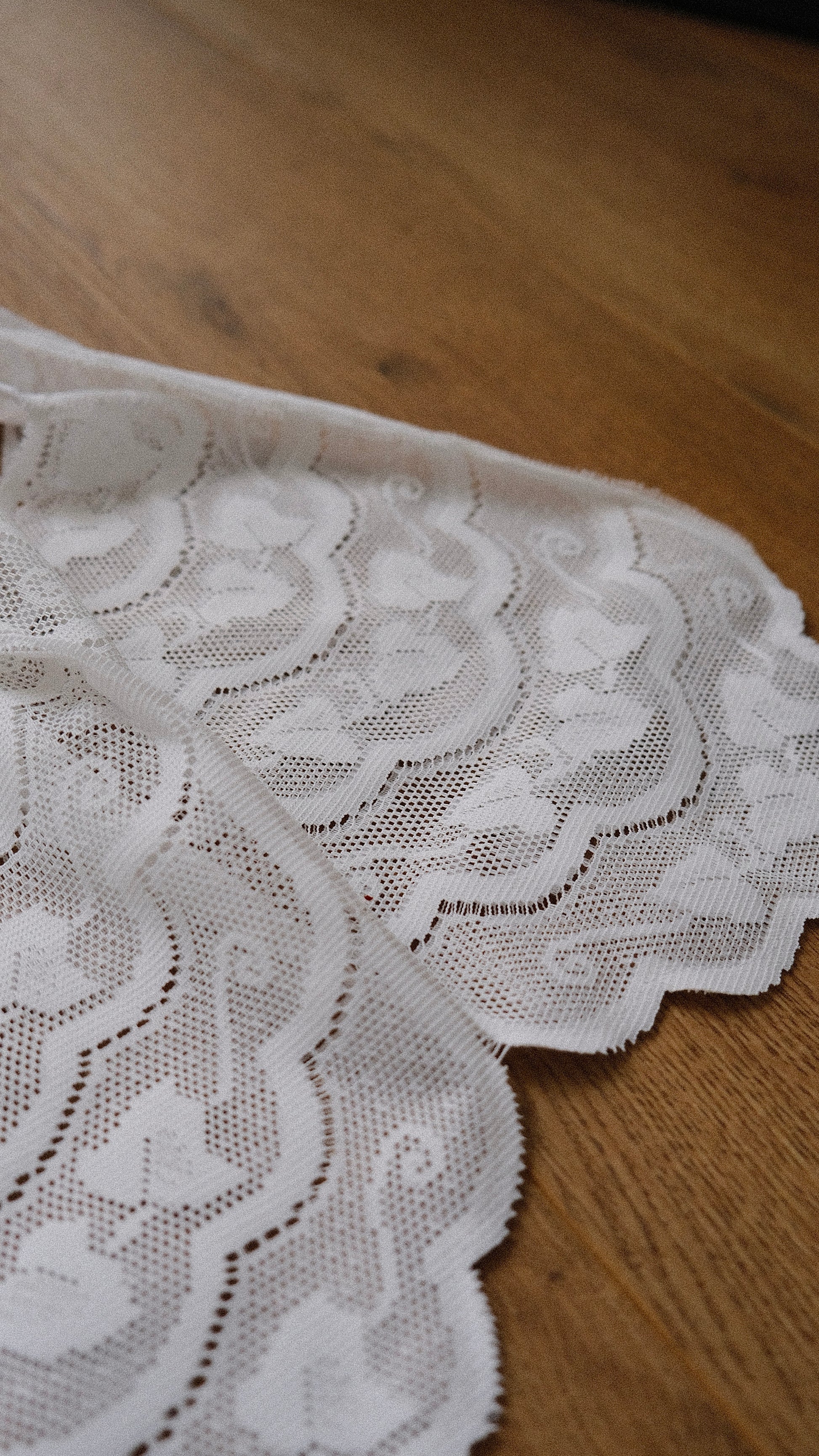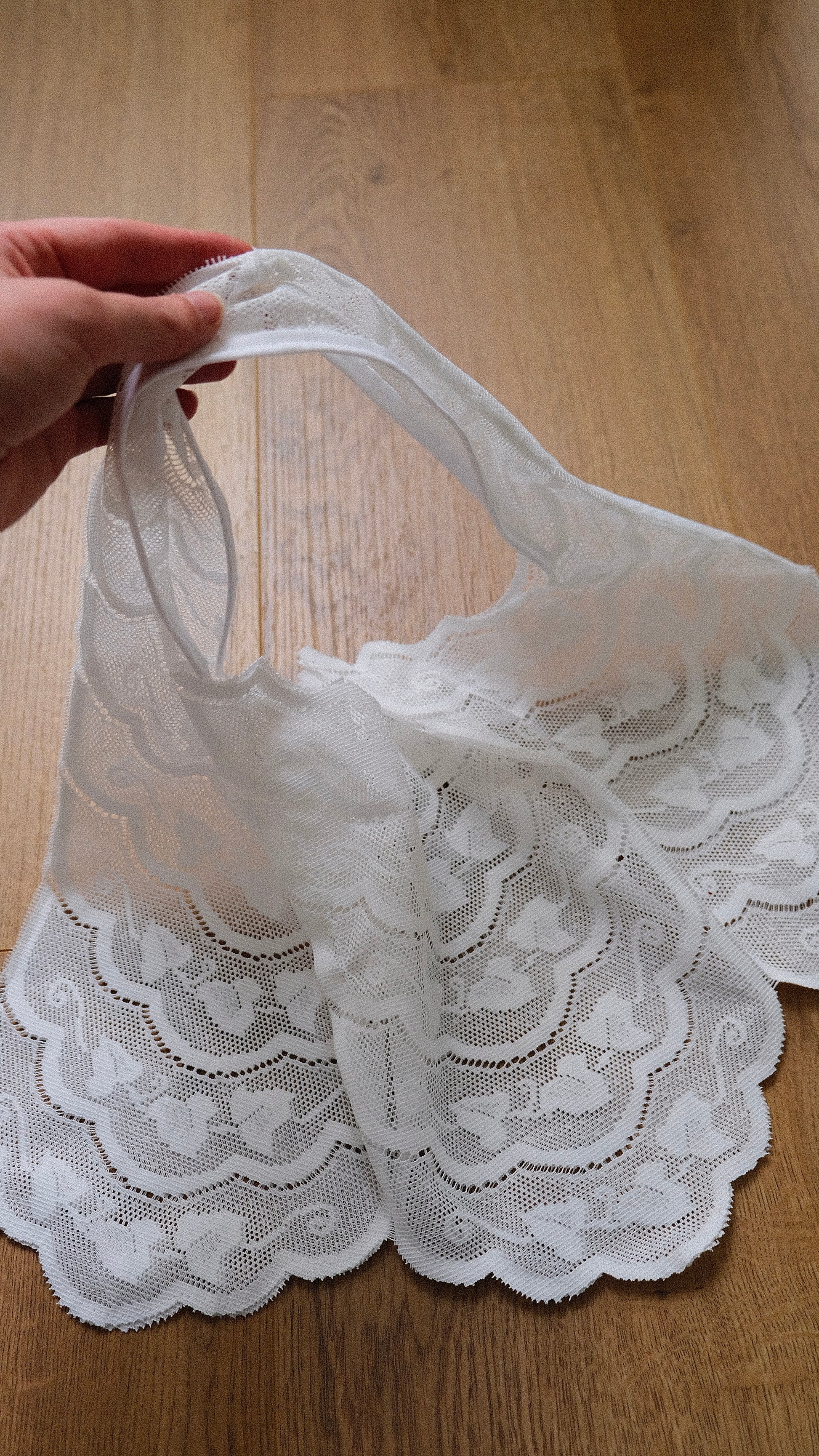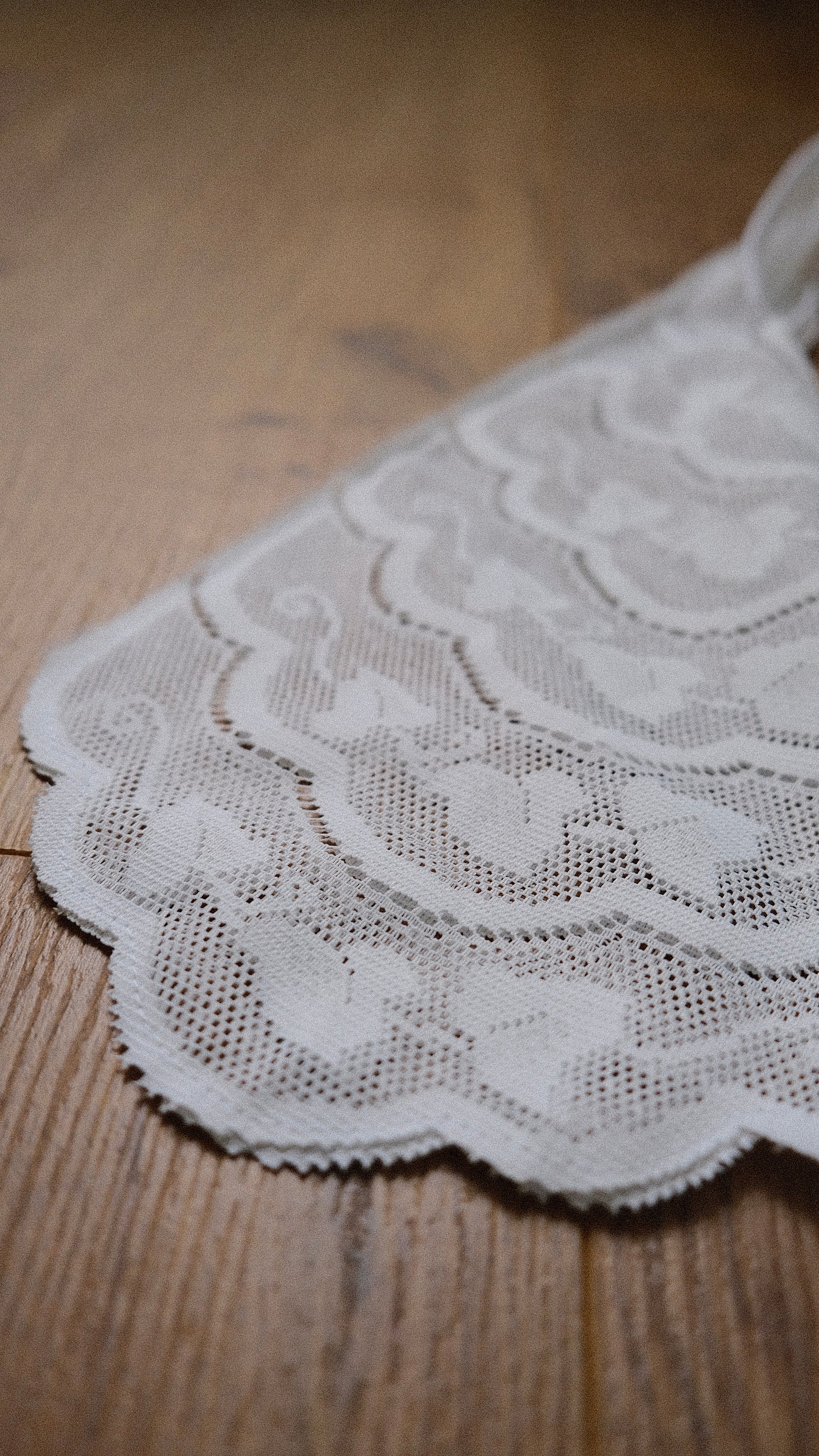 A lace bag with dreamy leaf pattern made from vintage lace.
