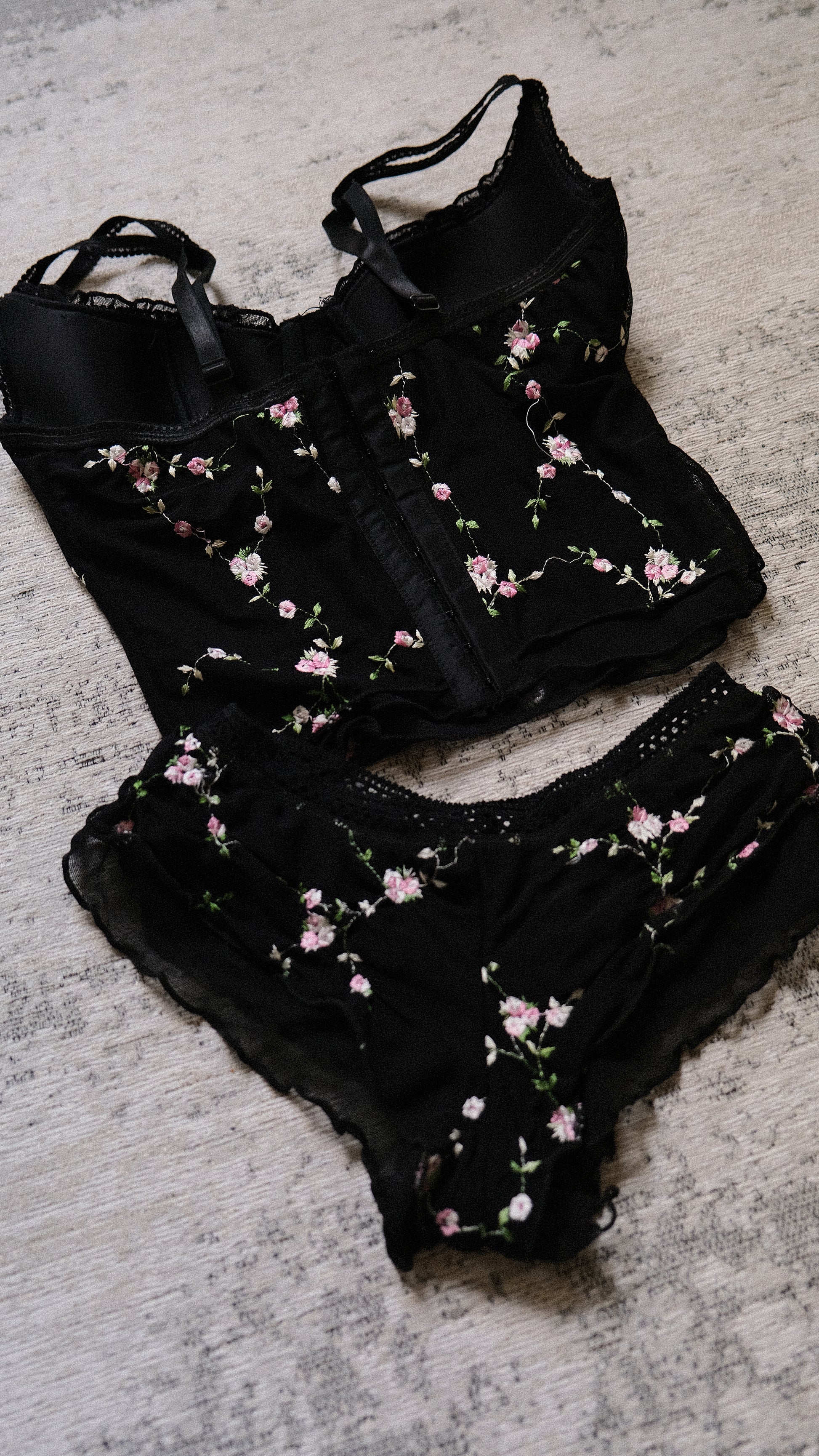 A magical corset with the most adorable floral embroidery.
