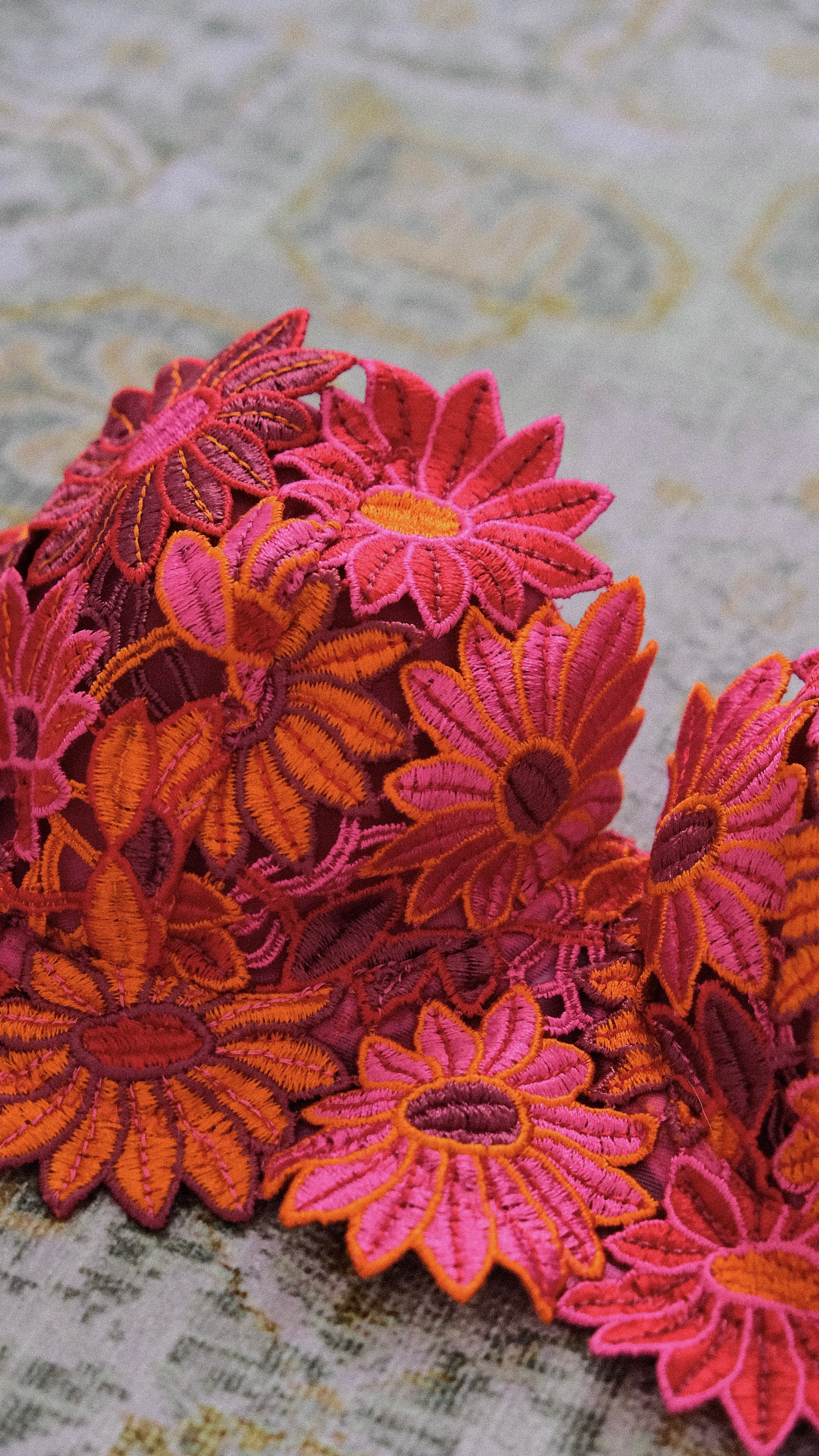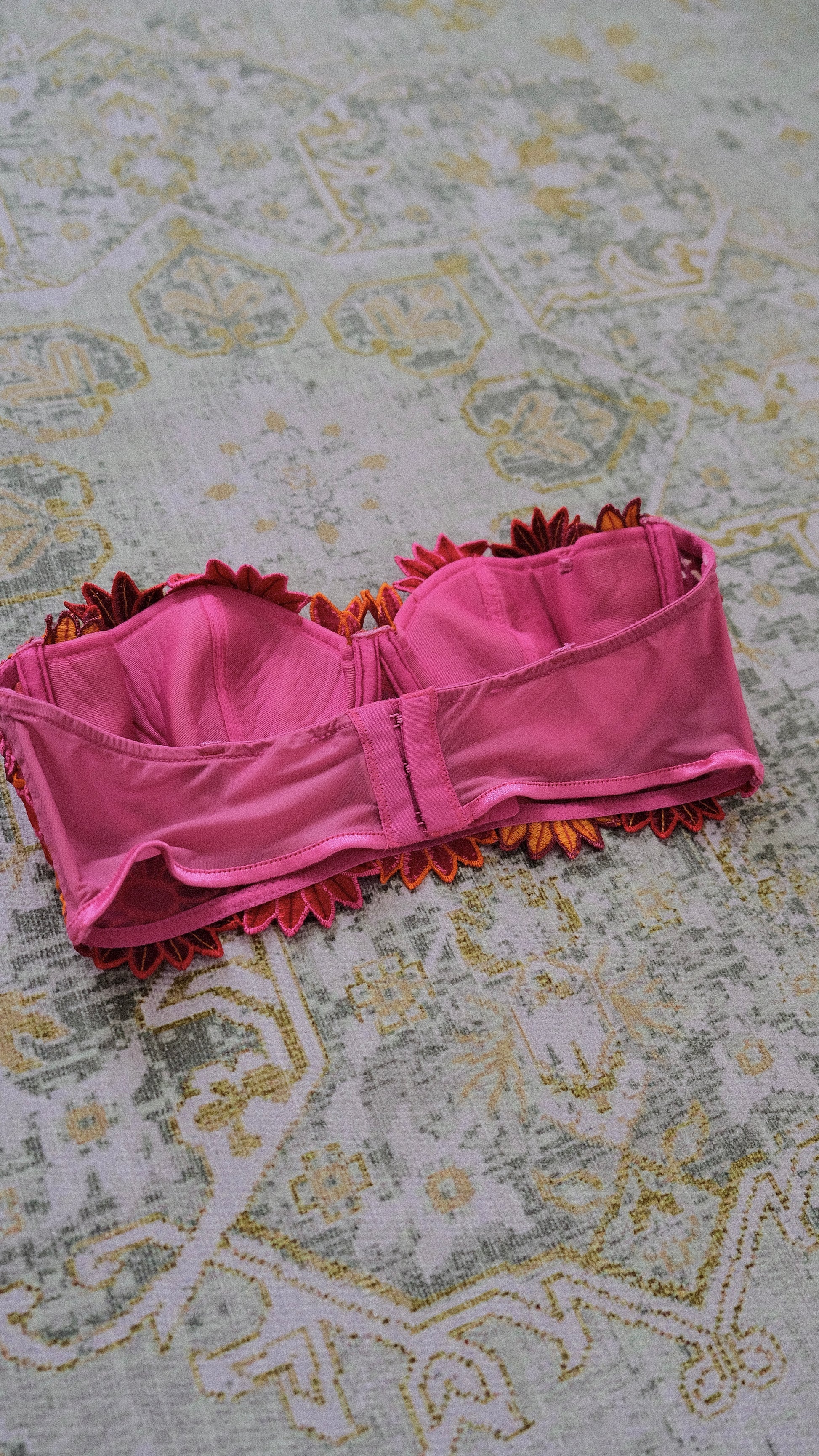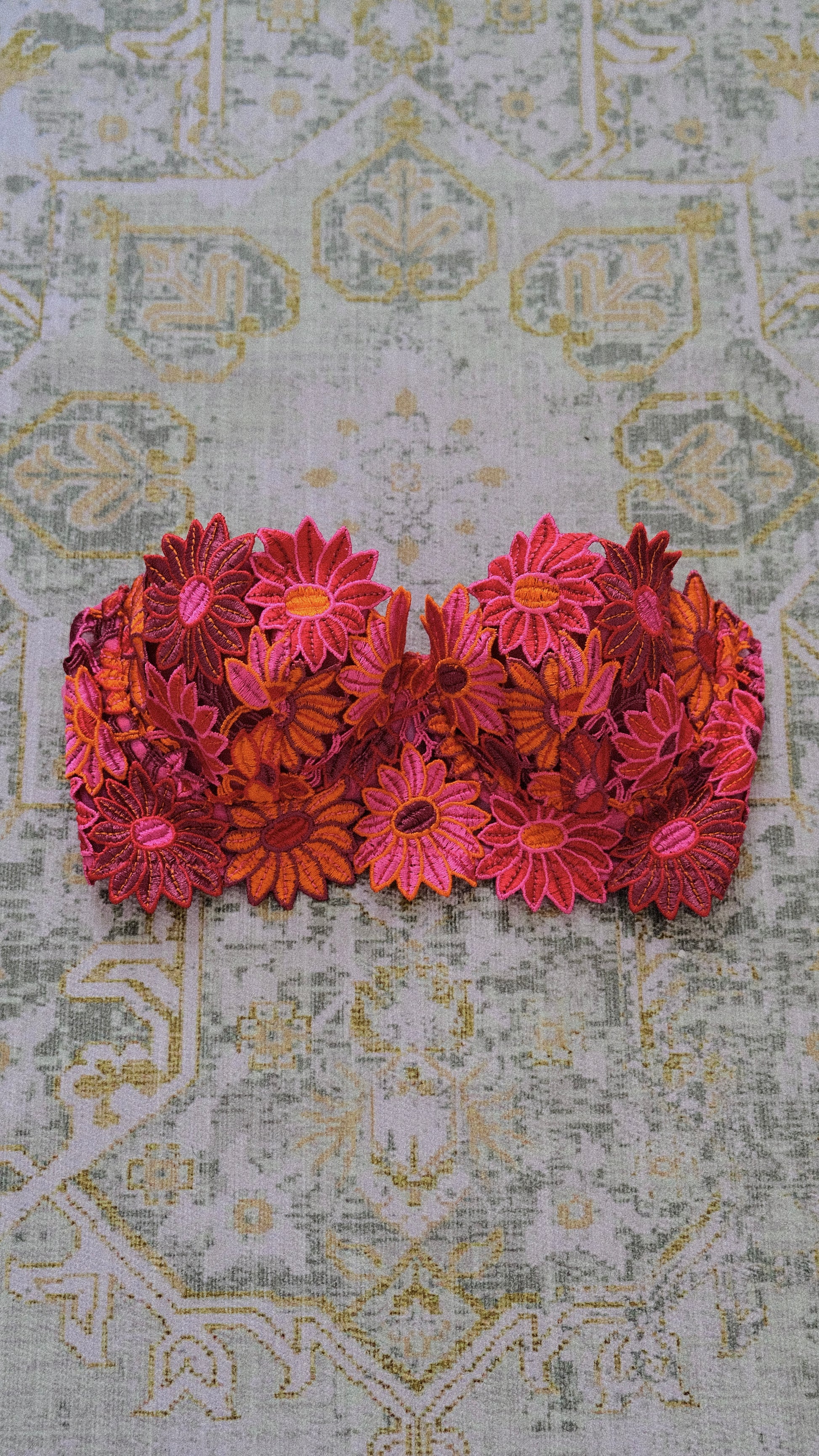 A vintage floral balconette in a warm color palette from a discontinued French brand.