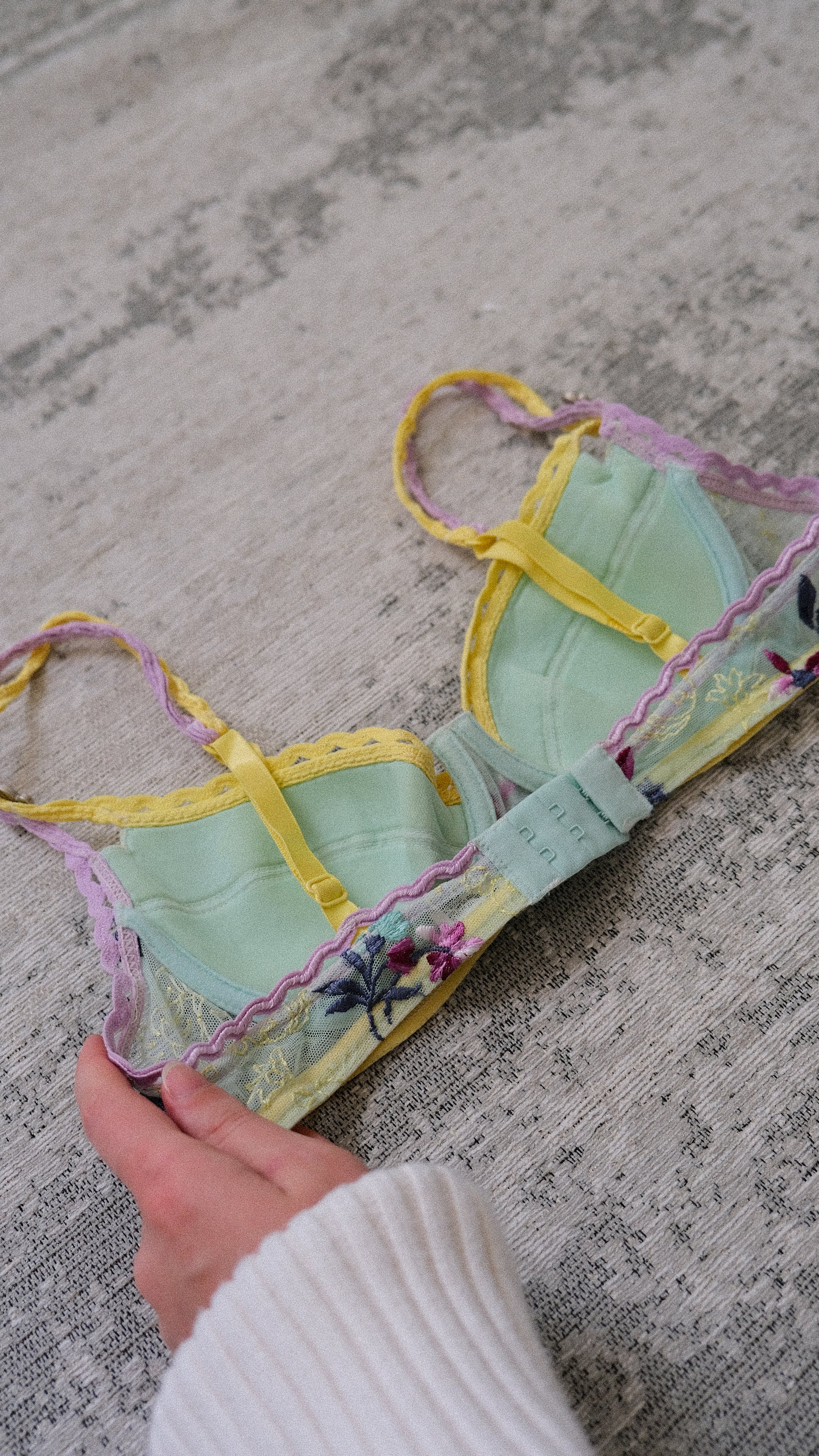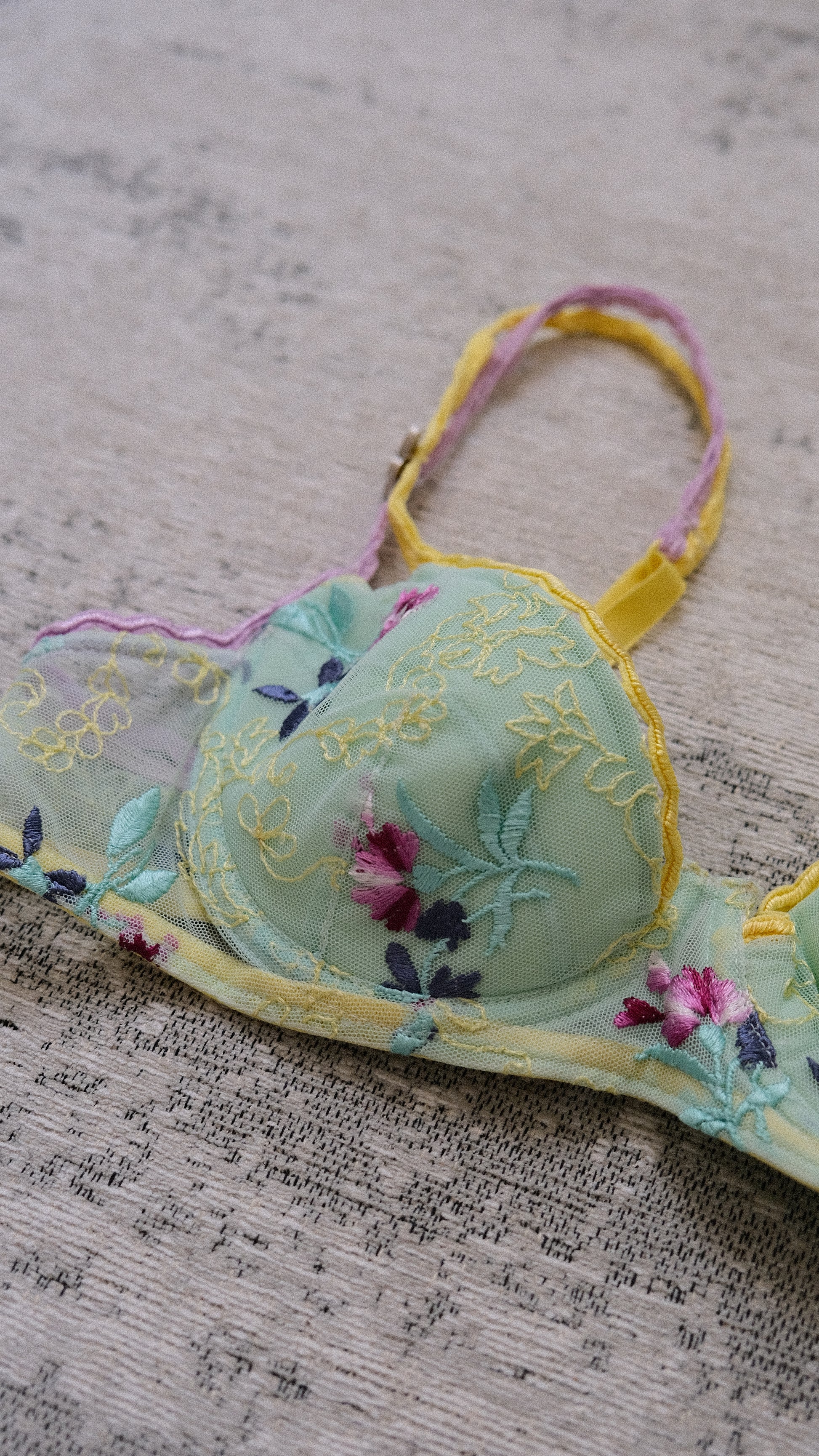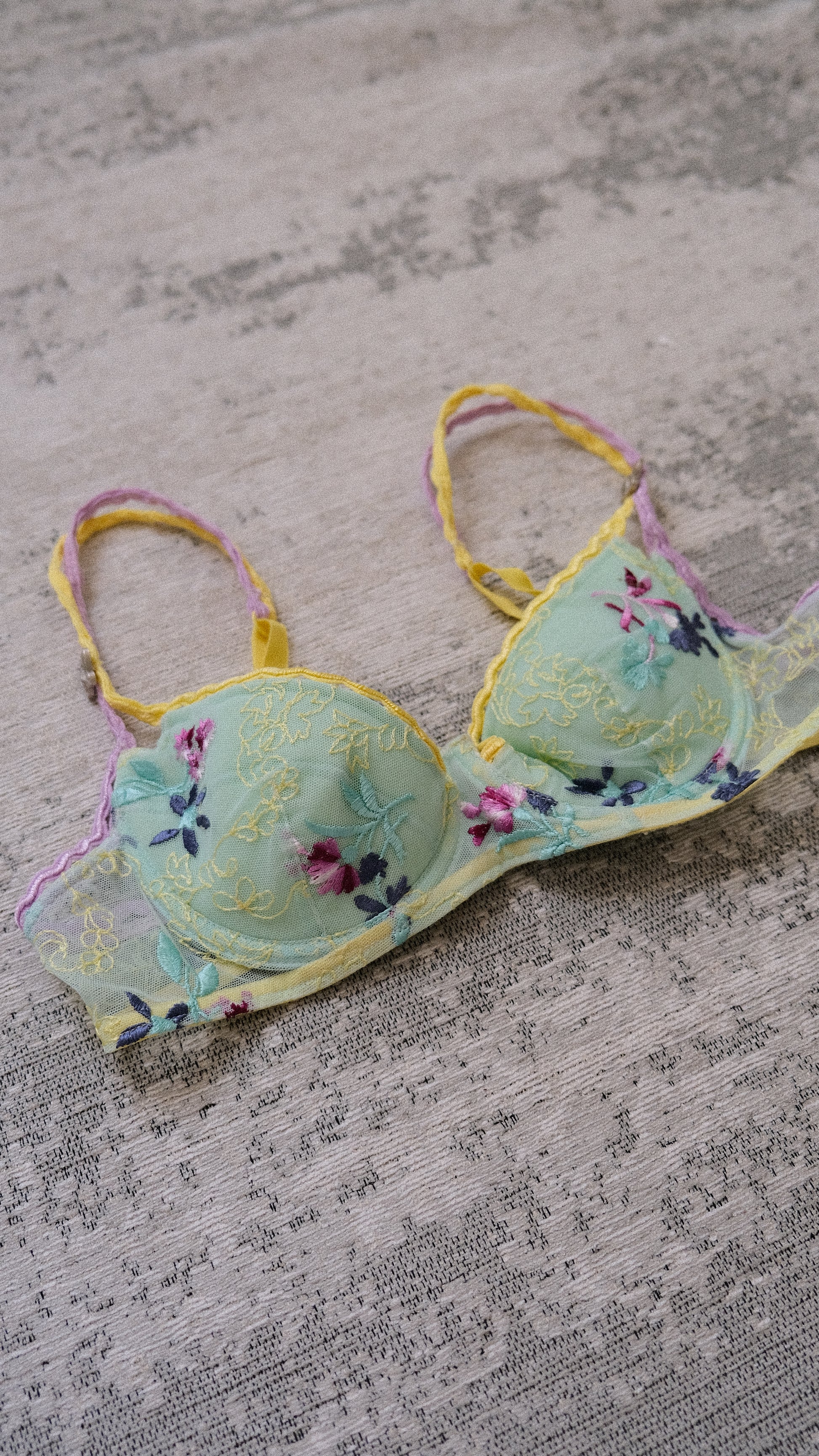 A rare vintage French minty green floral bra from the discontinued brand Ravage.