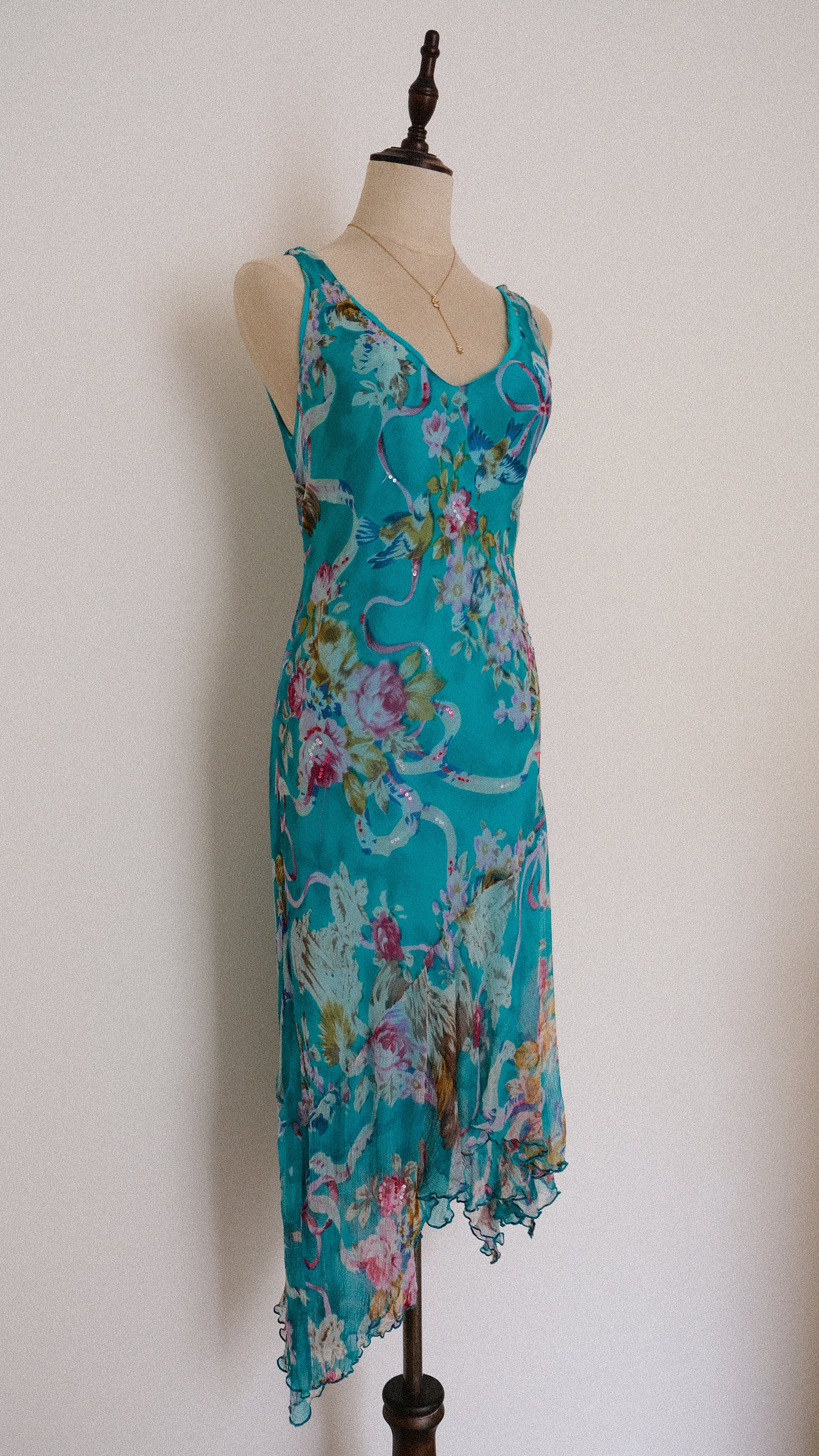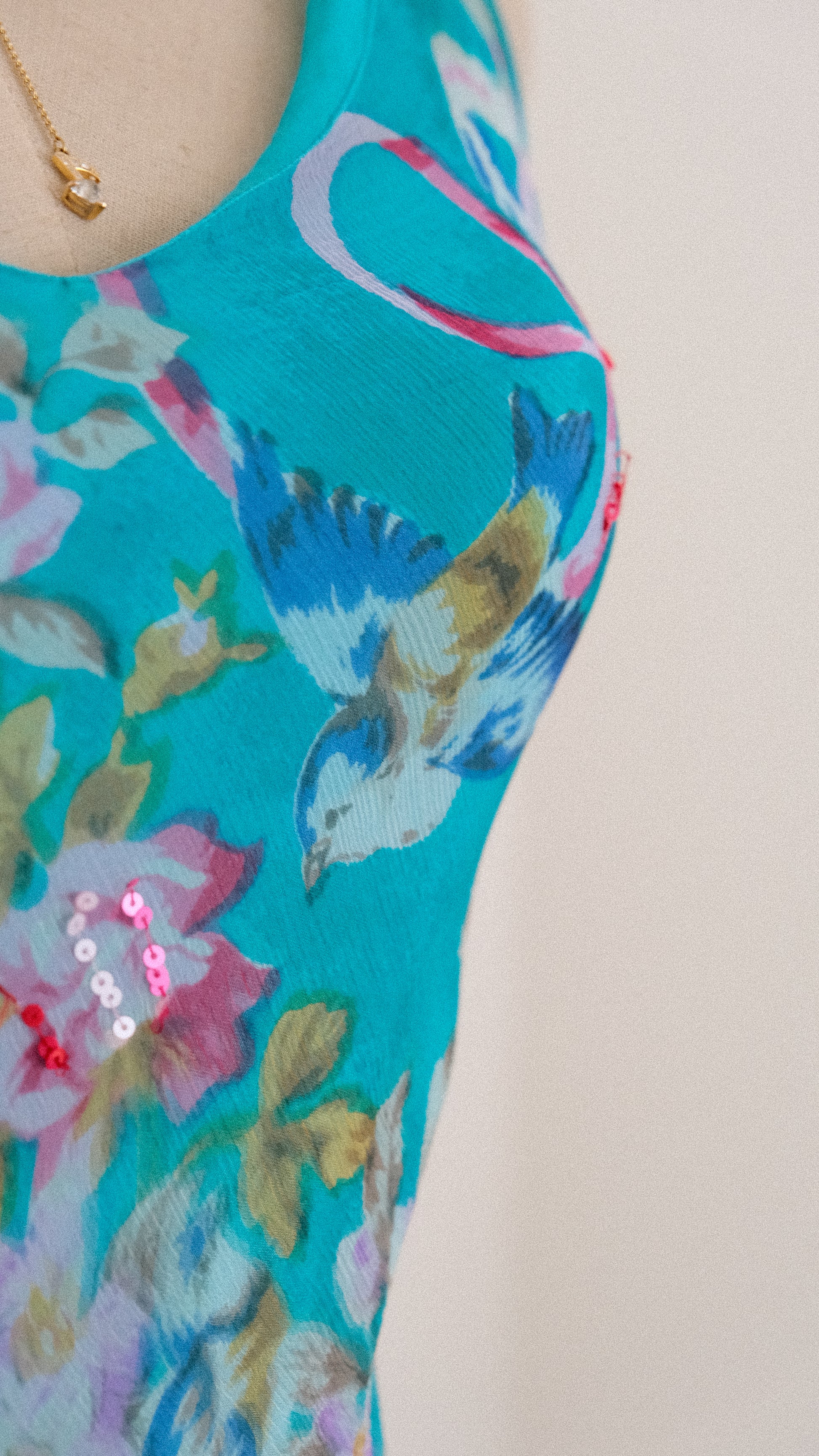 A vintage Rene Derhy summer dress with florals and the cutest birds integrated into the pattern.